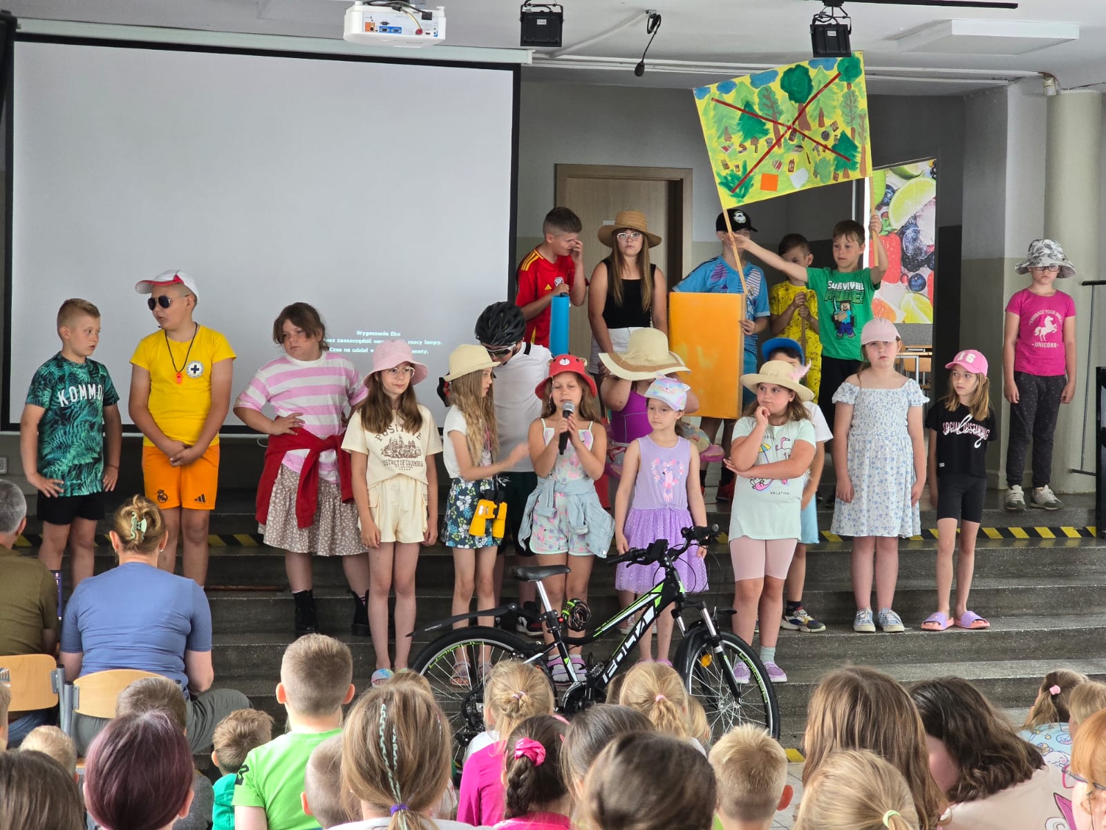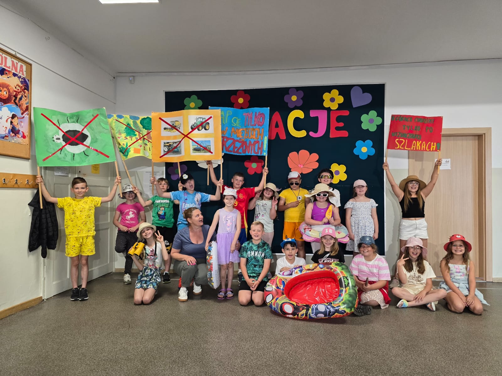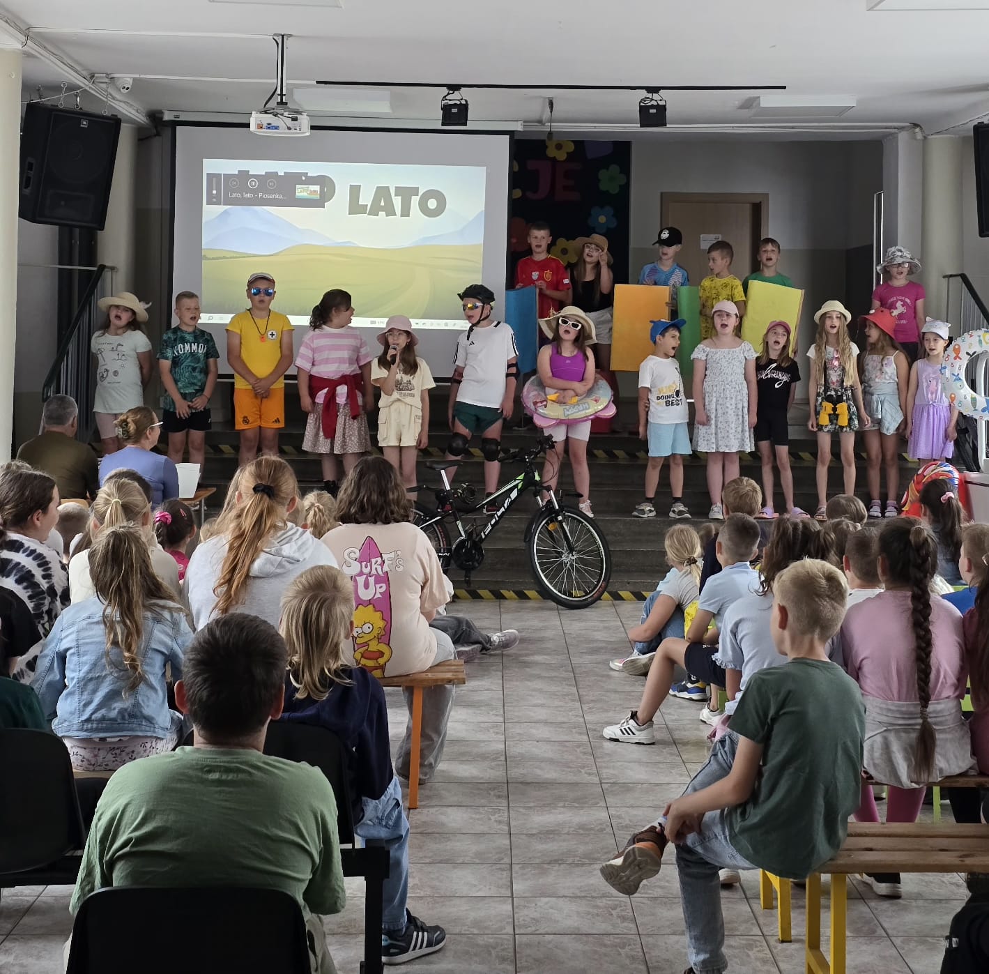 Dzisiaj 24 czerwca na holu szkoły odbyła się akcja skierowana do uczniów klas 0-III pt. ,,Bezpieczne Wakacje’’. Wydarzenie to przygotowała klasa II a pod opieką p. Joanny Szczerbińskiej. Celem spotkania było przypomnienie dzieciom zasad bezpiecznego zachowania w czasie letniego wypoczynku. Klasa II a występując z letnimi rekwizytami na scenie wyśpiewała i przypomniała m.in.: Zasady bezpiecznego zachowana w górach, nad jeziorem, czy w lesie. Nie zabrakło plansz informacyjnych i ostrzegawczych, które zawierały ważne zasady,, w górach chodzimy tylko po szlakach’’ , dzieci radziły też np. unikać silnego słońca w godzinach szczytu, używać kremów z filtrem UV, nosić nakrycie głowy i okulary itp. Nie zabrakło letnich rekwizytów – roweru, pontonu, koła wodnego etc. To było niezwykle pouczające spotkanie, które z pewnością pomoże naszym uczniom spędzić wakacje bezpiecznie i świadomie.