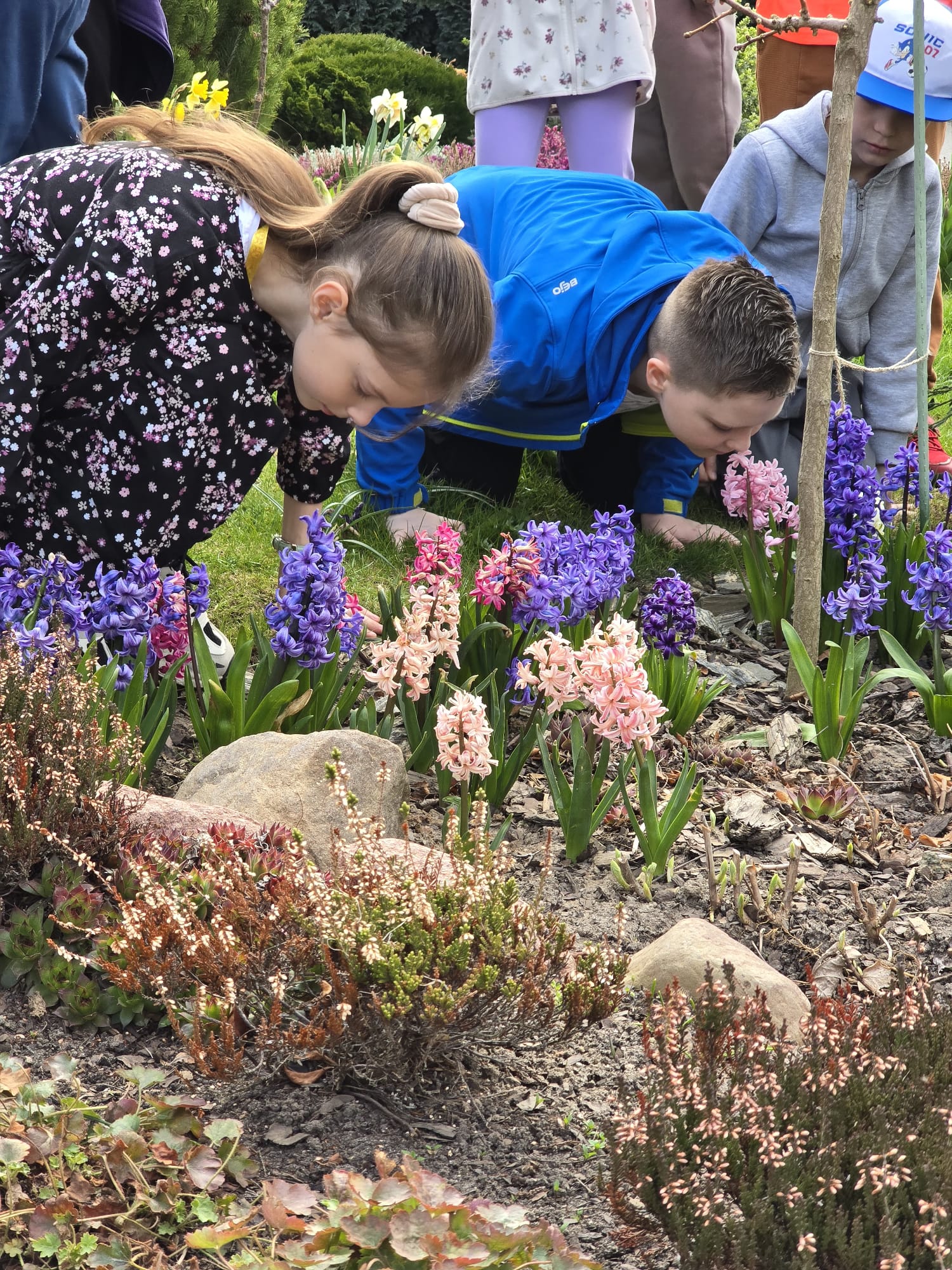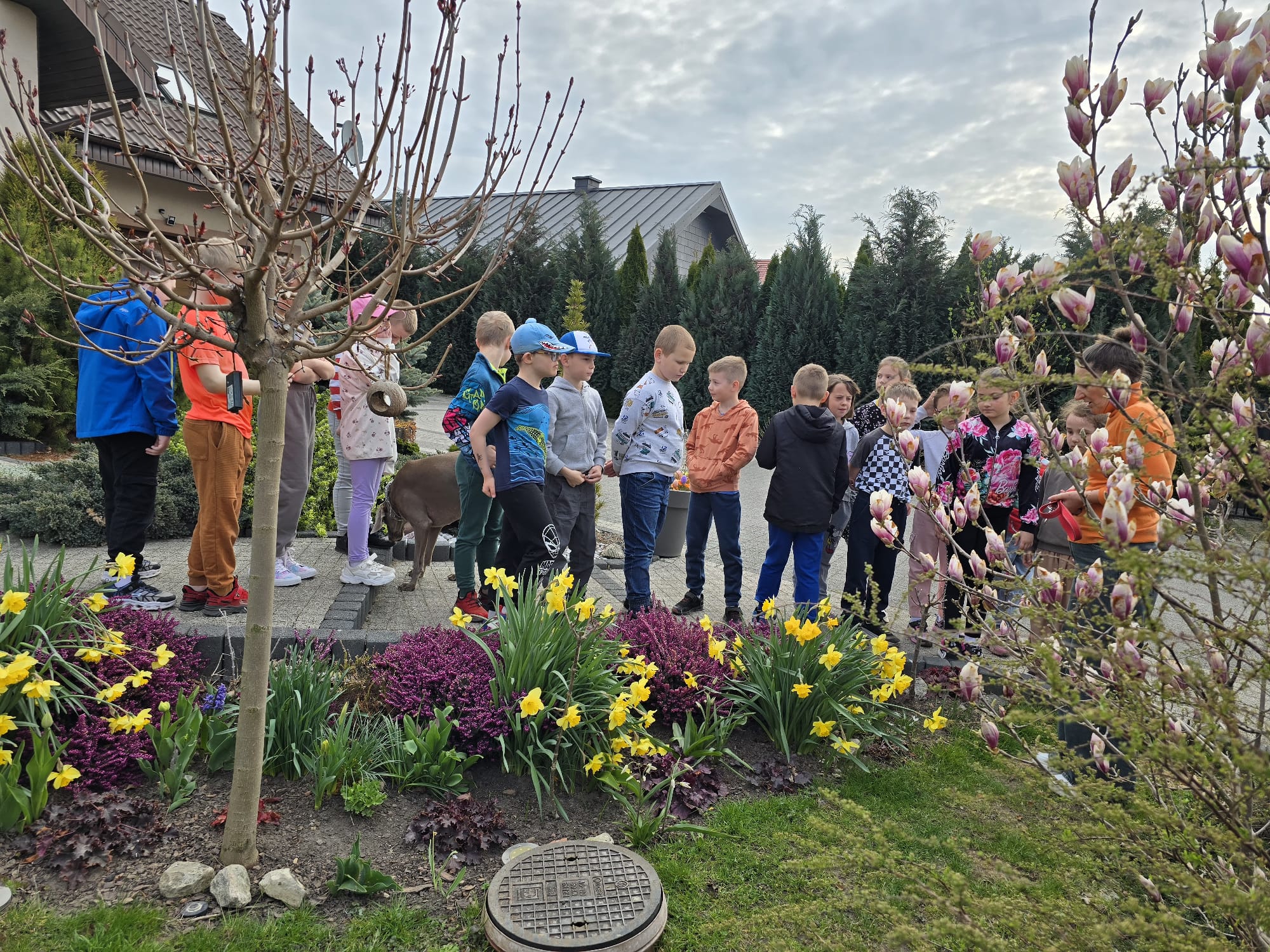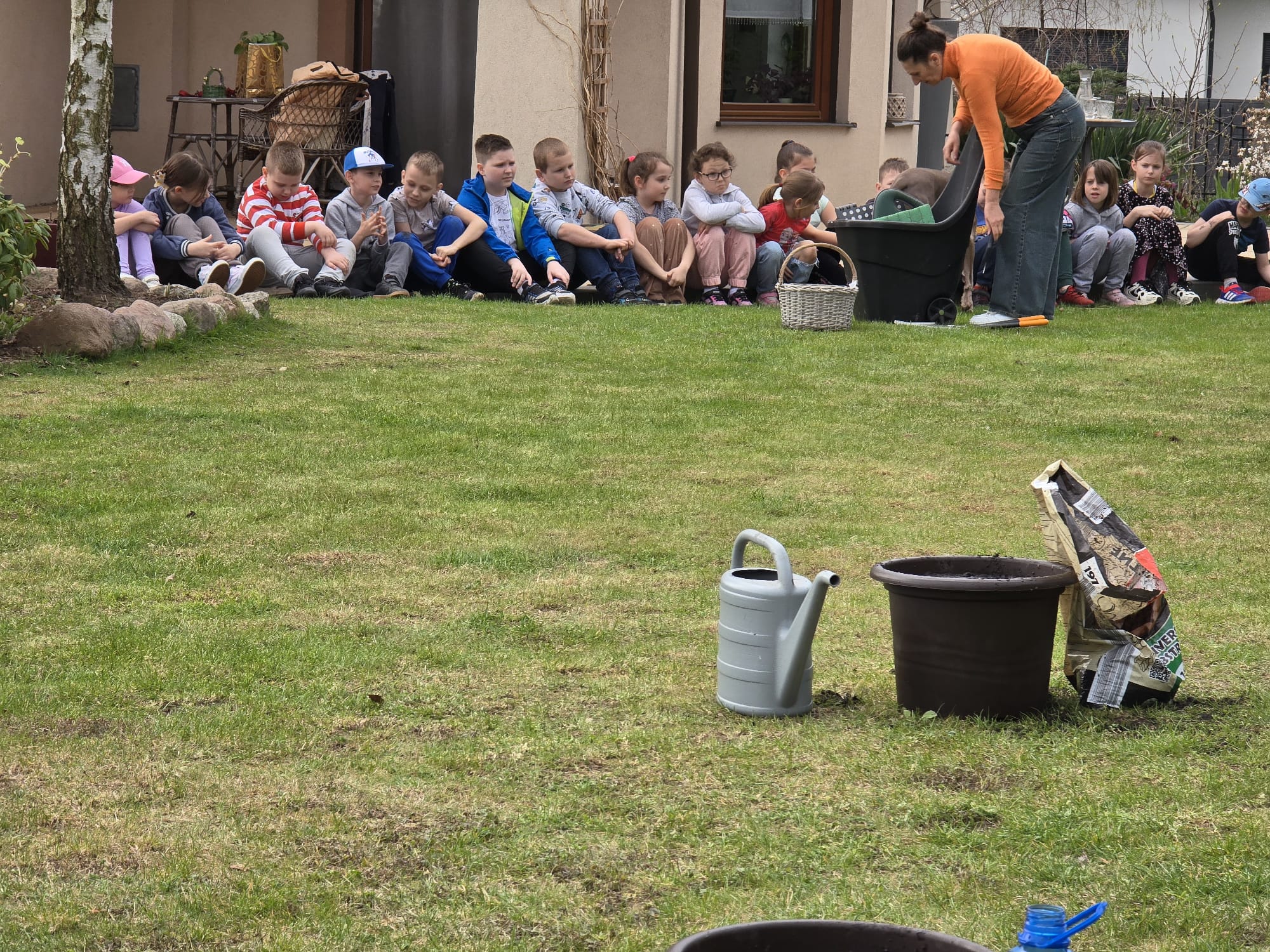 W poniedziałkowe przedpołudnie dzieci z kl. 2 a wybrały się z wychowawczynią p. Magdaleną Pawłowską do wiosennego ogrodu p. Marty Sikory. Uczniowie poznali nazwy wielu roślin kwitnących wiosną, dowiedziały się jak o nie dbać i jakich narzędzi ogrodniczych używać. Było, też szukanie wielkanocnego koszyczka oraz zadanie specjalne - sianie roślinek do doniczek. Dziękujemy p. Marcie za wspaniałą gościnę.