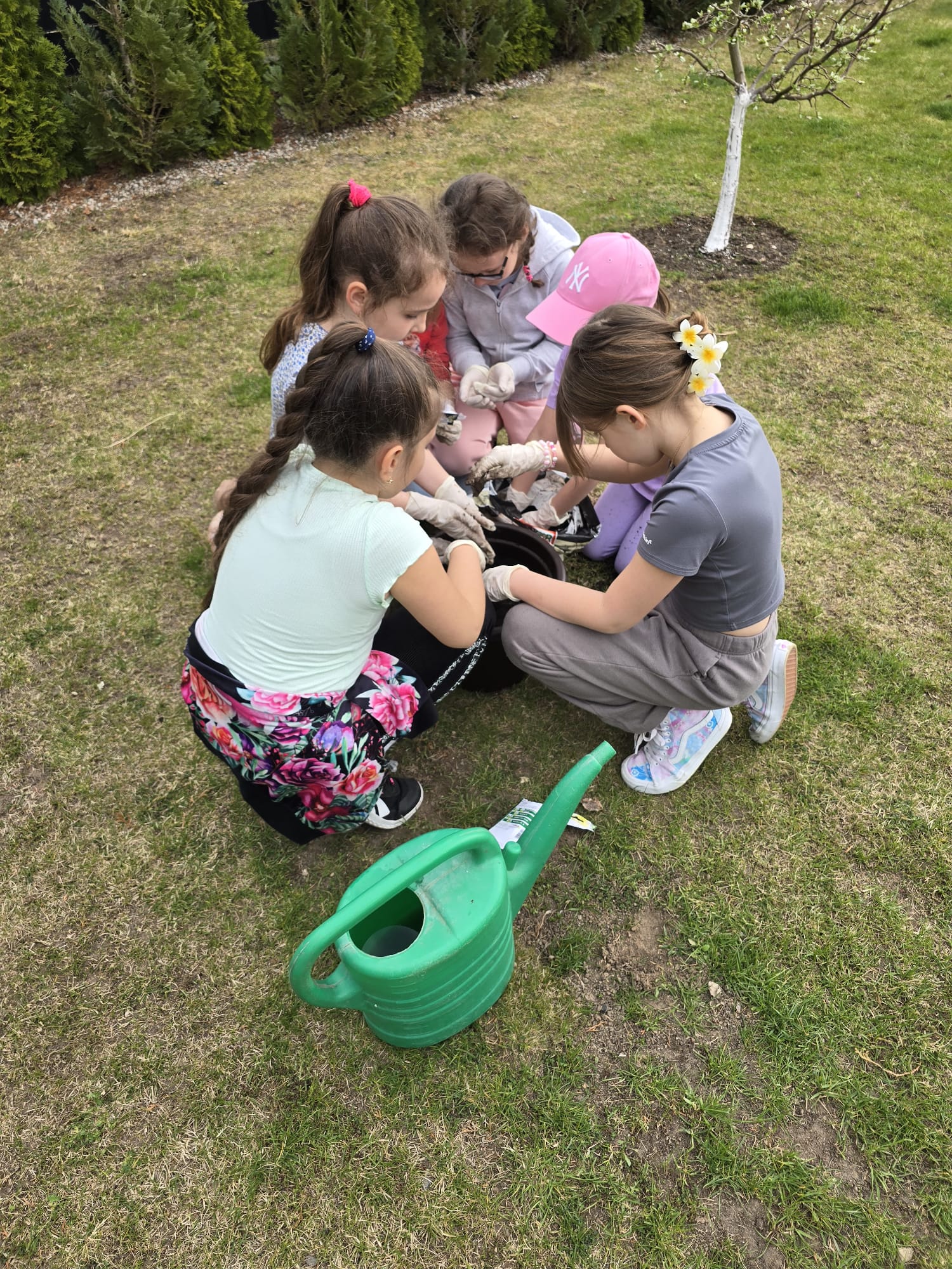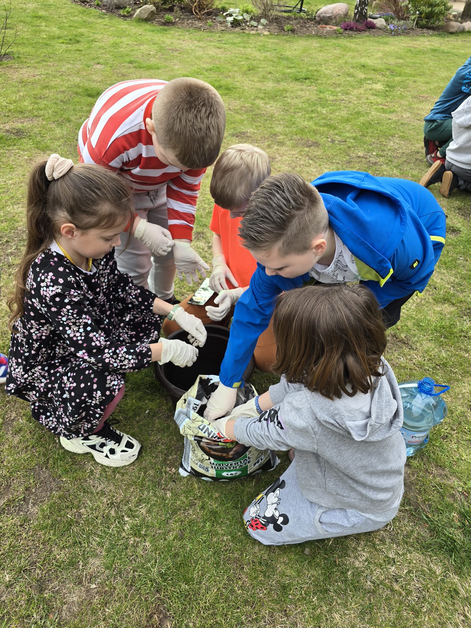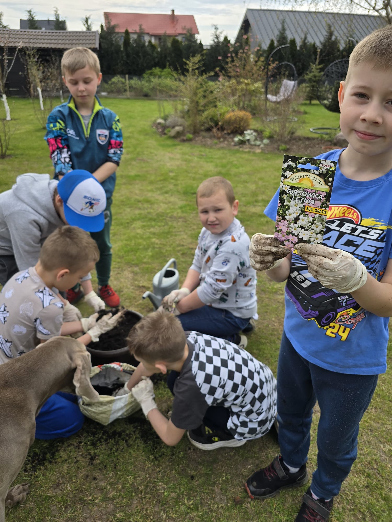 W poniedziałkowe przedpołudnie dzieci z kl. 2 a wybrały się z wychowawczynią p. Magdaleną Pawłowską do wiosennego ogrodu p. Marty Sikory. Uczniowie poznali nazwy wielu roślin kwitnących wiosną, dowiedziały się jak o nie dbać i jakich narzędzi ogrodniczych używać. Było, też szukanie wielkanocnego koszyczka oraz zadanie specjalne - sianie roślinek do doniczek. Dziękujemy p. Marcie za wspaniałą gościnę.
