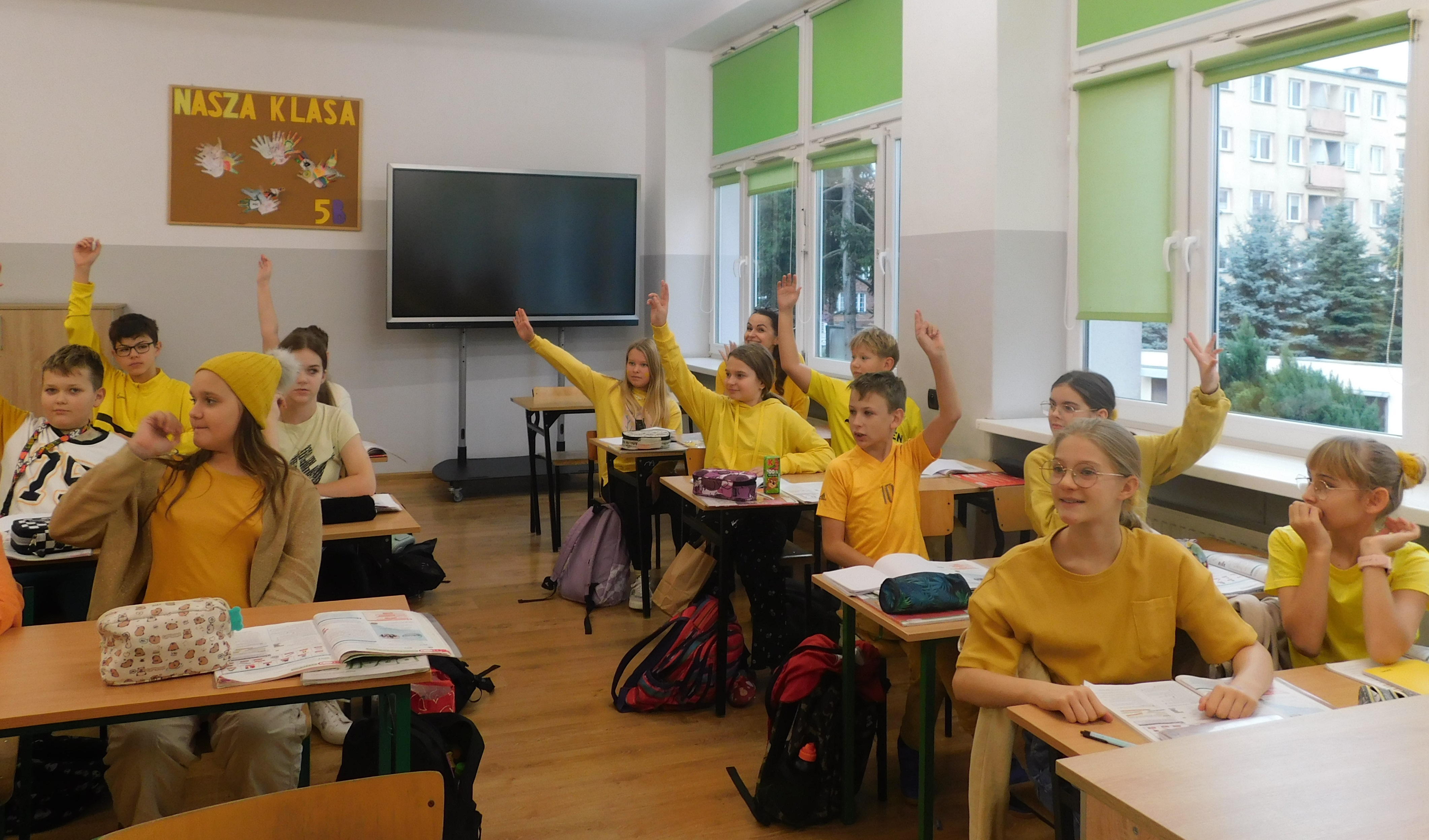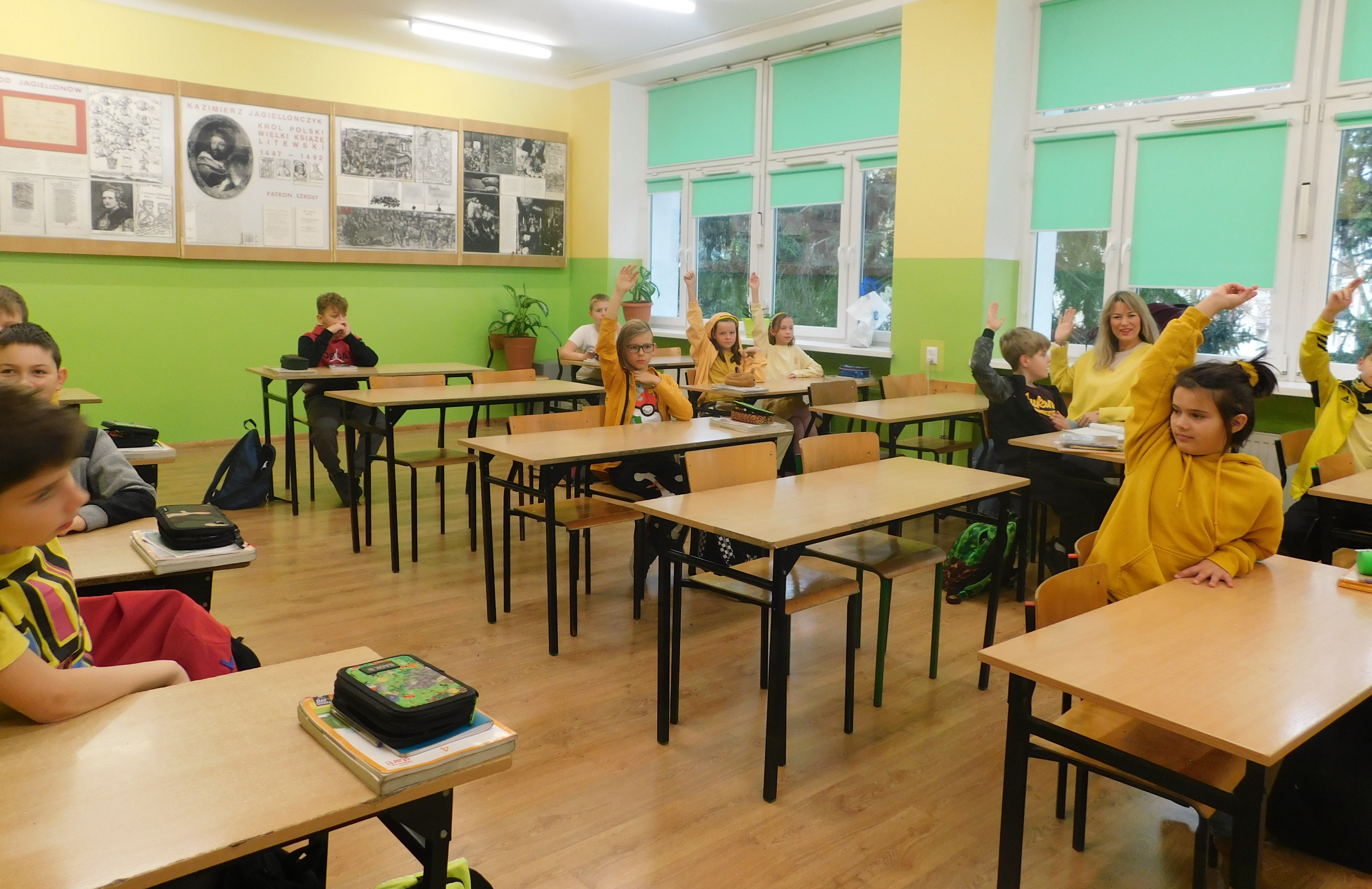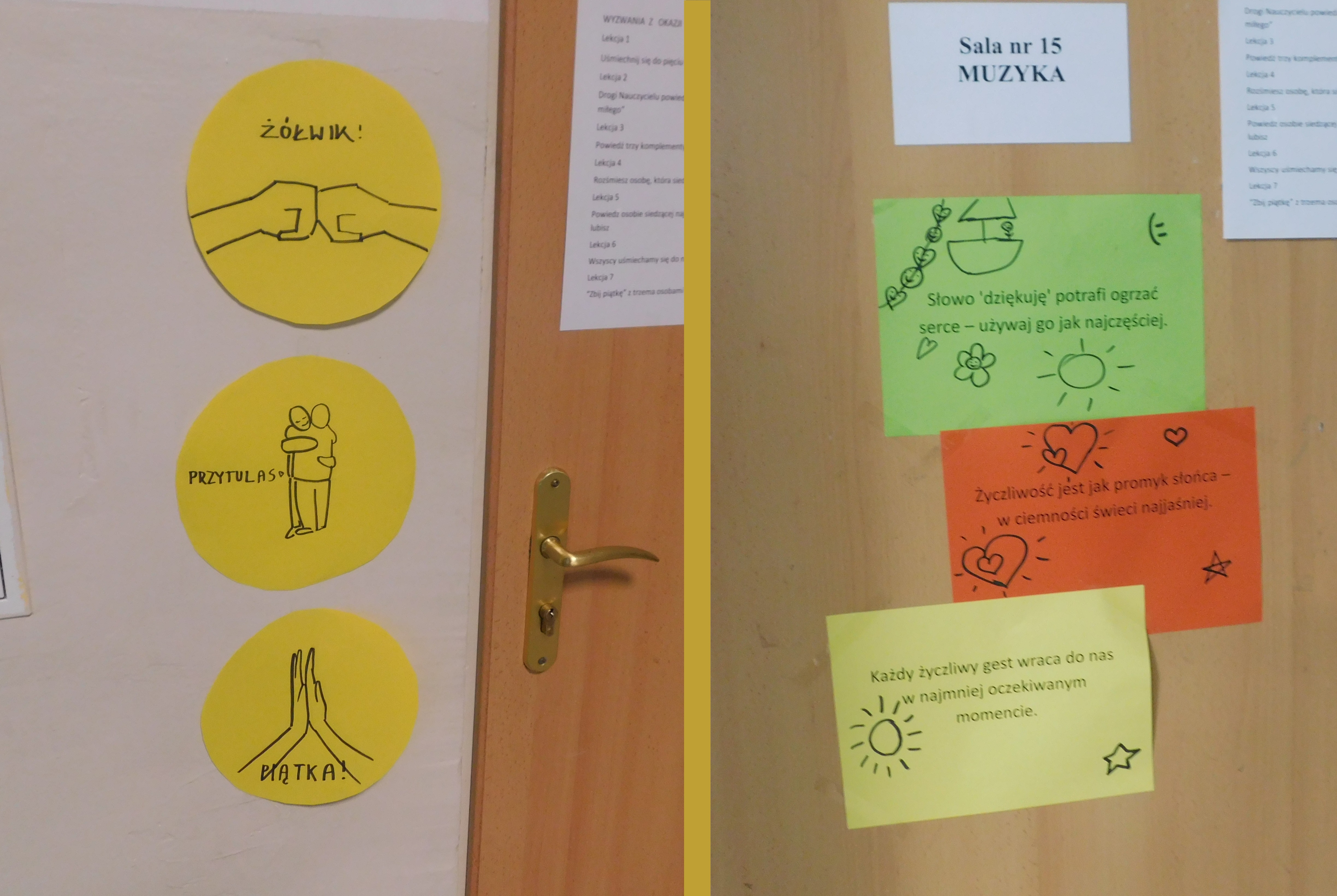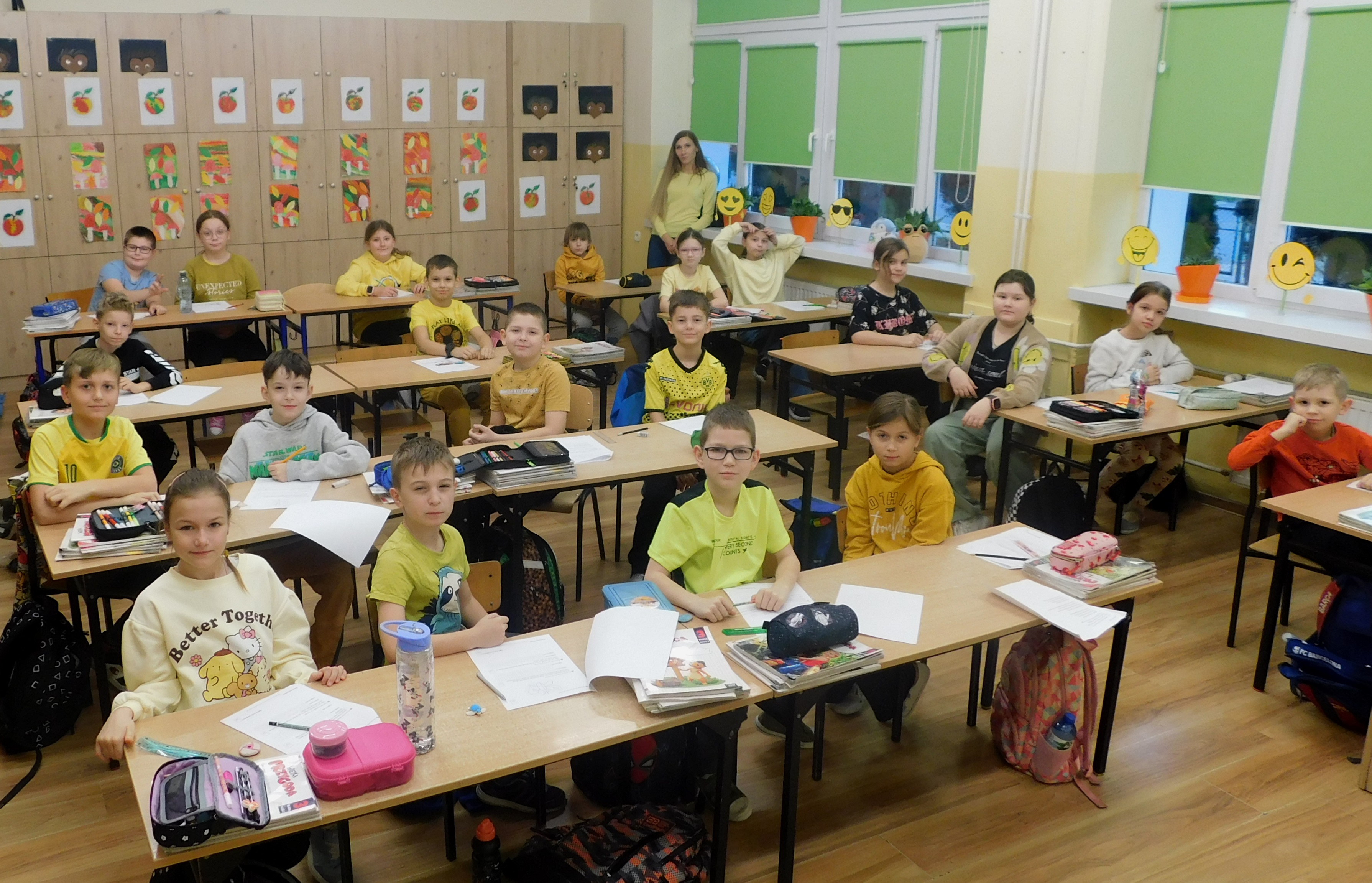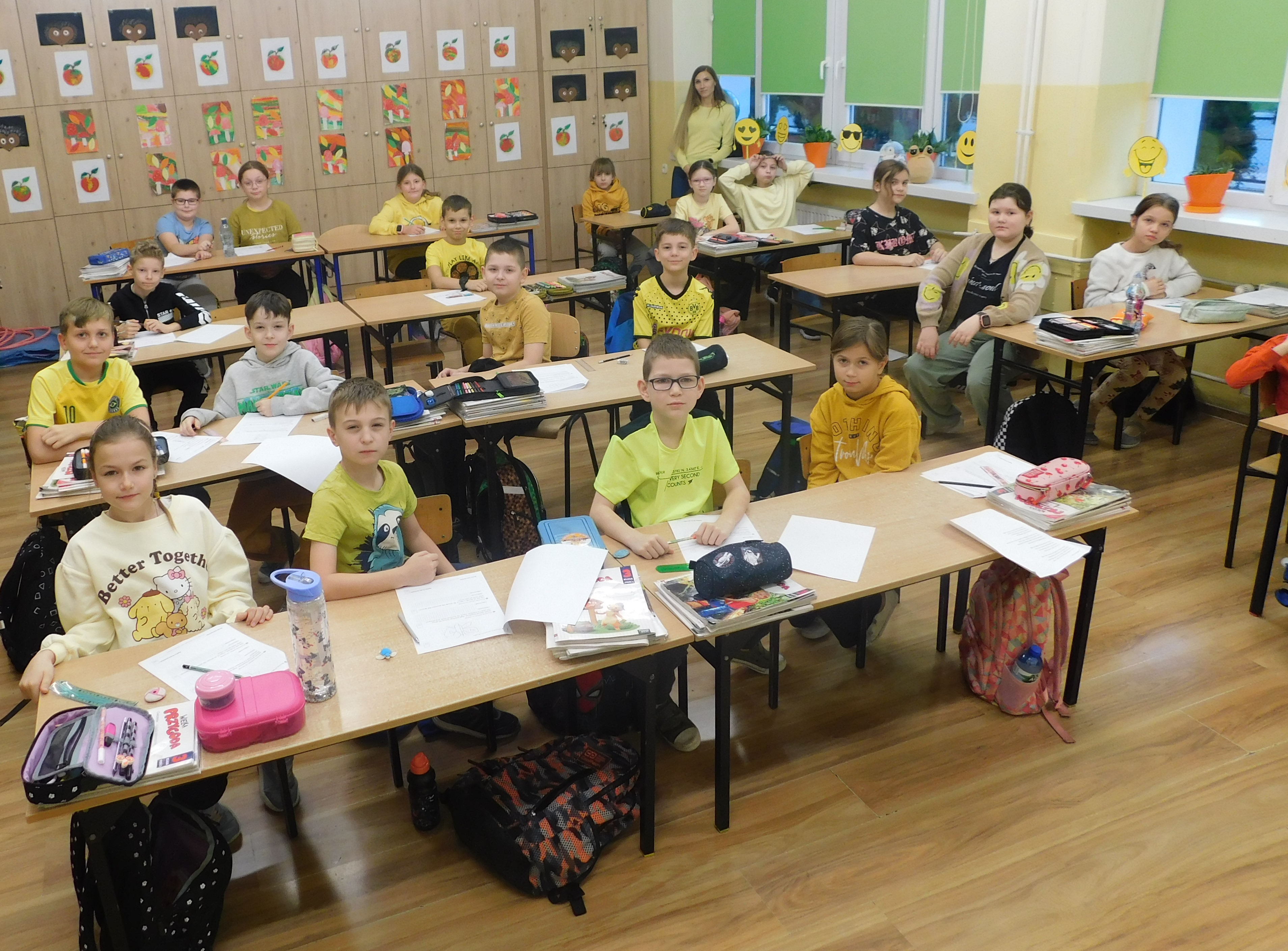W dniach 21-22 listopada 2024 roku w naszej szkole odbywał się ,,Dzień Życzliwości’’, czyli na korytarzach i klasach zagościł żółty kolor. Ten kolor symbolizuje to, co daje nam wszystkim wzajemna życzliwość - poczucie radości i uśmiechu. Na stroju – chyba- każdego ucznia i nie tylko, pojawiły się uśmiechnięte żółte buźki. Samorząd Uczniowski pod opieką p. Oliwii Duszyńskiej, przygotował dla każdego słoneczka i żółte taśmy z ,,życzliwkami’’. Poza tym, na drzwiach klas i w samych klasach zostały umieszczone radosne sentencje oraz gazetka tematyczna. Jak się okazałao najlepiej przygotowaną klasą do tych sympatycznych dni, była 5 a, która zajęła I lokatę - i otrzymała ... żólte cukierki, II lokatę zajęła klasa 6a, a III miejsce 6b /dzień bez stresu/. Były to wyjątkowe 2 dni, pełen uśmiechów, miłych słów, pozytywnych emocji. Oby tak było codziennie :)