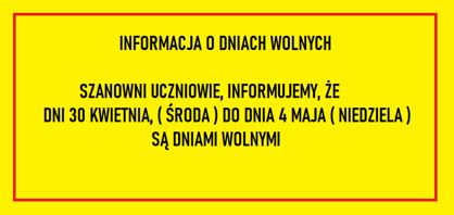Dzień 30 kwietnia ( środa ) do 4 maja ( niedziela) - dni wolne :)
