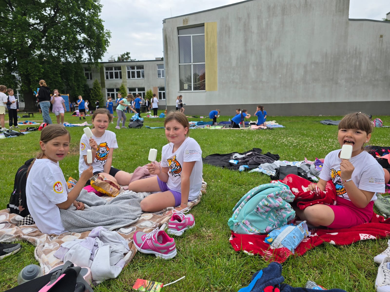 We wtorek 3 czerwca z okazji dnia Dziecka usportowiały się także najmłodsze dzieci z naszej szkoły. Były to przede wszystkim zabawy ruchowe na trawiastym placu przy boisku szkolnym. W sali gimnastycznej czekały też dmuchańce na chętnych. Na sam koniec każde dziecko otrzymało smakowitego loda od Pani Agnieszki ze szklnego sklepiku. W koncu to Dzień Dziecka !