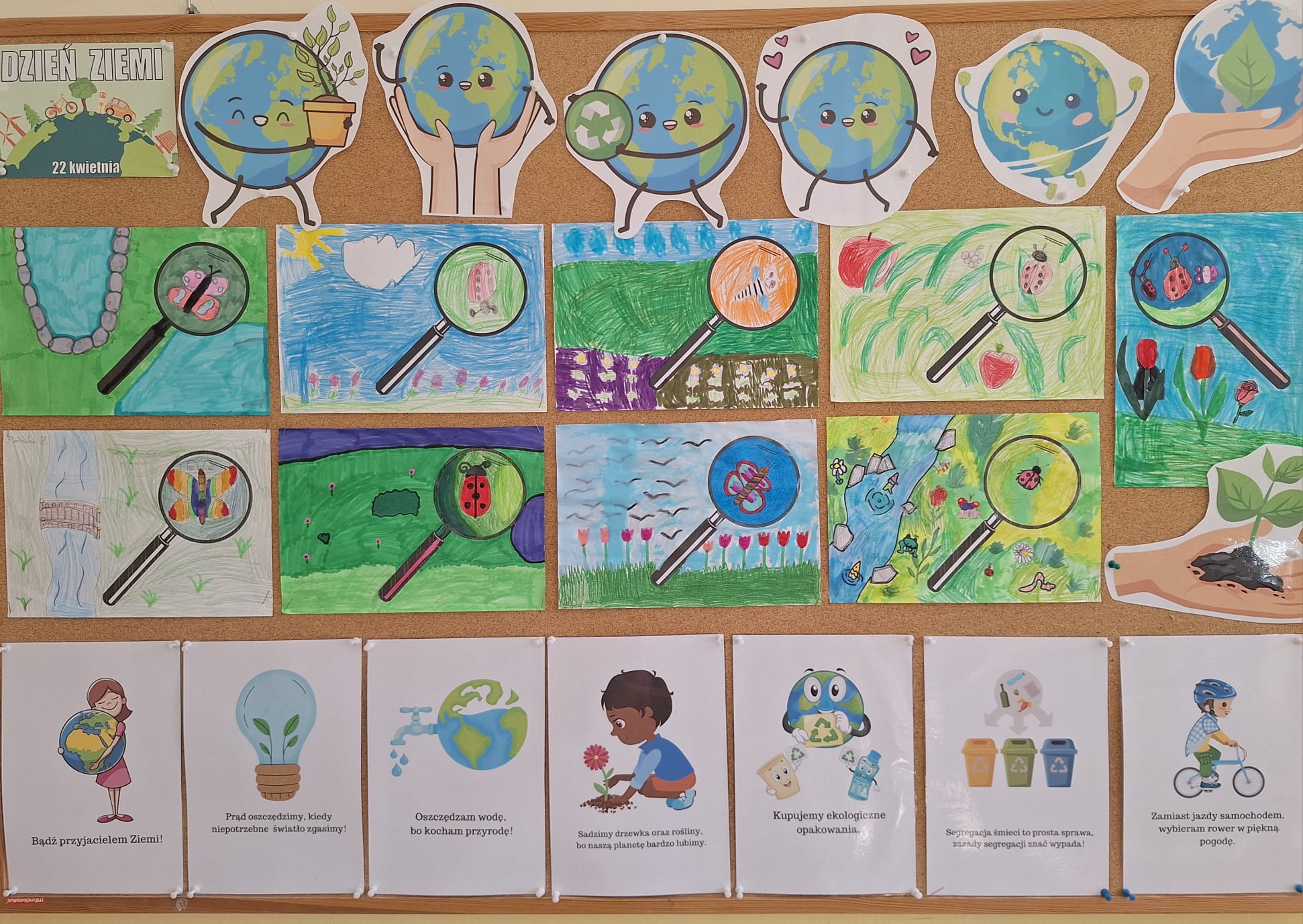 W świetlicy szkolnej odbyły się zajęcia o tematyce ekologicznej. Uczniowie wzięli udział w Kręgu Przyjaciół Ziemi, tworzyli prace plastyczne " Pod lupą" i przygotowali gazetkę ścienną z zasadami, jakimi powinni się kierować młodzi ekolodzy.