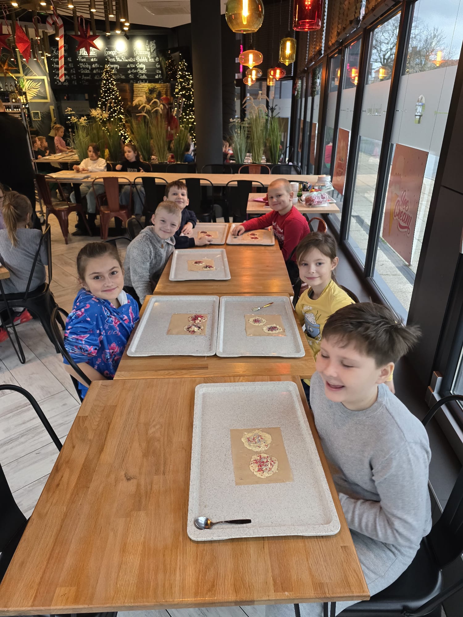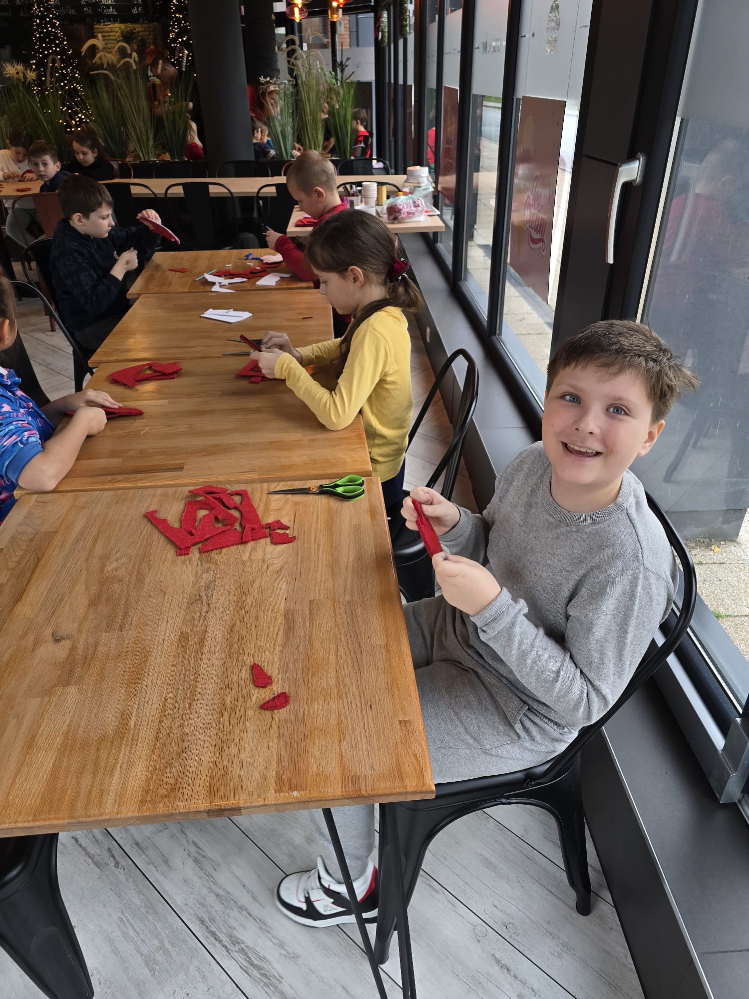 Dzisiaj klasa 2a wzięła udział w warsztatach świątecznych w restauracji Bastion. Dzieci wykonały bombki z bialej czekolady i kolorowej posypki, uszyły świąteczne ozdobę z filcu i spotkały się z Mikołajem.