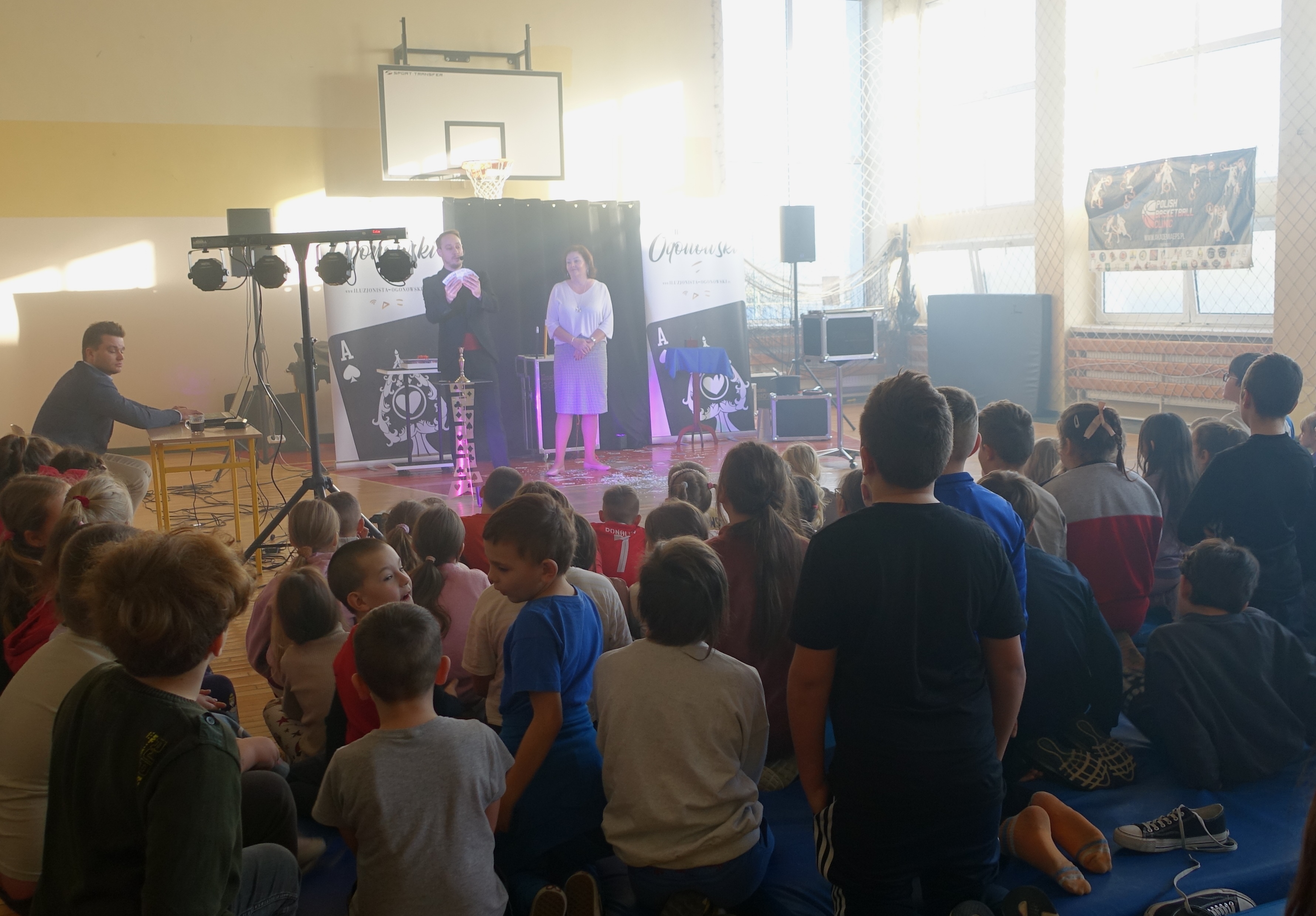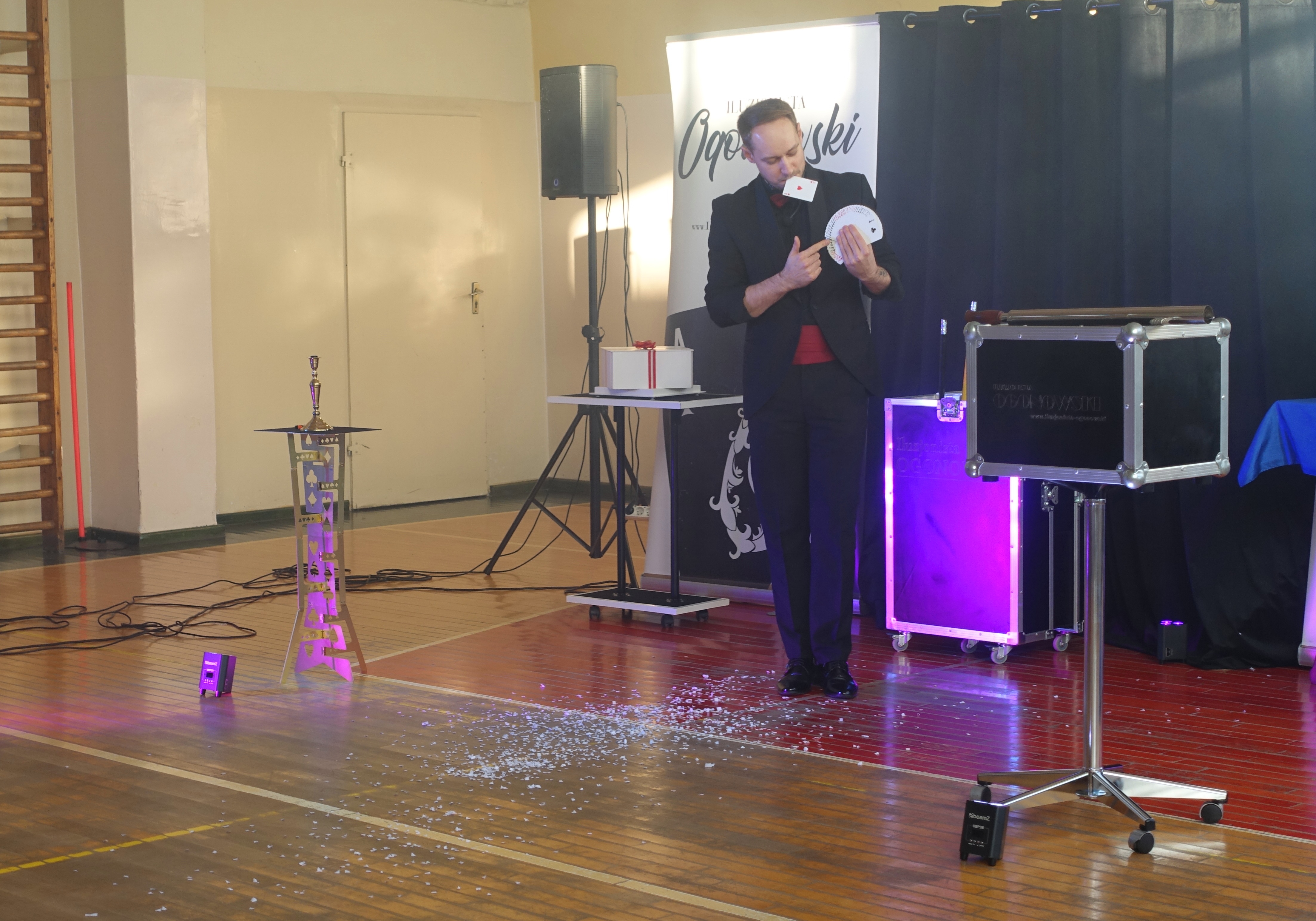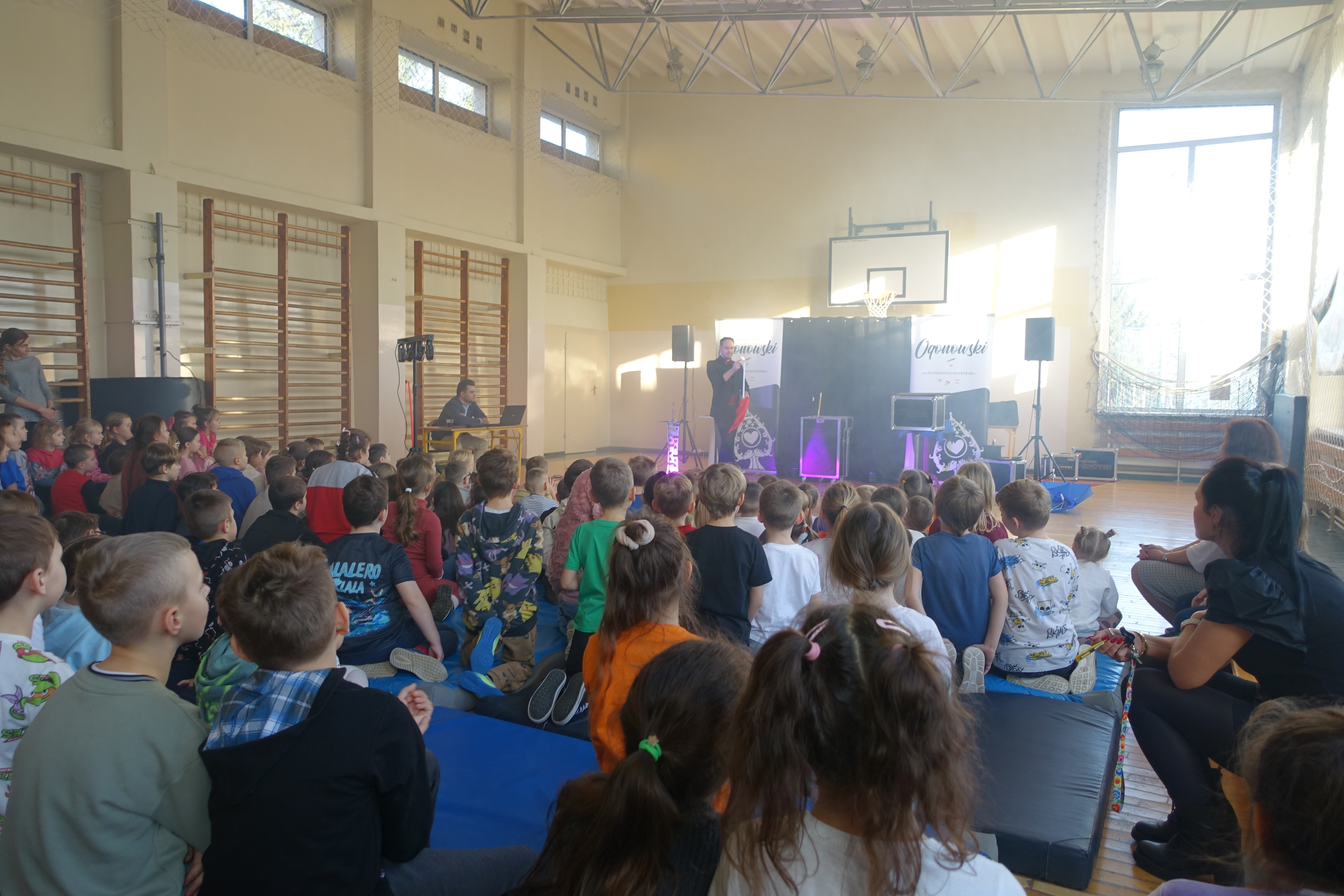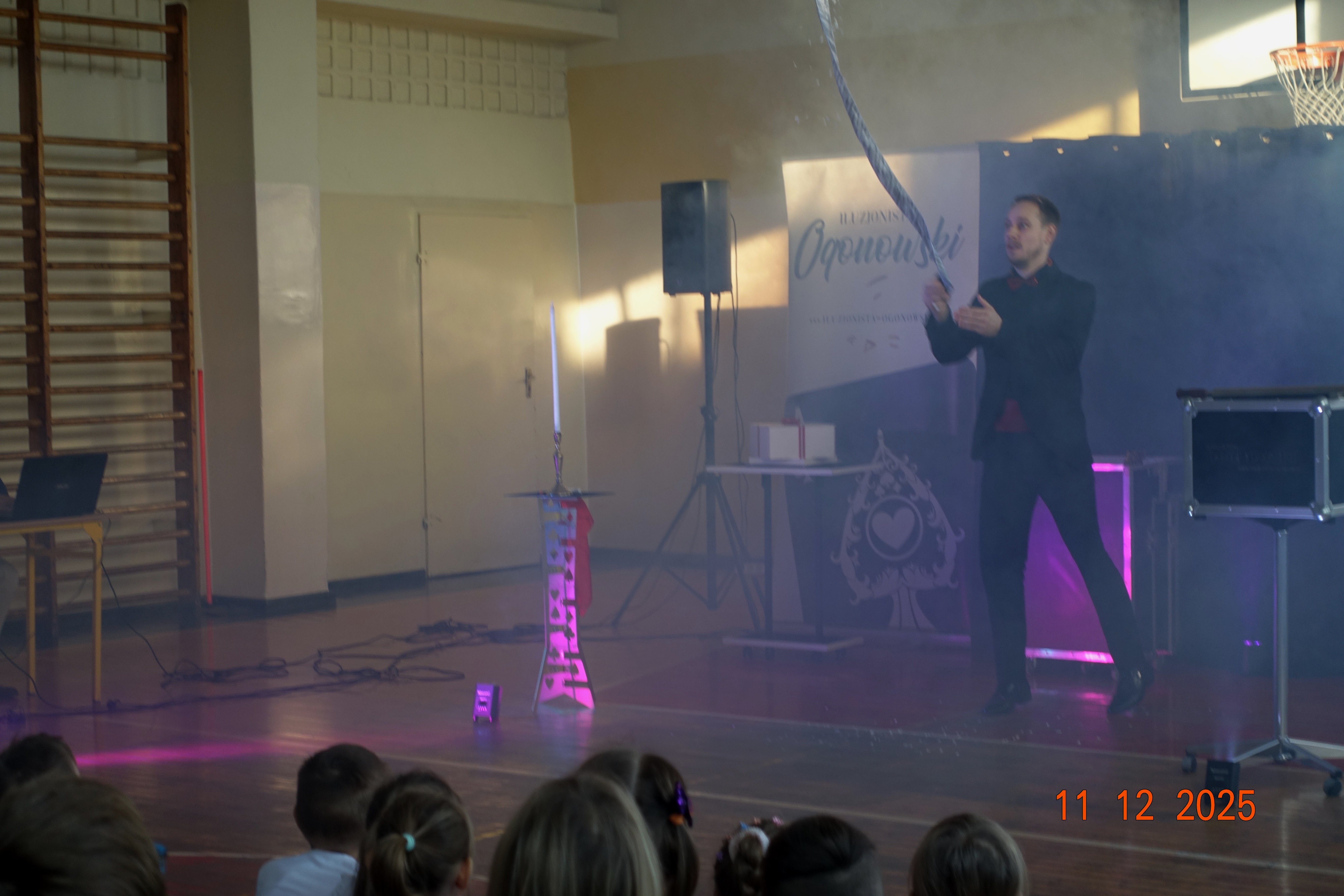 Dzisiaj w naszej szkole odbyło się niecodzienne spotkanie z iluzjonistą, który przeniósł uczniów w magiczny świat pełen niespodziewanych trików oraz znakomitej zabawy czyli ,, tam gdzie nierealne i niemożliwe staje się rzeczywiste i bliskie’’. W tę podróż zabrał wszystkich Łukasz Ogonowski - nowoczesny iluzjonista, uczestnik VII edycji programu "Mam Talent". Członek najsłynniejszej grupy Champions of Illusion, twórca "Spektaklu Iluzji" wystawianego na deskach teatrów w całej Polsce. Występ, pełen humoru i zaskakujących zwrotów akcji, od samego początku wzbudził ogromne emocje. Dzieci z zapartym tchem obserwowały, jak znikają i pojawiają się przedmioty, karty, taśmy, lewitują rekwizyty, a z pozoru niemożliwe sztuczki stają się rzeczywistością. Dzisiaj na sali gimnastycznej nie zabrakło śmiechu i niezwykłych chwil, które na długo pozostaną w pamięci uczniów. Serdecznie dziękujemy iluzjoniście za tę pełną magii wizytę.