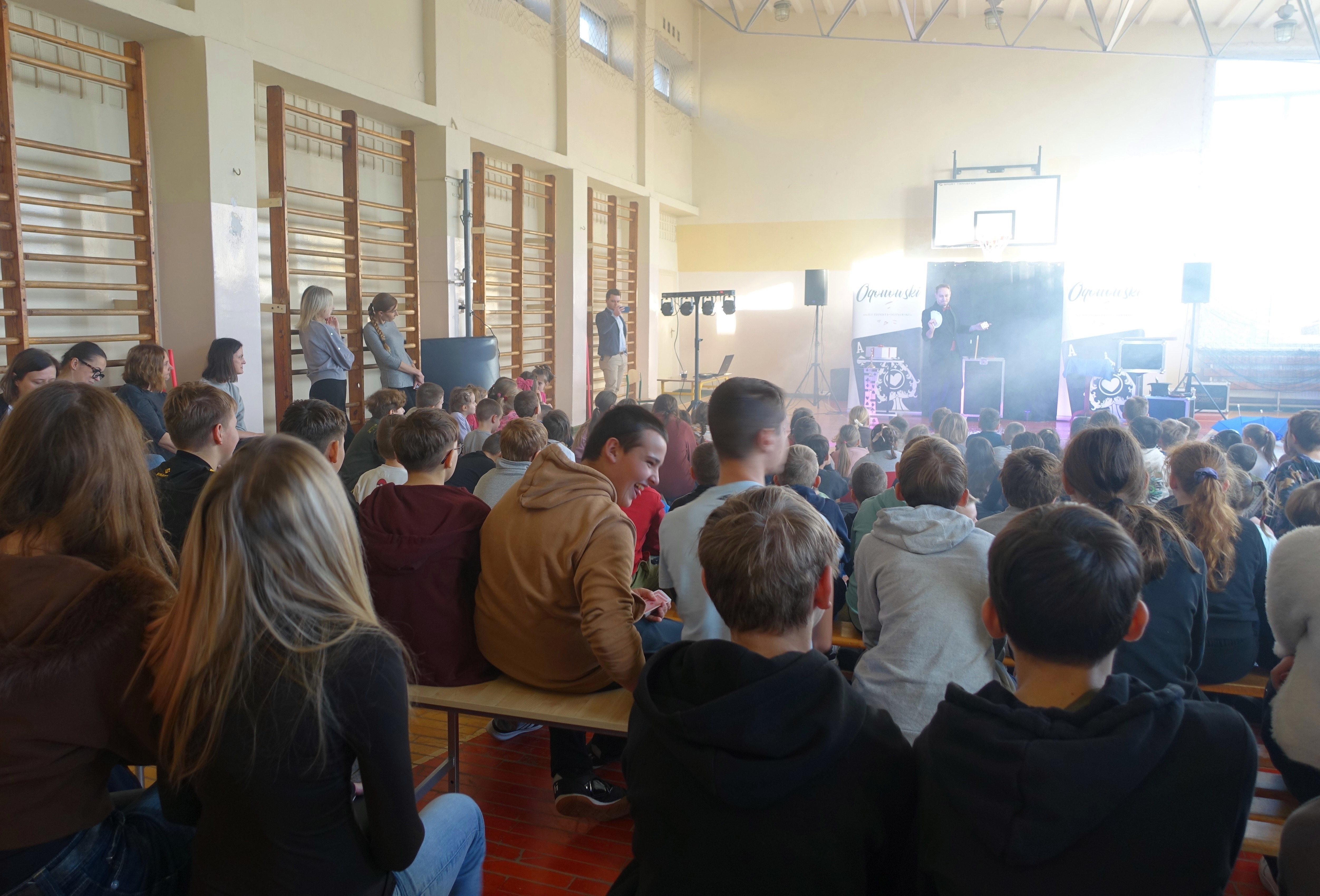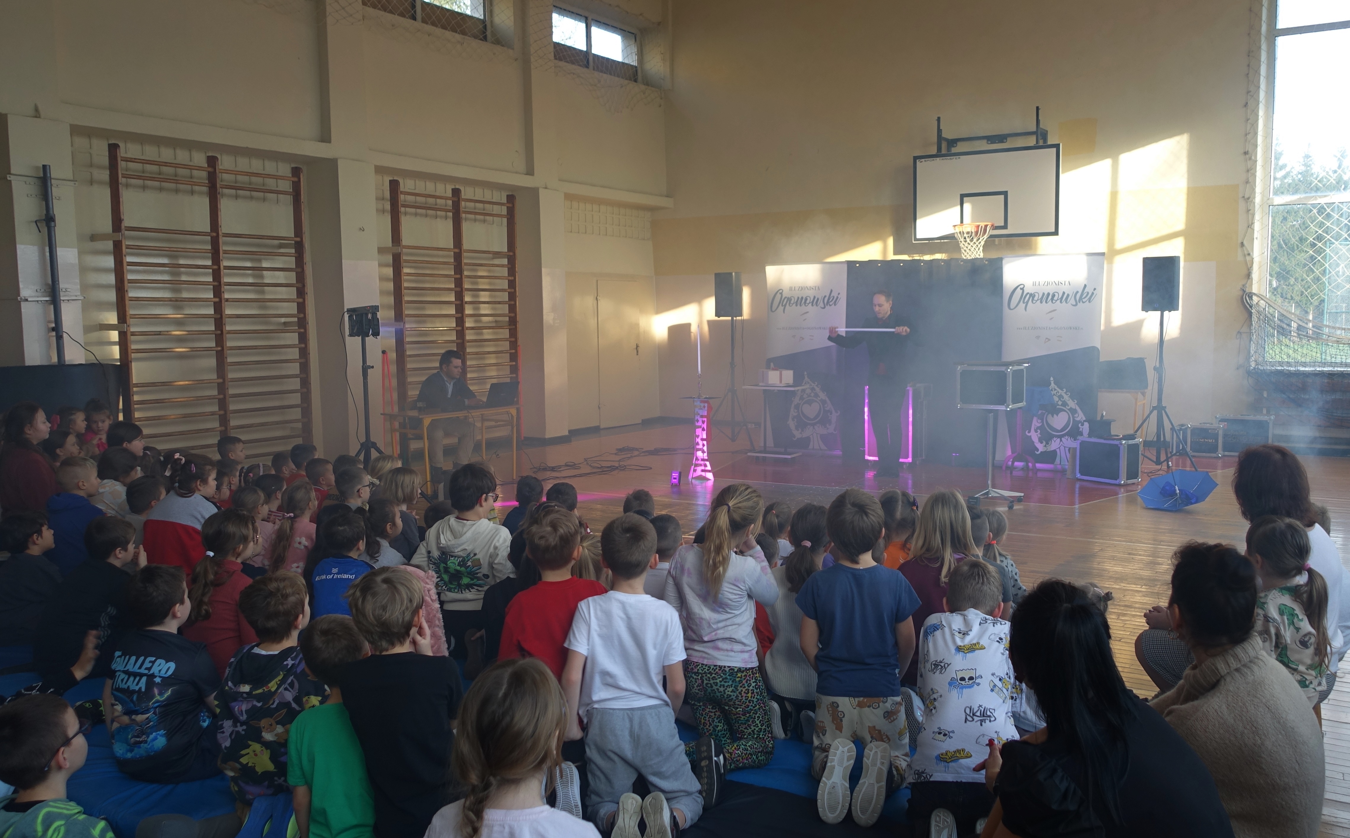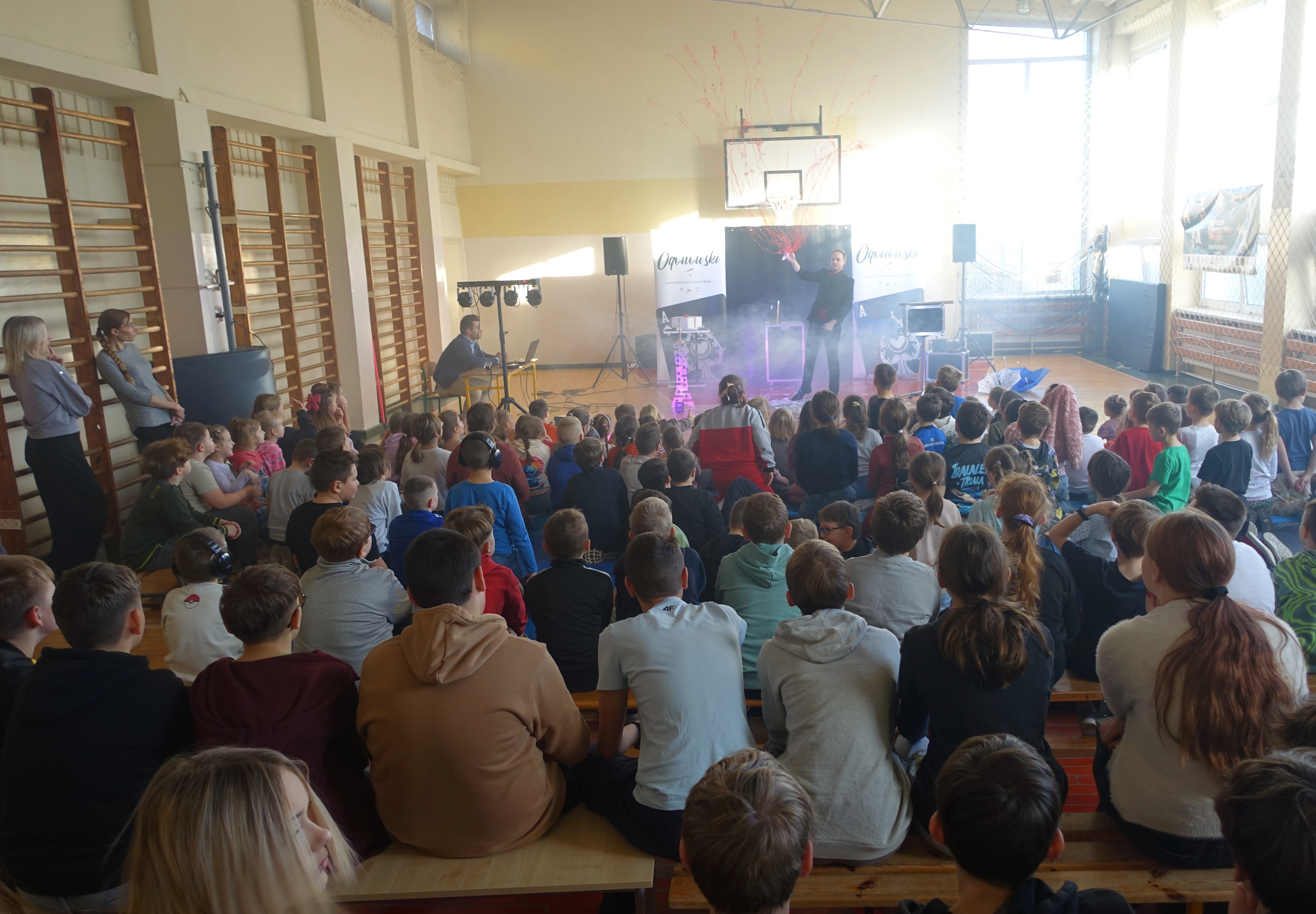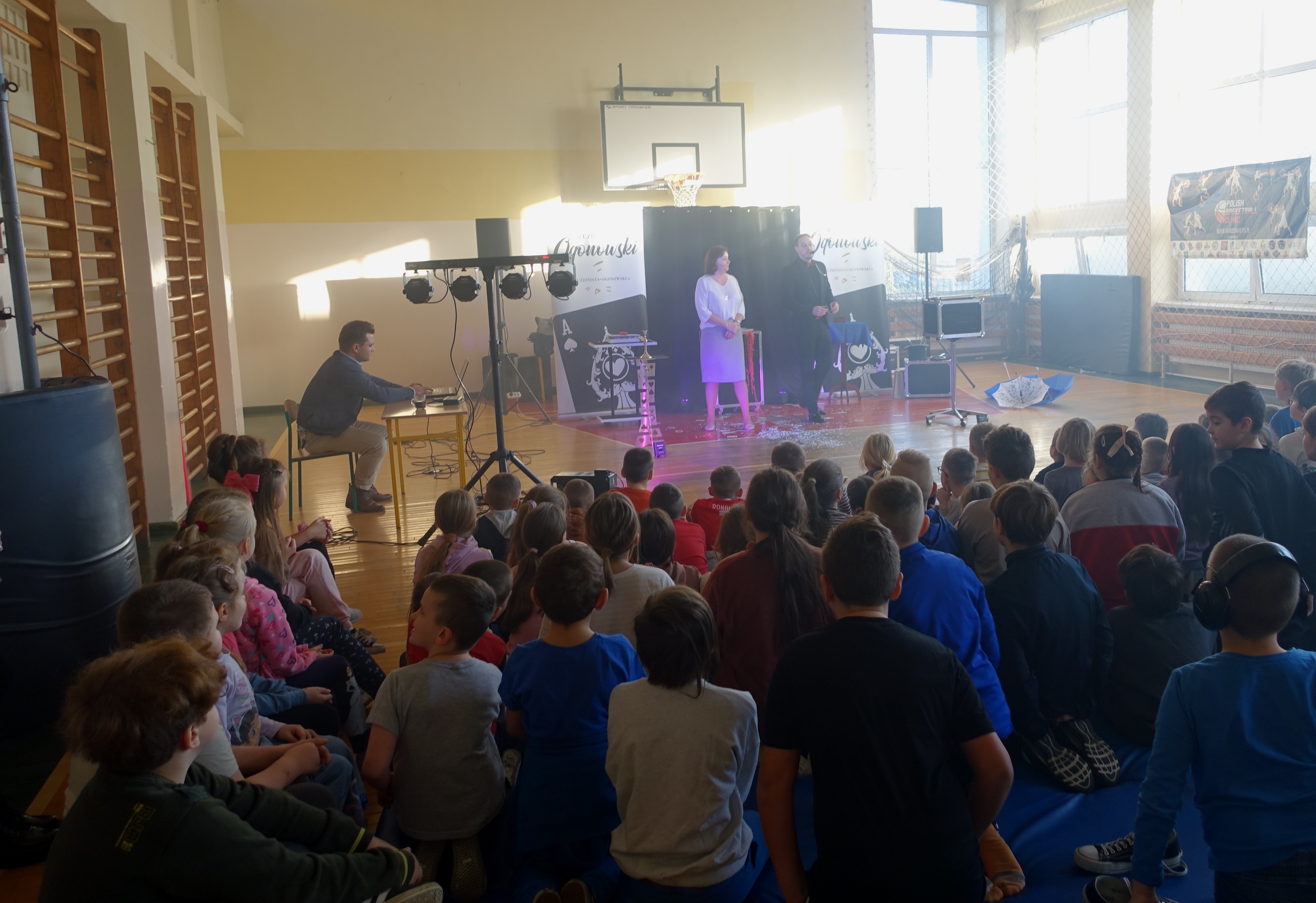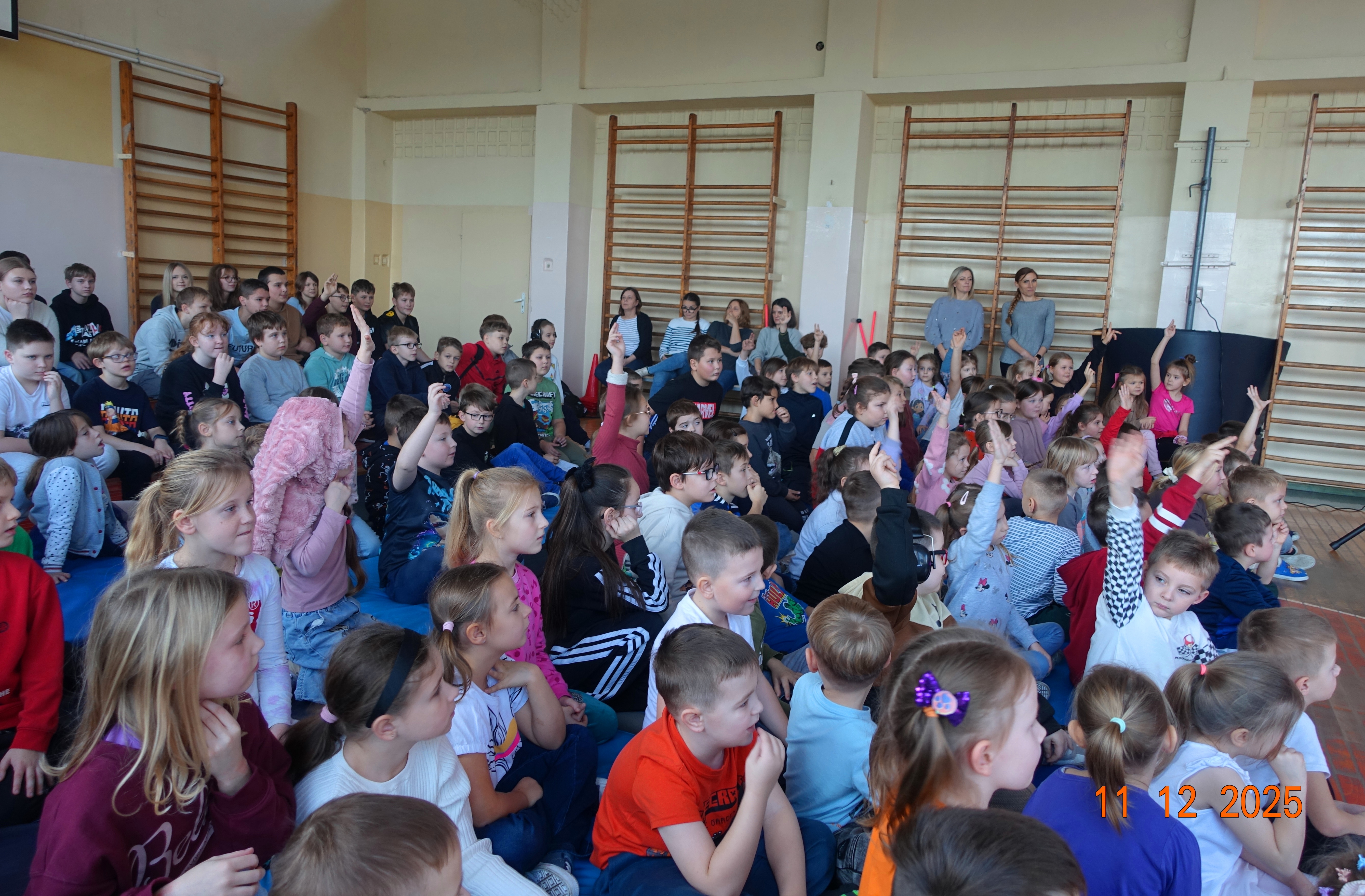 Dzisiaj w naszej szkole odbyło się niecodzienne spotkanie z iluzjonistą, który przeniósł uczniów w magiczny świat pełen niespodziewanych trików oraz znakomitej zabawy czyli ,, tam gdzie nierealne i niemożliwe staje się rzeczywiste i bliskie’’. W tę podróż zabrał wszystkich Łukasz Ogonowski - nowoczesny iluzjonista, uczestnik VII edycji programu "Mam Talent". Członek najsłynniejszej grupy Champions of Illusion, twórca "Spektaklu Iluzji" wystawianego na deskach teatrów w całej Polsce. Występ, pełen humoru i zaskakujących zwrotów akcji, od samego początku wzbudził ogromne emocje. Dzieci z zapartym tchem obserwowały, jak znikają i pojawiają się przedmioty, karty, taśmy, lewitują rekwizyty, a z pozoru niemożliwe sztuczki stają się rzeczywistością. Dzisiaj na sali gimnastycznej nie zabrakło śmiechu i niezwykłych chwil, które na długo pozostaną w pamięci uczniów. Serdecznie dziękujemy iluzjoniście za tę pełną magii wizytę.