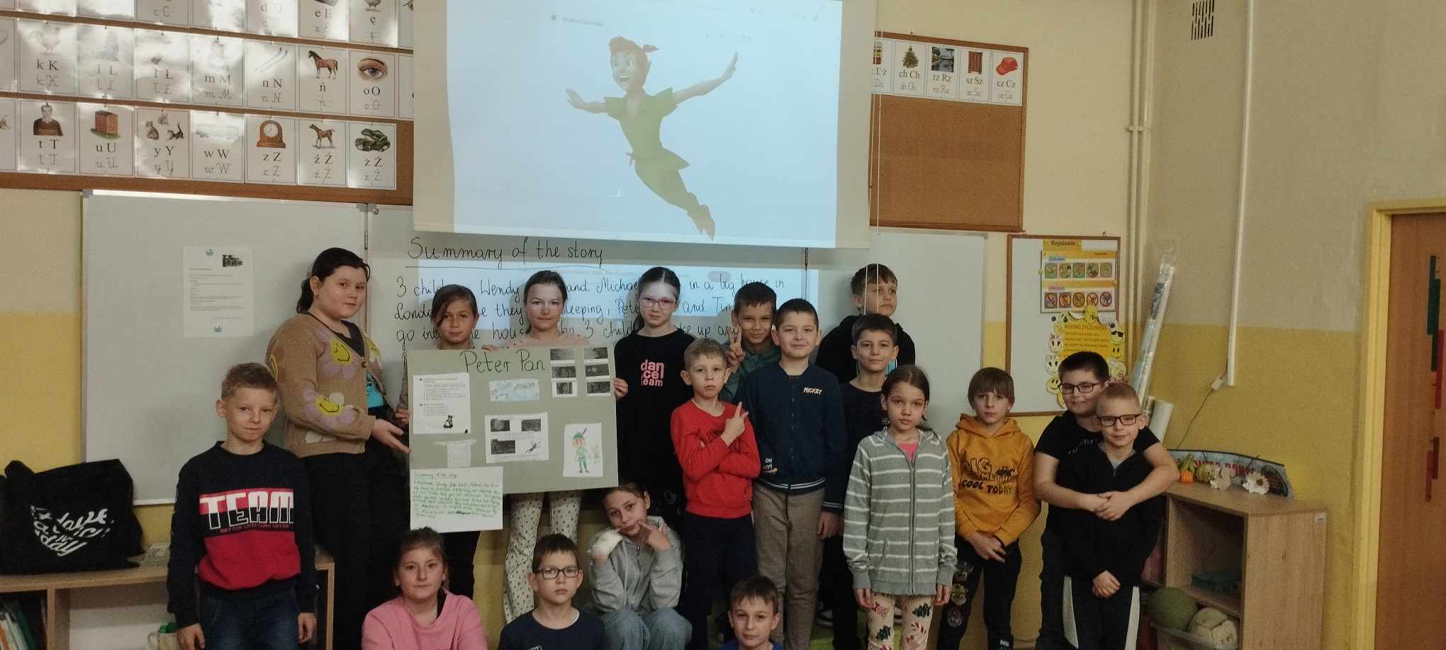W klasie 2b oraz 3b odbyły się innowacyjne zajęcia z języka angielskiego. Uczniowie poznali historię ,,Piotrusia Pana’’ w wersji anglojęzycznej. Czytaliśmy książkę, zrobiliśmy karty pracy oraz plakaty tematyczne. Uczniowie poznali nowe słownictwo, pracowali w parach i już nie mogą doczekać się kolejnych bajek w języku angielskim :)
