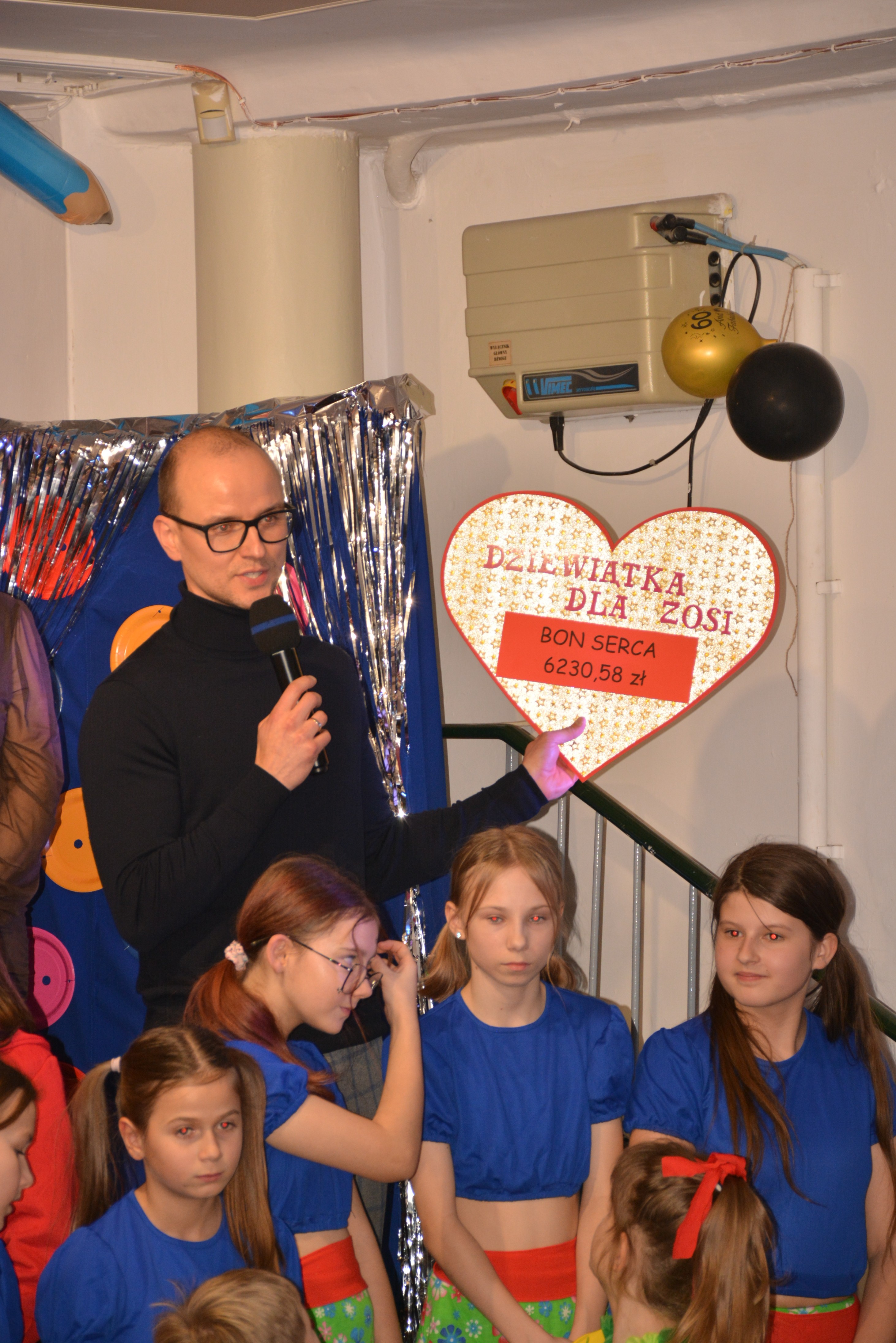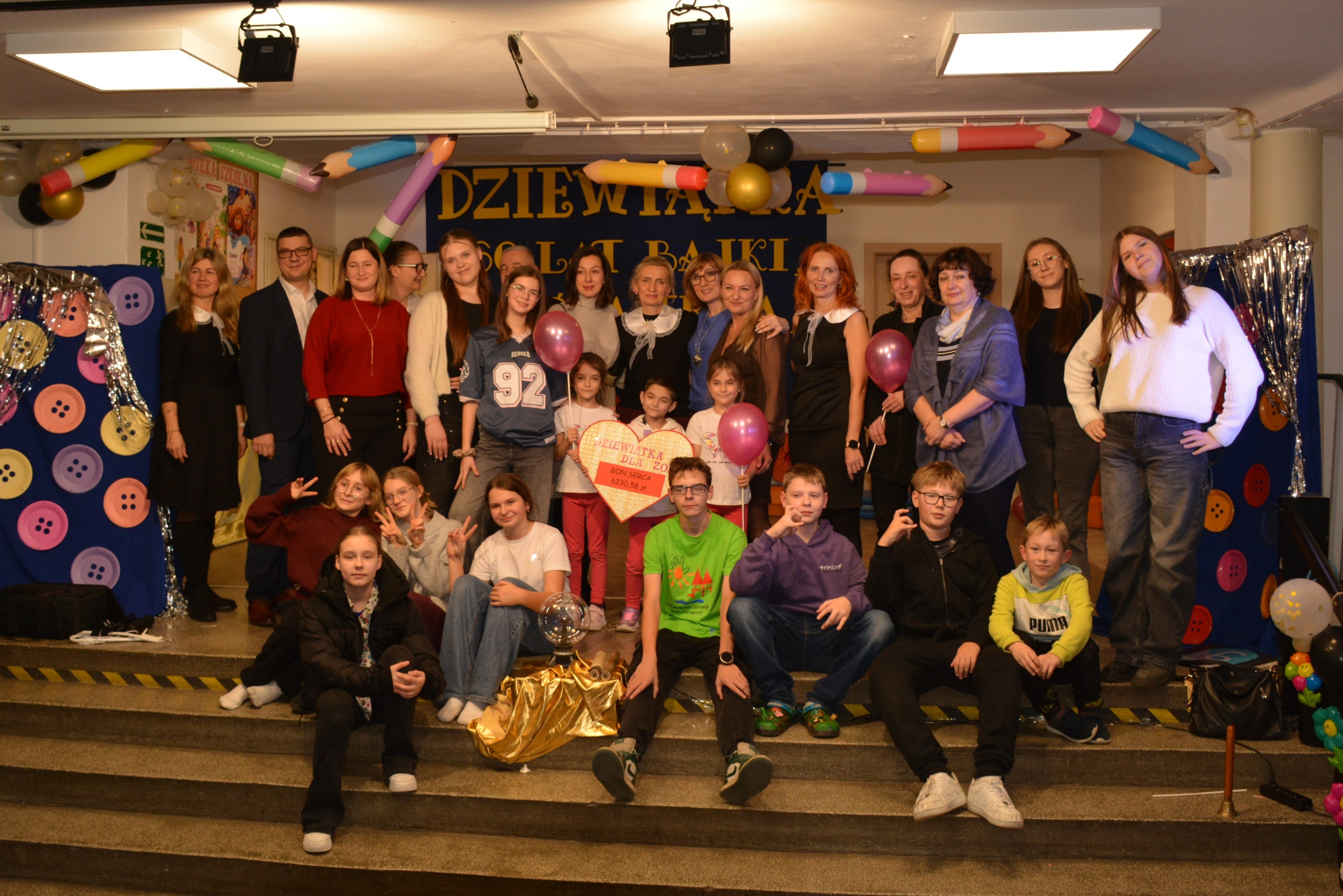 11 grudnia br. o godz. 18.00 w Szkole Podstawowej nr 9 w Malborku było profesjonalnie. To właśnie w ten niezwykły wieczór zaangażowana społeczność Dziewiątki wystawiła swój jubileuszowy spektakl na bis „60 lat bajki, która trwa”. Licznie zgromadzona publiczność zapełniła dosłownie cały hol naszej szkoły, a wszyscy uczestnicy nie weszli za darmo! Każdy dołożył cegiełkę zdrowia dla Zosi Lewandowskiej, która, wraz z siostrami i tatą, siedziała w pierwszym rzędzie jako gość honorowy. Było zabawnie i uczuciowo. Entuzjazm bił od wszystkich występujących. Wiele dobrych słów padło od wielu osób - i tych, po stronie sceny i tych, którzy zostali zaproszeni na tę szlachetną uroczystość. Emocje były wszechobecne, bo oto przed występującymi siedziała mała Zosia z siostrami, które z zapałem i nieukrywaną radością oglądały nasz występ. Sprawiły to dzieci, sprawiła to młodzież, wolontariusze, absolwenci, nauczyciele, rodzice i dyrekcja naszej szkoły. Wraz z empatyczną publicznością stanowimy wyjątkowy team „dziewiątkowy”, którego efektem pracy jest bon serca dla Zosi na kwotę 6230,58 zł.