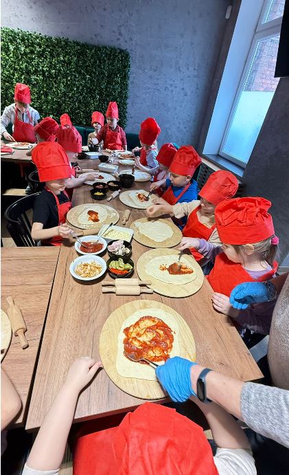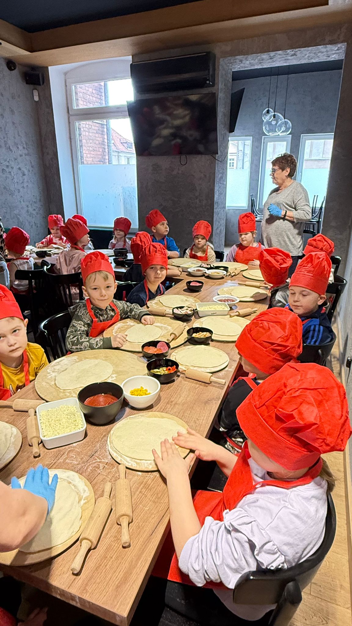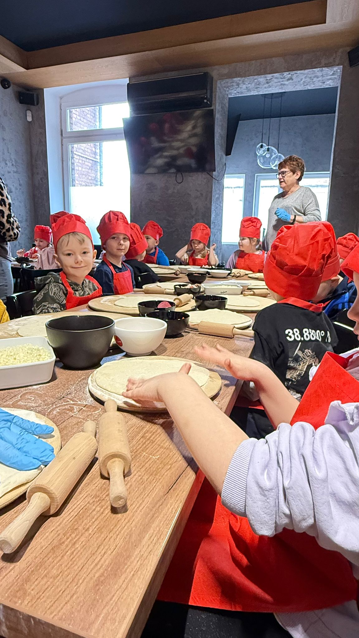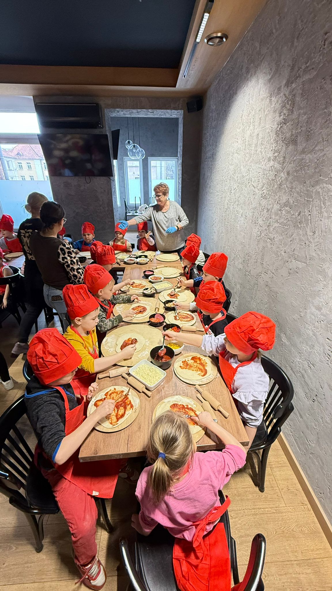Dzisiaj, najmłodsi uczniowie naszej szkoły – dzieci z oddziału zerowego oraz klasy pierwszej ,,B''– wzięli udział w warsztatach robienia pizzy. Podczas zajęć dzieci od podstaw dowiedziały się, jak należy przygotować pizzę, a następnie samodzielnie wykonały swoje wypieki. Zajęcia były doskonałym przykładem nauki poprzez zabawę oraz sprzyjały ćwiczeniu motoryki małej. Na zakończenie dzieci z radością degustowały własnoręcznie przygotowane pizze.