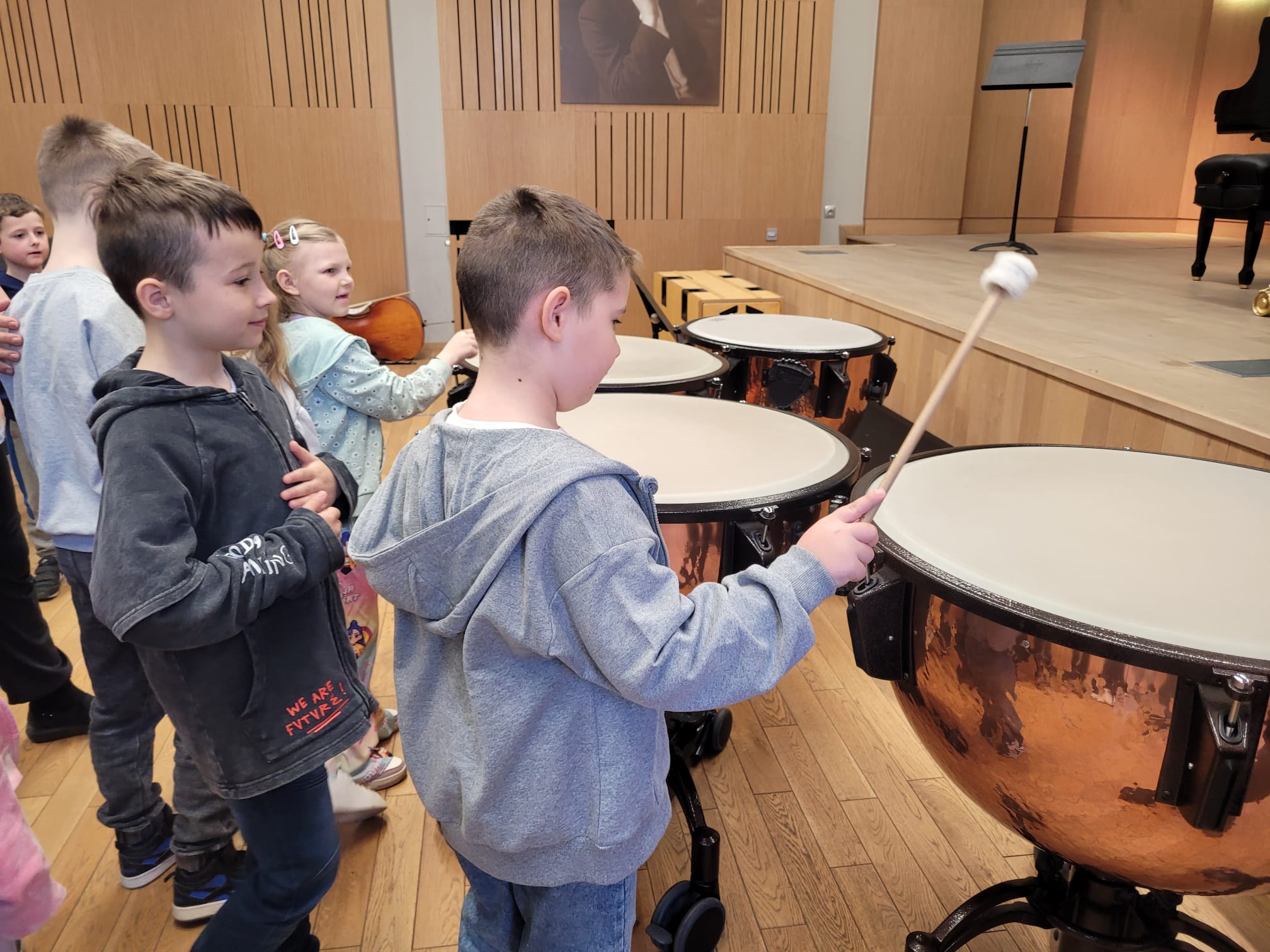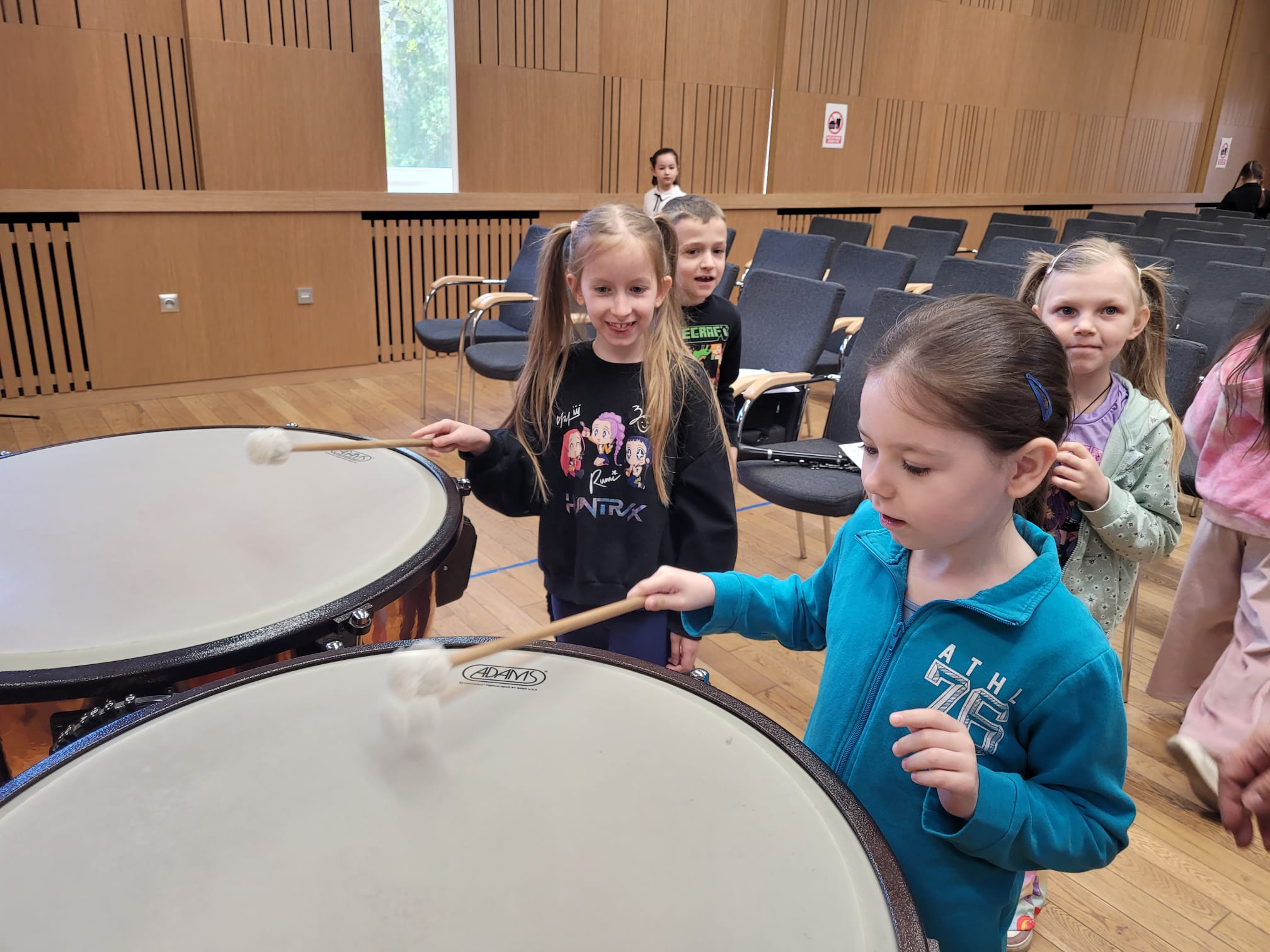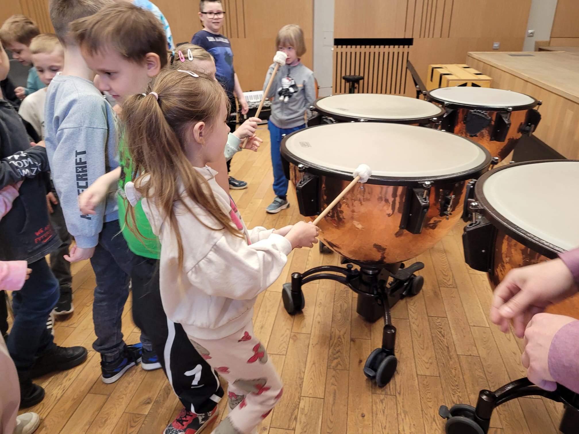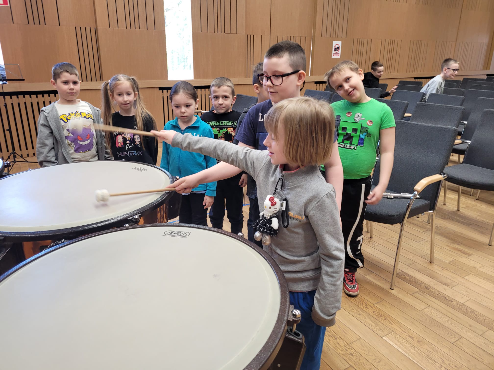 22 kwietnia 2026 r. uczniowie klasy 1a z wychowawczynią p. Joanną Ilarz, odwiedzili Szkołę Muzyczną, gdzie uczestniczyli w wyjątkowym koncercie. Dzieci miały okazję poznać różne instrumenty oraz posłuchać ich brzmienia na żywo. Wyjście było ciekawym i inspirującym doświadczeniem dla wszystkich uczestników.