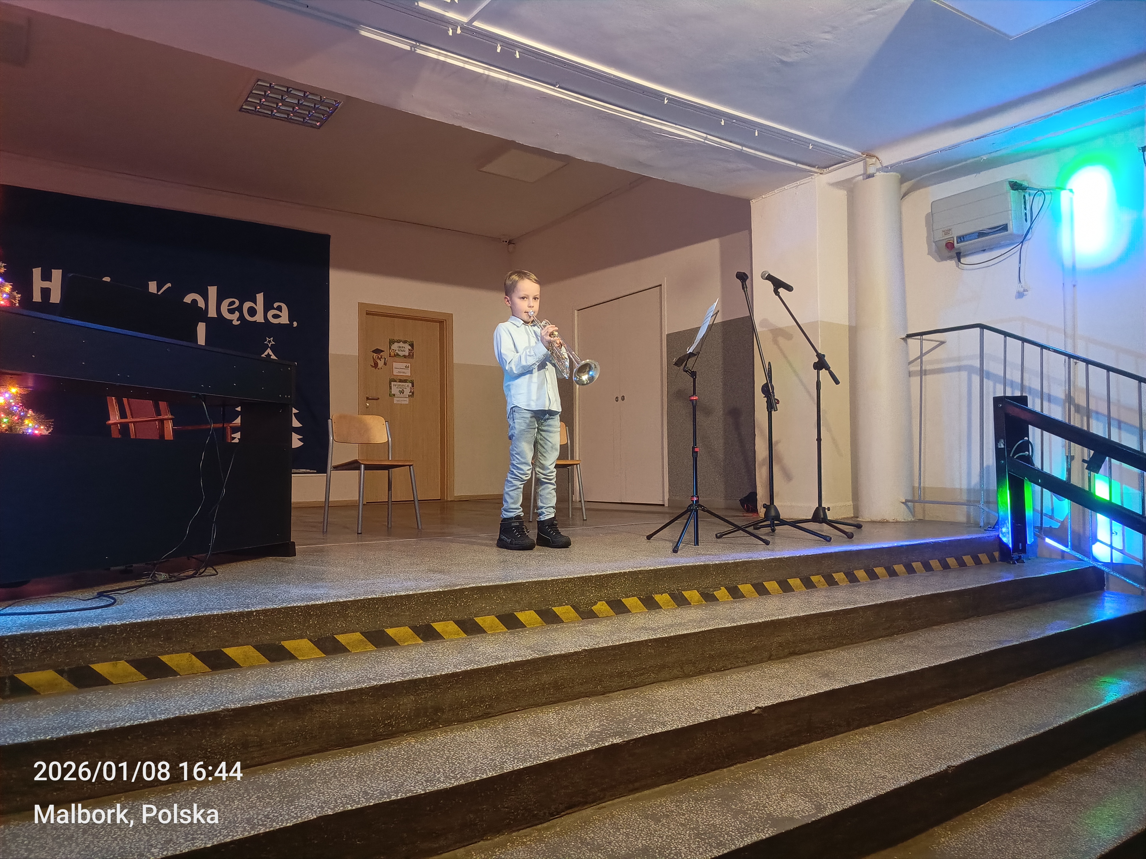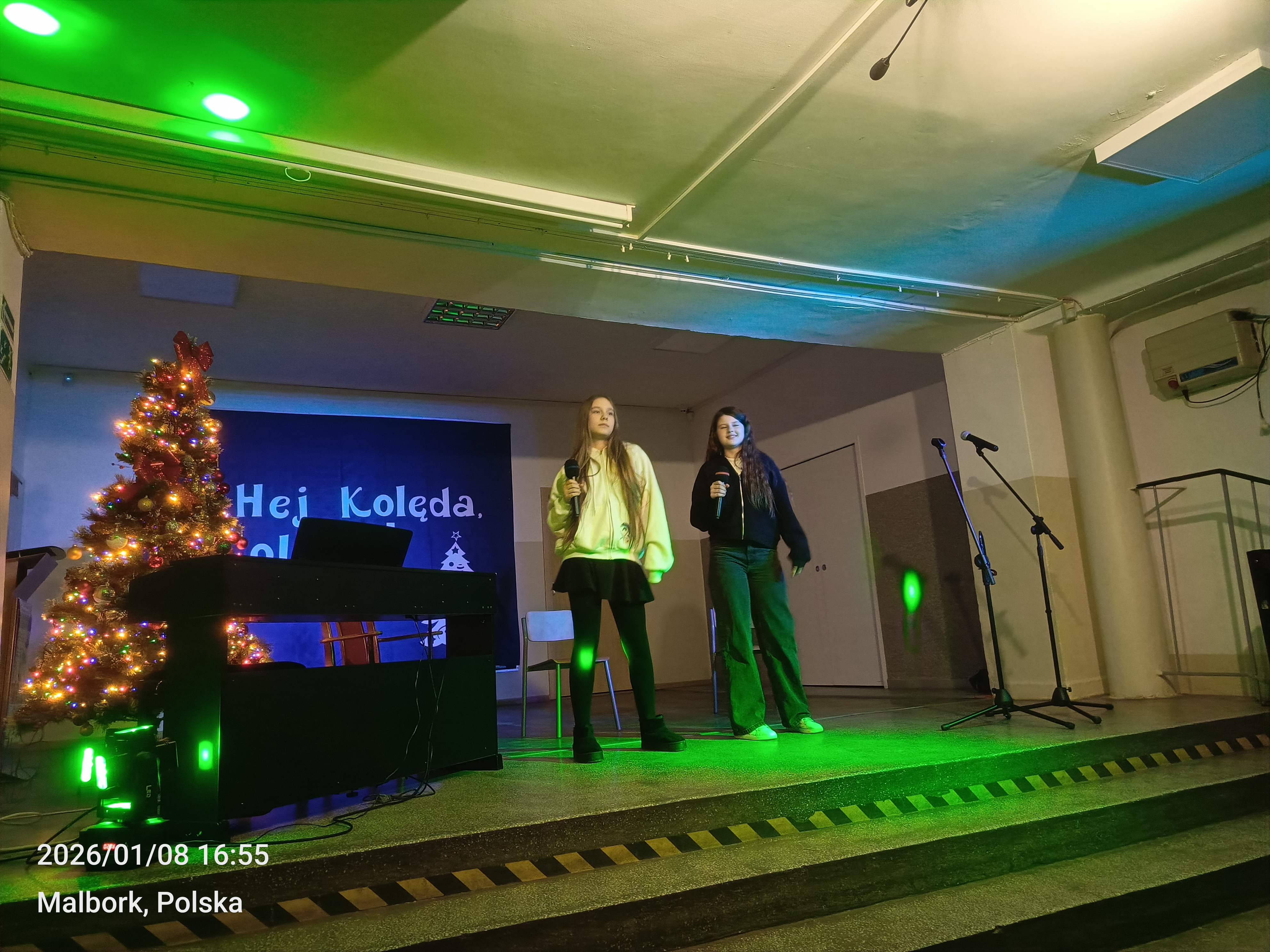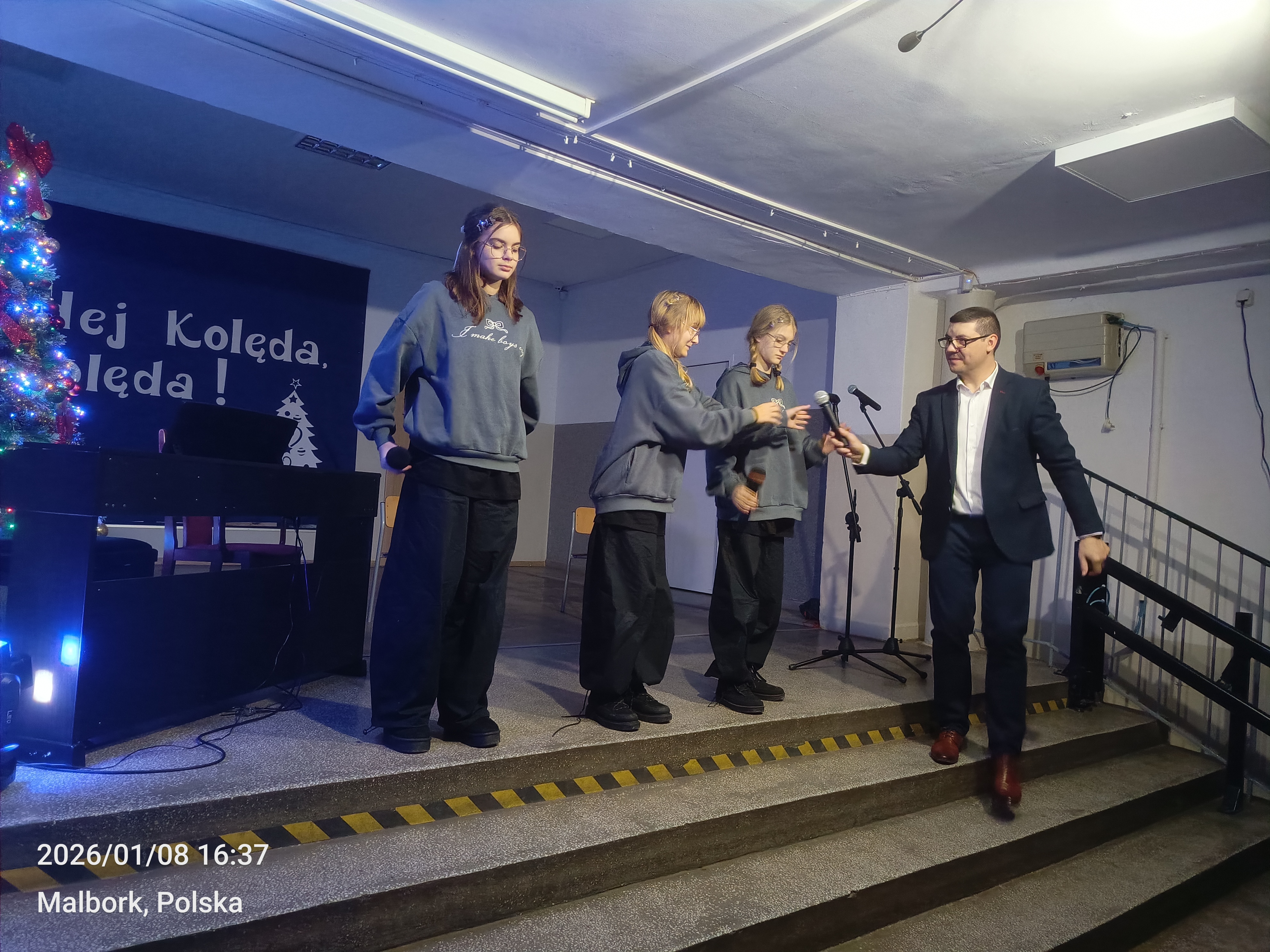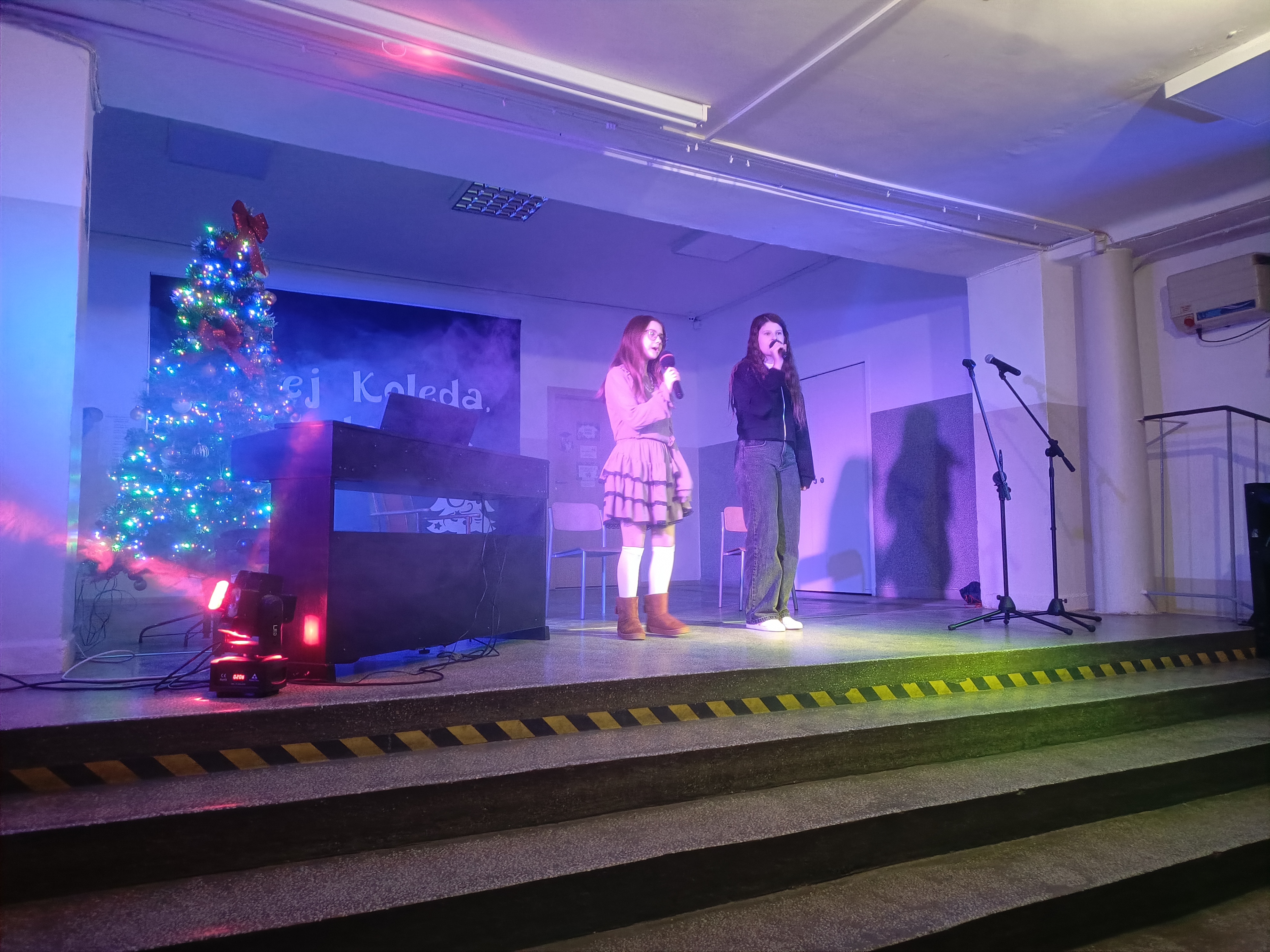 Tradycją naszej szkoły jest coroczny styczniowy Koncert Kolęd i Pastorałek na ,,dziewiątkowej,, scenie. Taki odbył się w naszej szkole 8.01.2026. Na scenie zaprezentowało się 25 artystów z klas 1-8. Poza wykonywaniem tradycyjnych kolęd i pastorałek nie brakowało występów na instrumentach takich jak: trąbka, pianino, wiolonczela czy klarnet. Publiczność oklaskiwała występy szkolnych artystów gromkimi brawami. Całe wydarzenie podsumowała Pani wicedyrektor naszej szkoły - Bożena Wereszczyńska. Nad sprzętem muzycznym czuwał Pan Andrzej Pokora, a organizatorem i prowadzącym koncert był nauczyciel muzyki, Pan Łukasz Rosiak. Na zakończenie wszyscy artyści oraz publiczność odśpiewali kolędę Przybieżeli do Betlejem.