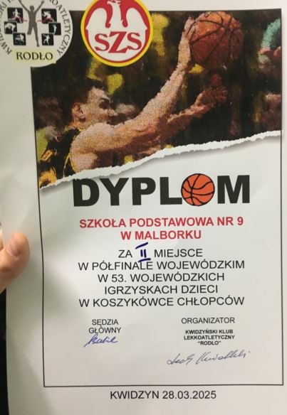 W poniedziałek 17 marca b.r. odbyły się Mistrzostwa Malborka i Powiatu w Koszykówce chłopców szkół podstawowych w ramach Igrzysk Młodzieży Szkolnej. Reprezentacja naszych chłopców, uczniów z klas VI wygrała cały turniej i awansowała do finału wojewódzkiego, który odbędzie się niebawem w Kwidzynie. Skład zespołu: Mattern Franciszek, Panfil Oliwier, Zakrzewski Jakub, Oreschin Michał, Kamiński Michał, Lisewski Igor, Aleksander Dombrowski, Antoni Czajkowski, Sebastian Staszyński. Olbrzymie gratulacje i życzenia dalszych sukcesów dla naszych reprezentantów. Opiekunem drużyny jest p. Mirosław Cieślik.