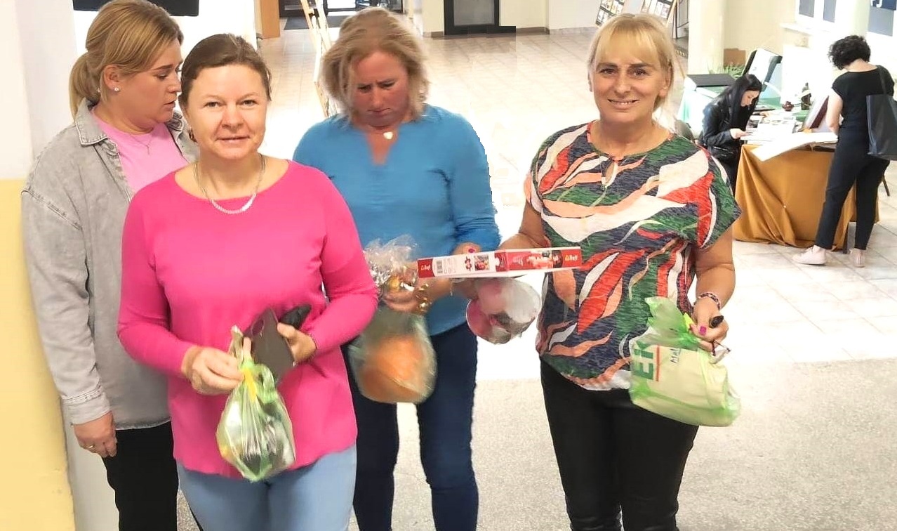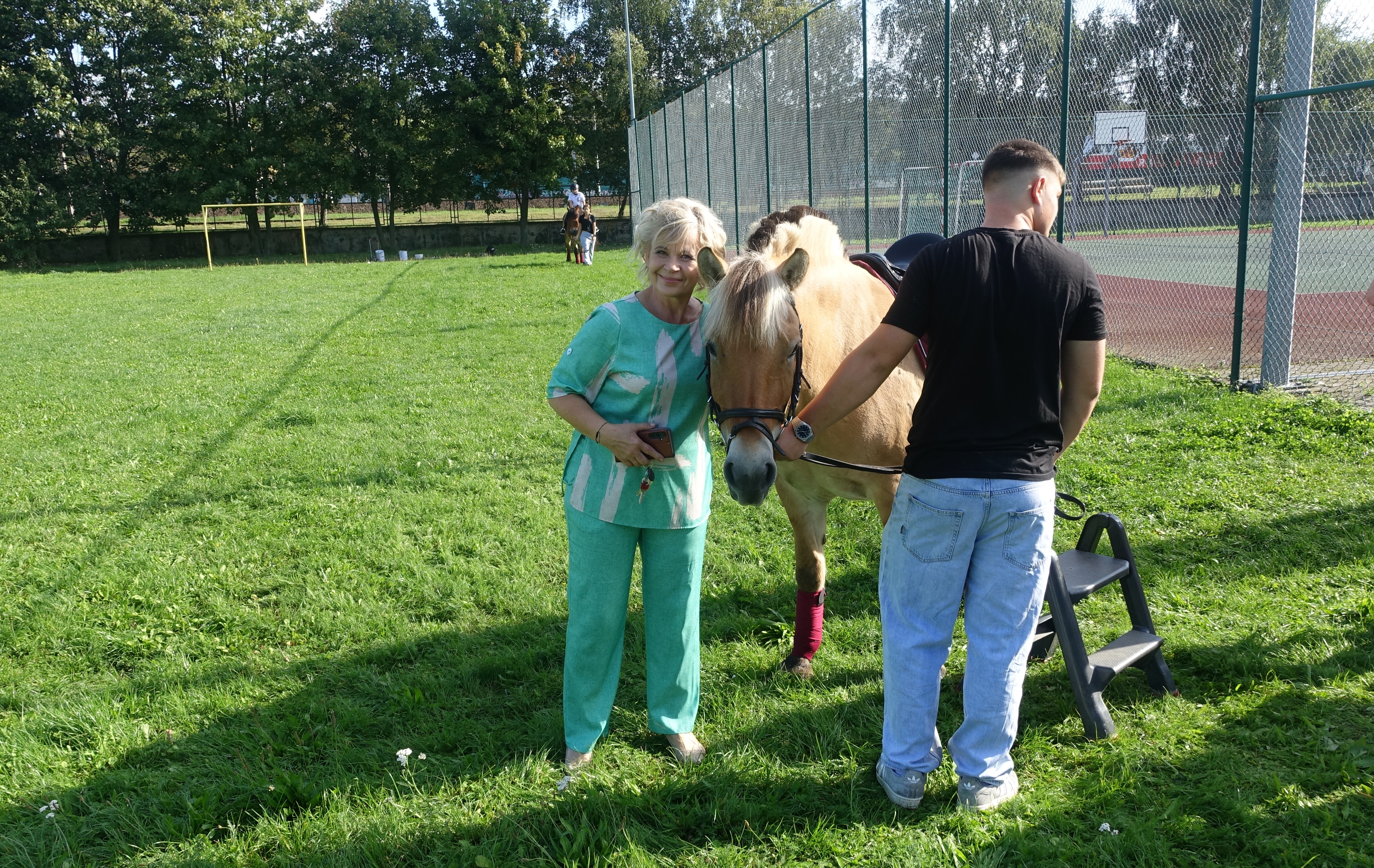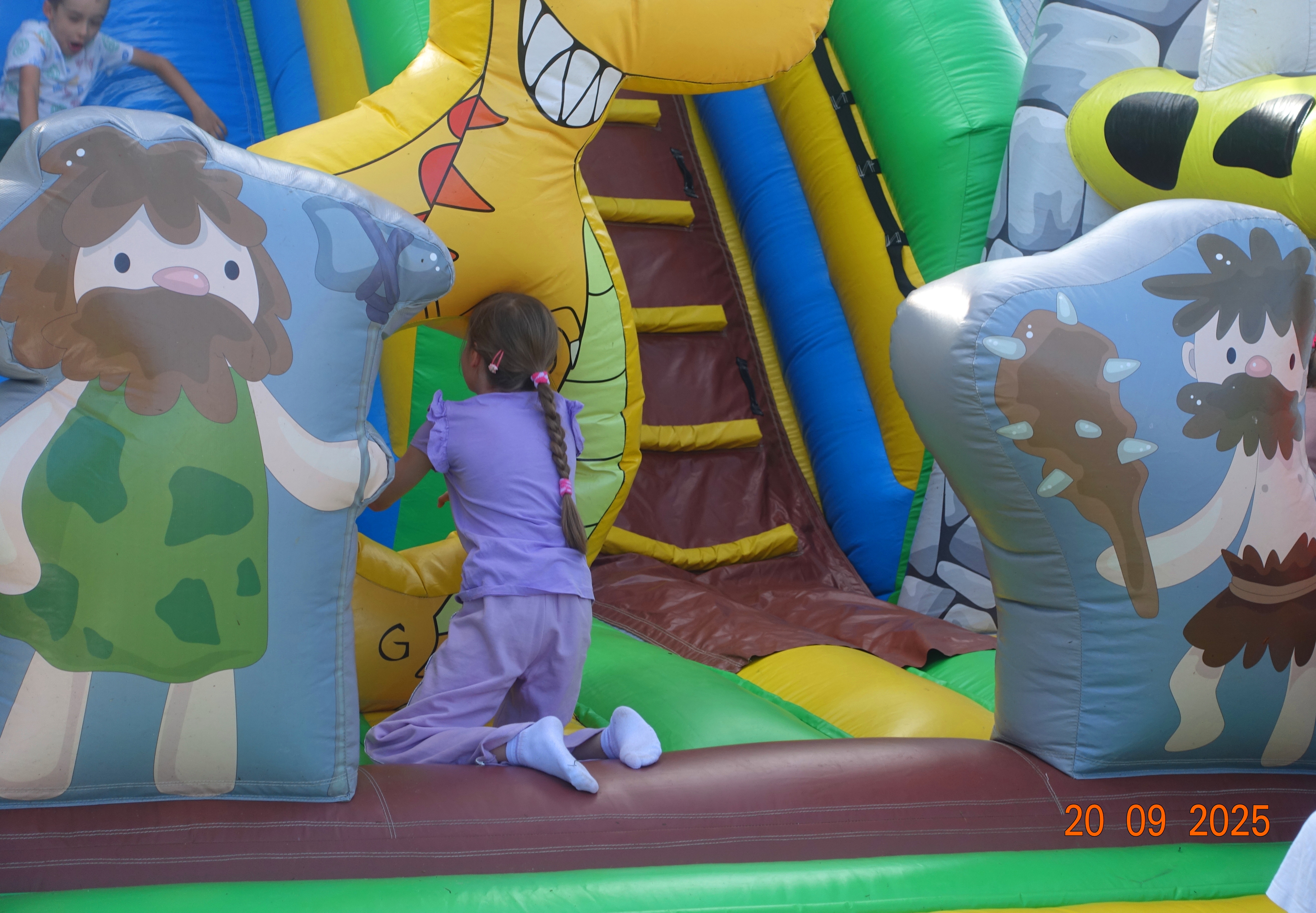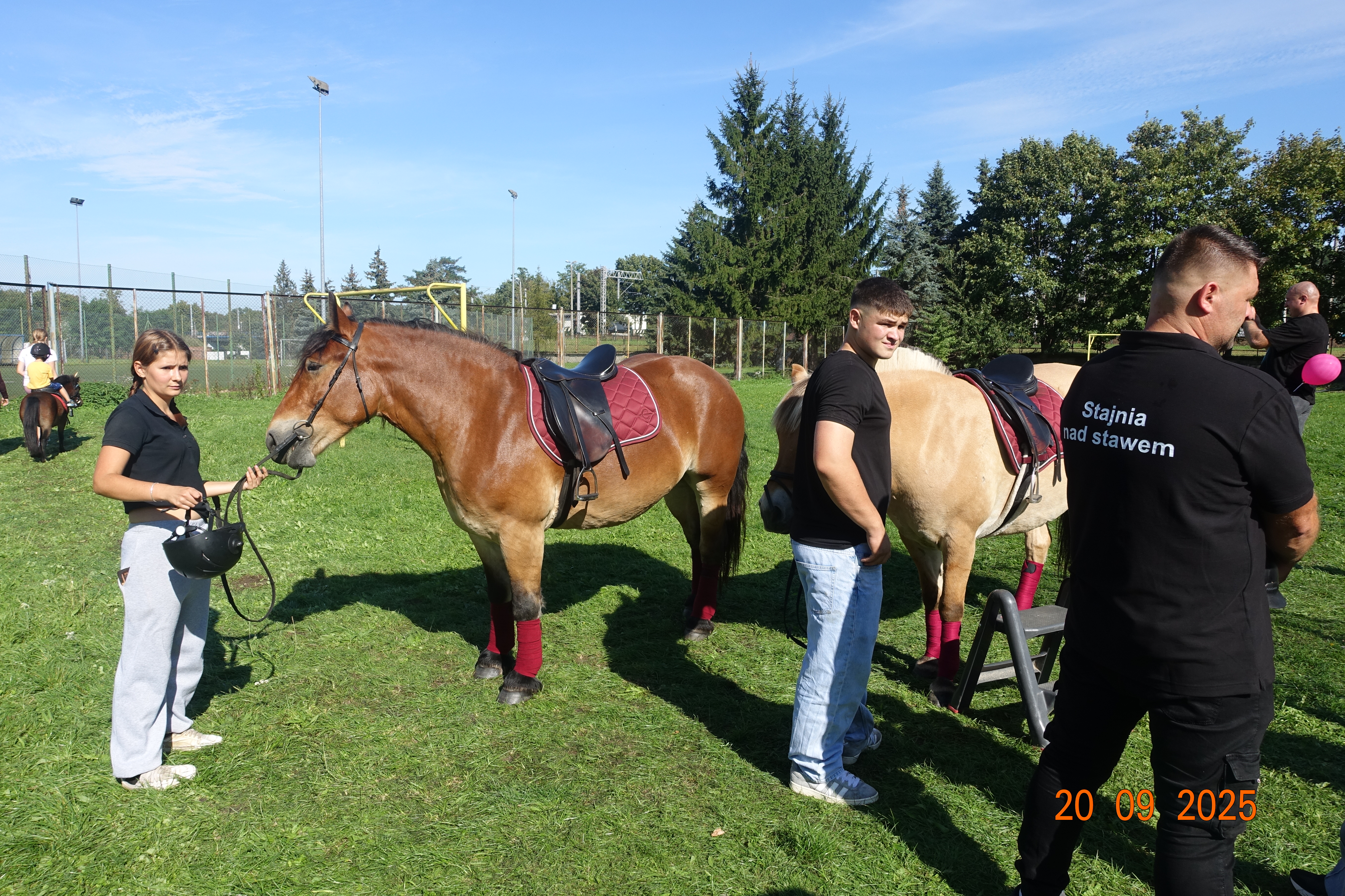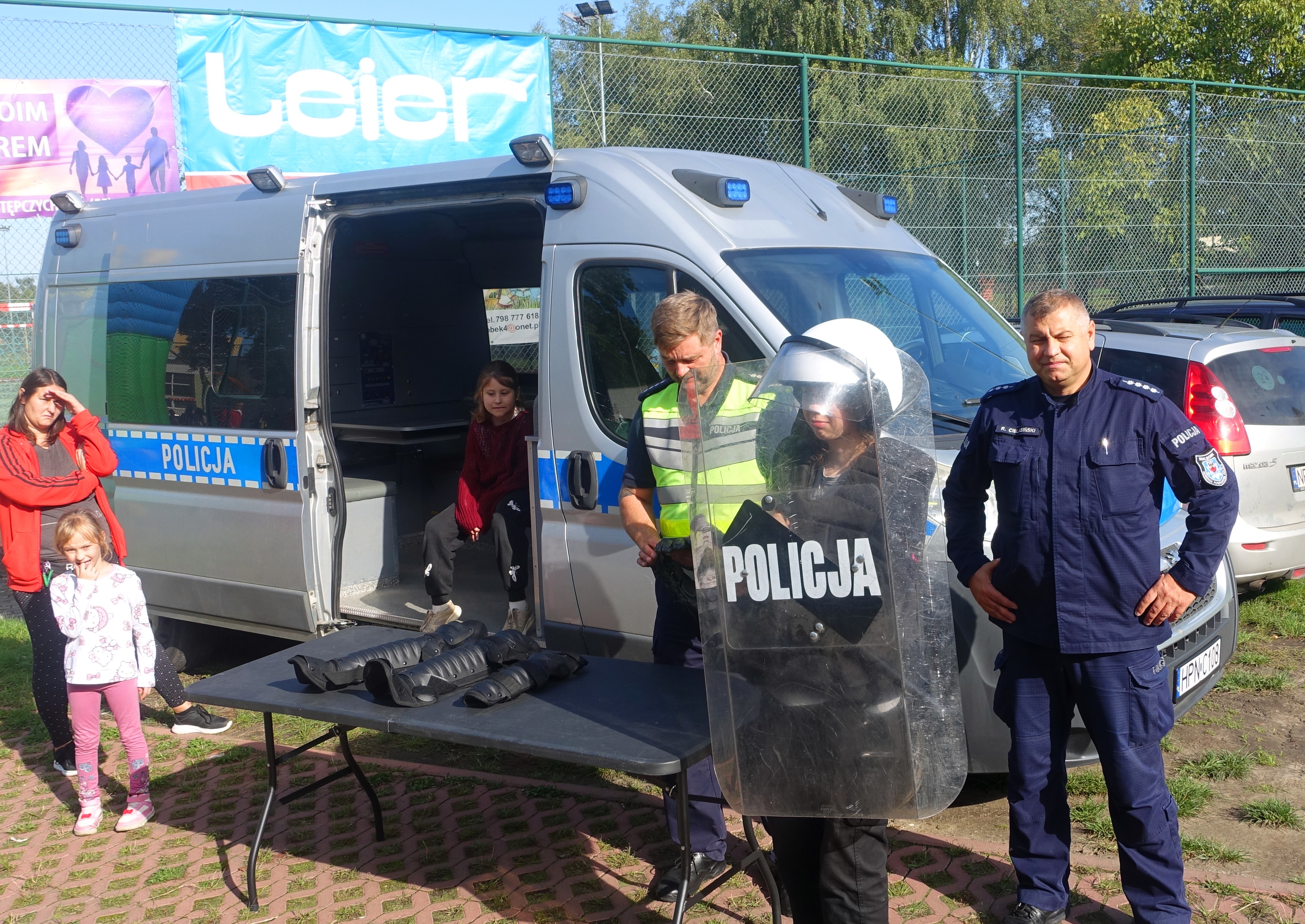 W między czasie rozpoczęły się towarzyskie spotkania na korytarzach i ,,przy dębie’’. Dla zgłodniałych na pikniku czekały różnorodne stoiska, począwszy od kiełbaski z grilla, gofrów, popcornu, lodów, a skończywszy na pajdzie ze smalczykiem. Dla smakoszy słodkości – były do wyboru przepyszne domowe ciasta i inne wypieki. Nie zabrakło i malborskich służb mundurowych /policji oraz straży pożarnej/, za kilka złociszy chętni mogli dosiąść wierzchowca albo poturlać się na ,,dmuchańcach’’ czy pobawić się na boisku wielkimi, kolorowymi klockami. Do kolejnych atrakcji należała na pewno fotobudka i możliwość zaplatania warkoczyków. Chętni mogli wpisać się do Księgi pamiątkowej. Festyn był też okazją, by wesprzeć zbiórkę na figurkę ,,dziewiątkowego’’ Marianka. A loteria szkolna temu sprzyjała.