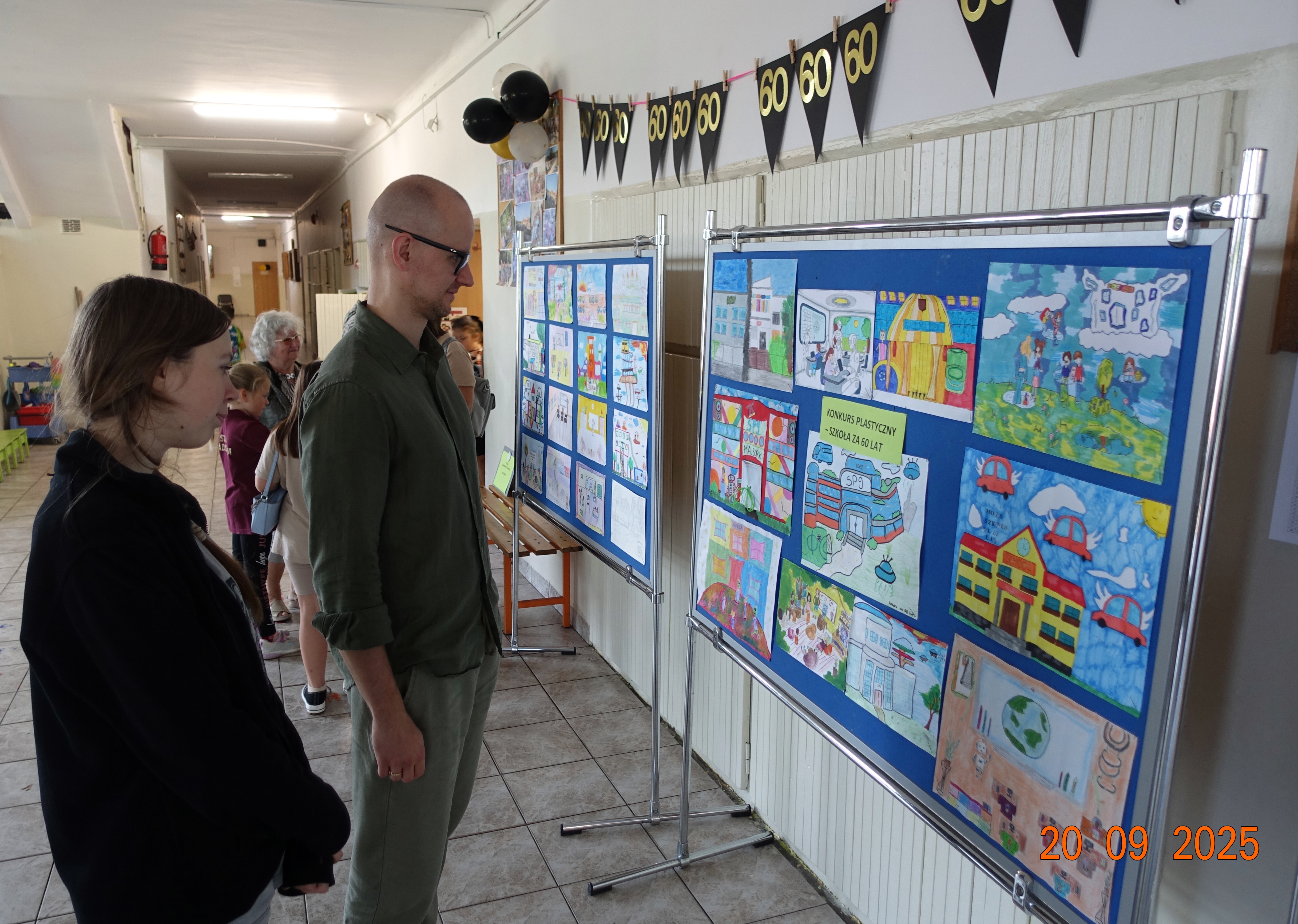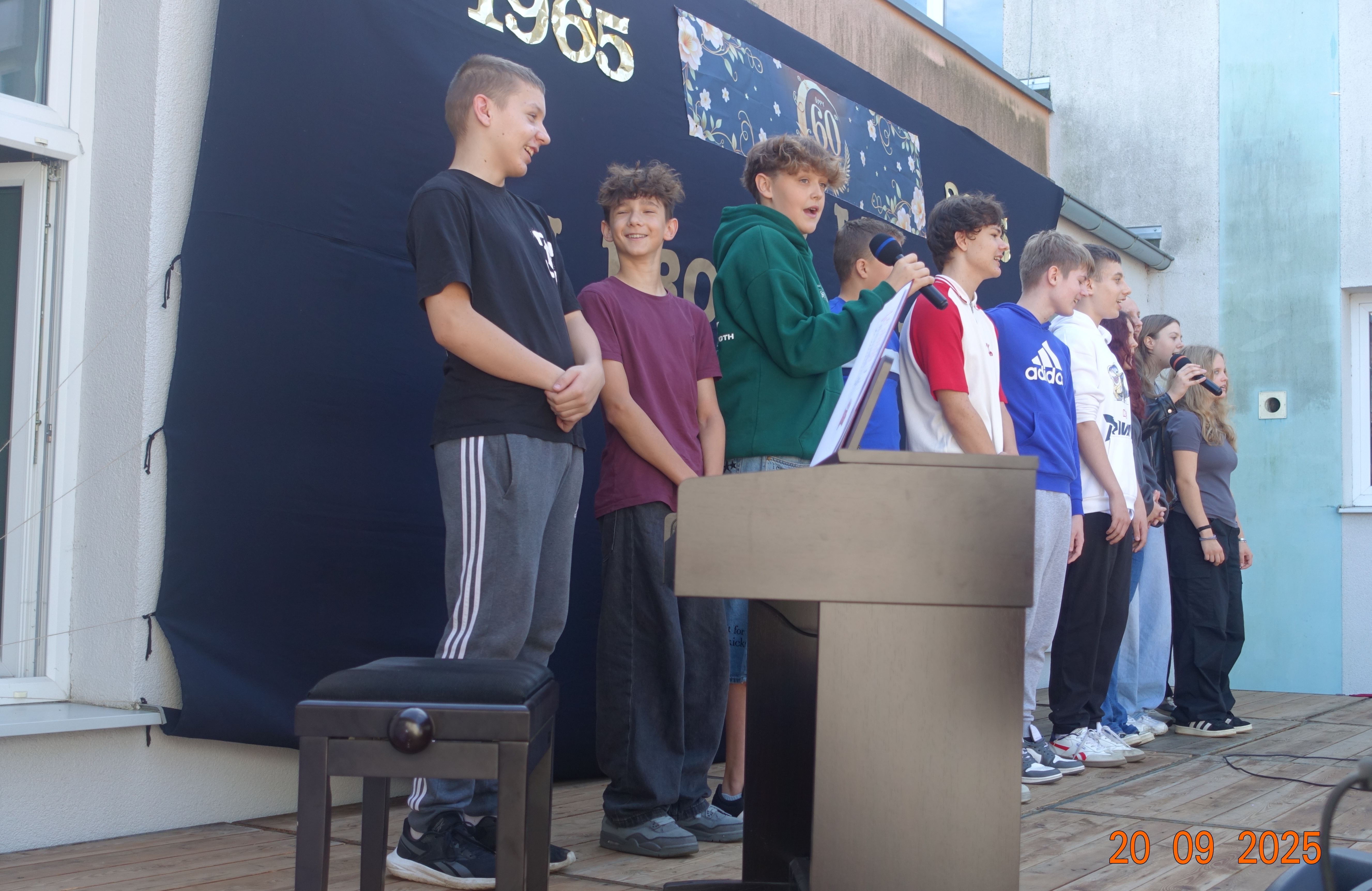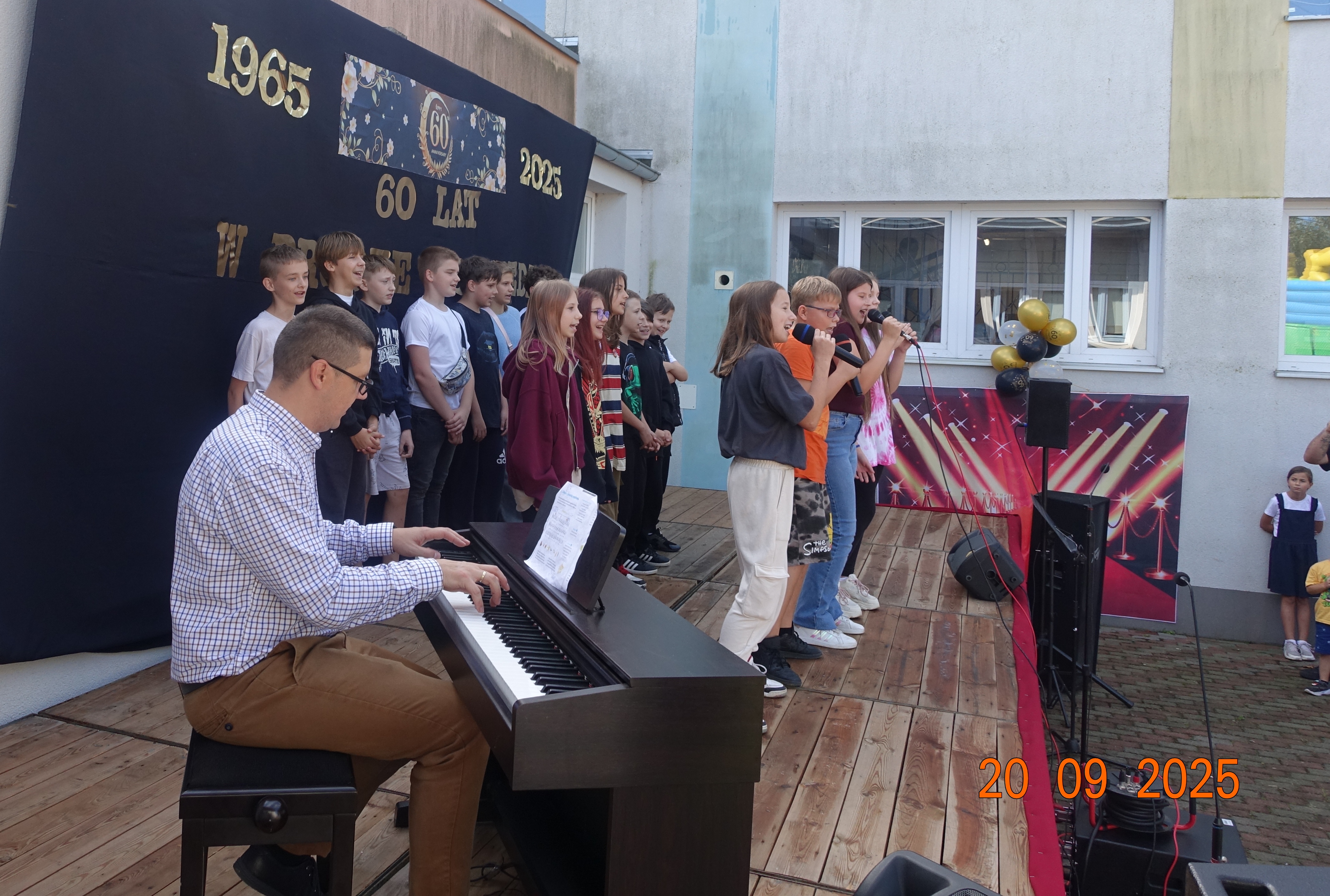 20 września /sobota/ 2025 roku w SP 9 odbyła się niecodzienna uroczystość, były to obchody 60-lecia istnienia naszej Szkoły Podstawowej, zwanej popularnie ,,dziewiątką’’. Gości z wielką radością powitał dyrektor Paweł Guzow, który w krótkim wystąpieniu podkreślił rangę jubileuszu. Następnie od godziny 09:00 rozpoczęły się główne uroczystości związane z jubileuszem 60-lecia. Na wydarzenie te przybyło wiele osób związanych od dawna z placówką: rodzice, absolwenci, emerytowani pracownicy szkoły. Otrzymaliśmy też, wiele dobrych życzeń. Rozmach z jakim przygotowali tę uroczystość nauczyciele szkolni z pomocą rodziców, świadczył o ogromnej pracy i zaangażowaniu w ten niecodzienny projekt. Sama dekoracja korytarzy szkolnych i klas nawiązywała do wydarzeń z całej historii życia ,,dziewiątki’’. Każdy uczestnik dzisiejszego wydarzenia, mógł wrócić do wspomnień oglądając fotografie czy kroniki szkolne specjalnie przygotowane na ten dzień.