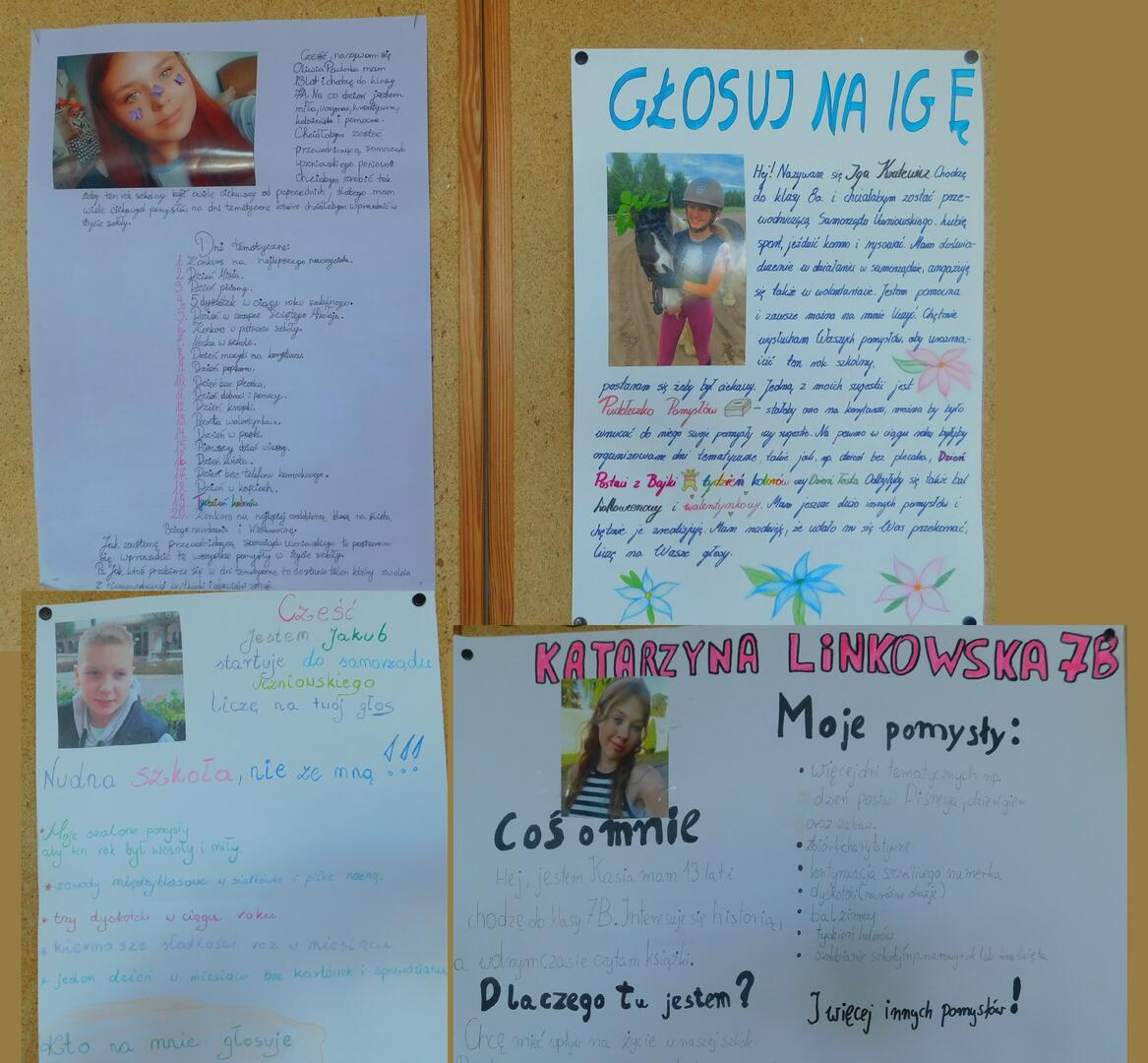 Pani Oliwia Duszyńska – opiekun szkolnego samorządu przypomniała uczniom o nadchodzących wyborach do SU /30 września/. Przedstawiła, też kandydatów na przewodniczącego SU. W tym roku kandydują: Iga Kratewicz, Jakub Kruczkowski, Oliwia Pawlonka i Katarzyna Linkowska. Kandydaci ci, zaprezentowali podczas apelu swój program wyborczy.