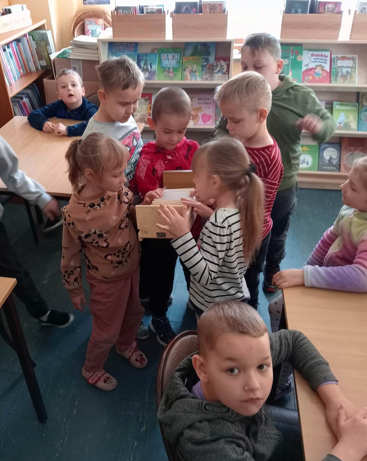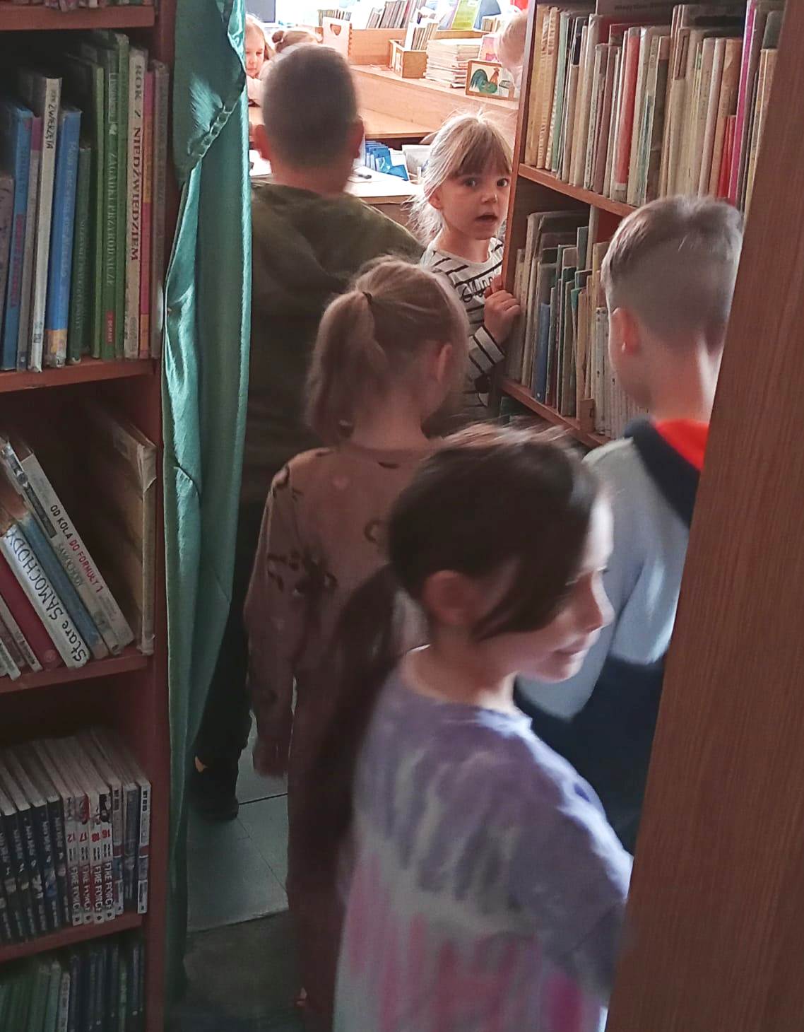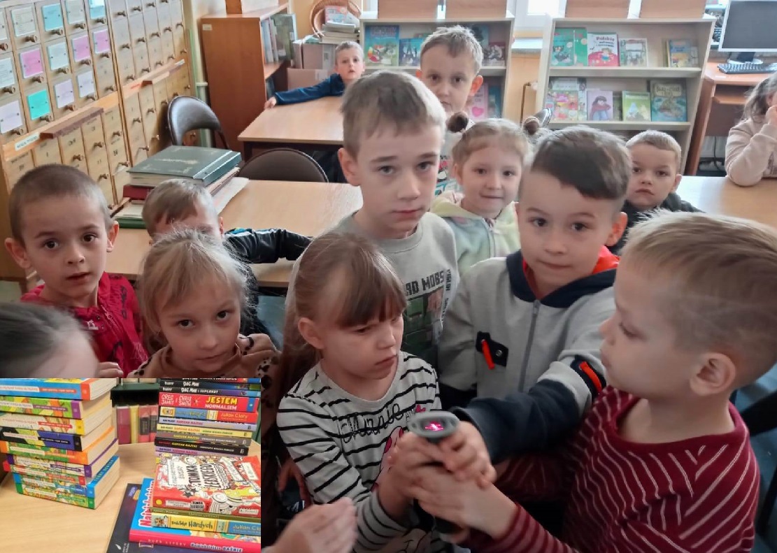 Dnia 19 maja b.r. nasze ,,dziewiątkowe’’ przedszkolaki z ciekawością wkroczyły do szkolnej biblioteki. Była to pierwsza wizyta pośród tylu regałów z książkami. Przedszkolaki dowiedziały się, jak się stać czytelnikiem biblioteki oraz jak należy się w niej zachować. Pan bibliotekarz pokazał dzieciom kartę czytelnika oraz zapoznał z zasadami wypożyczania książek. W trakcie pobytu w bibliotece przedszkolaki z wielkim zainteresowaniem oglądały książki znajdujące się na półkach w czytelni i magazynie ale szczególnie zainteresował ich czytnik książek, maszyna do foliowania i szufladki z kartami tytułowymi. Spotkanie odbywało się w miłej, pełnej uśmiechów i ciekawości atmosferze.