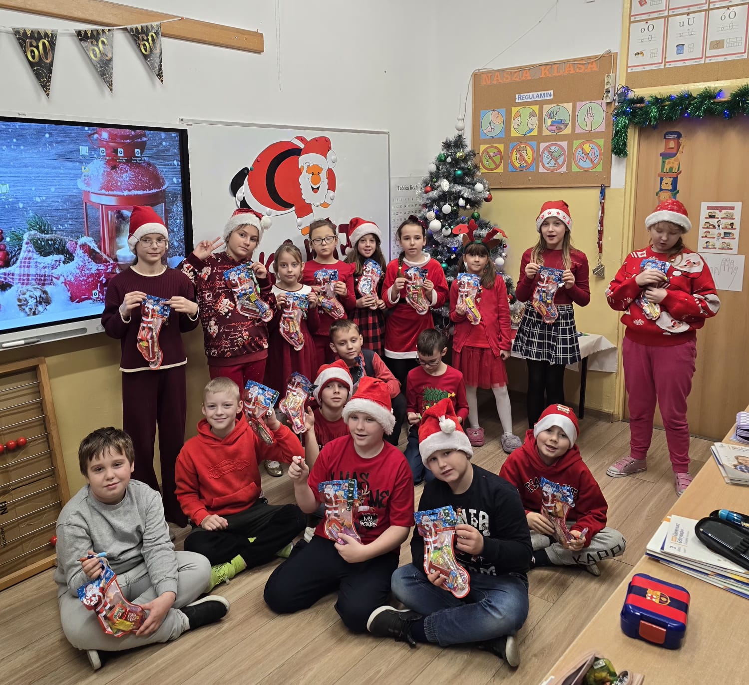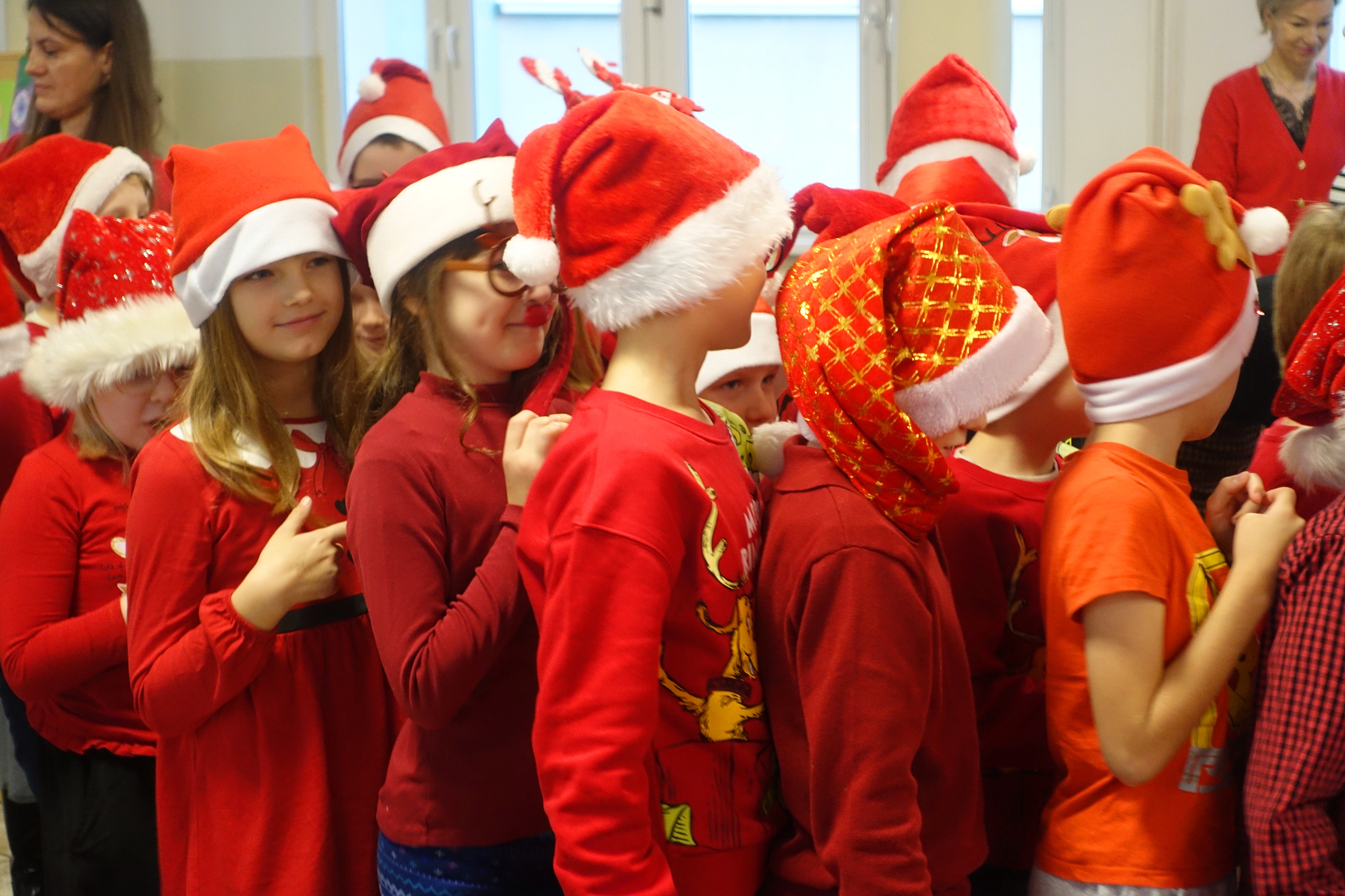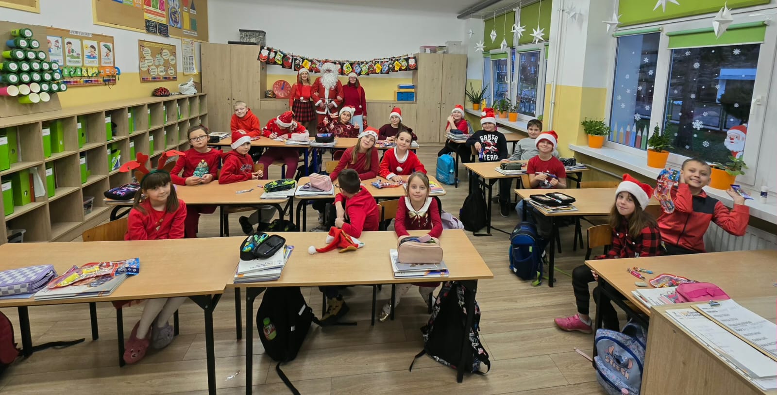 Dzisiaj dla wielu uczniów – najmłodszych dzieci, ,,Mikołajki’’ stanowią jeden z najwspanialszych dni w roku szkolnym. Uczniowie z klas 0-III z niecierpliwością oczekiwali tego dnia. Nauczyli się śpiewać piosenki dla Mikołaja, udekorowali klasy, a także ubrali się w czerwone kolory i mikołajowe czapki. Wszystkim dopisywały świetne humory gdy zobaczyli na holu szkolnym Mikołaja z prezentami. Ho, ho , ho!!!