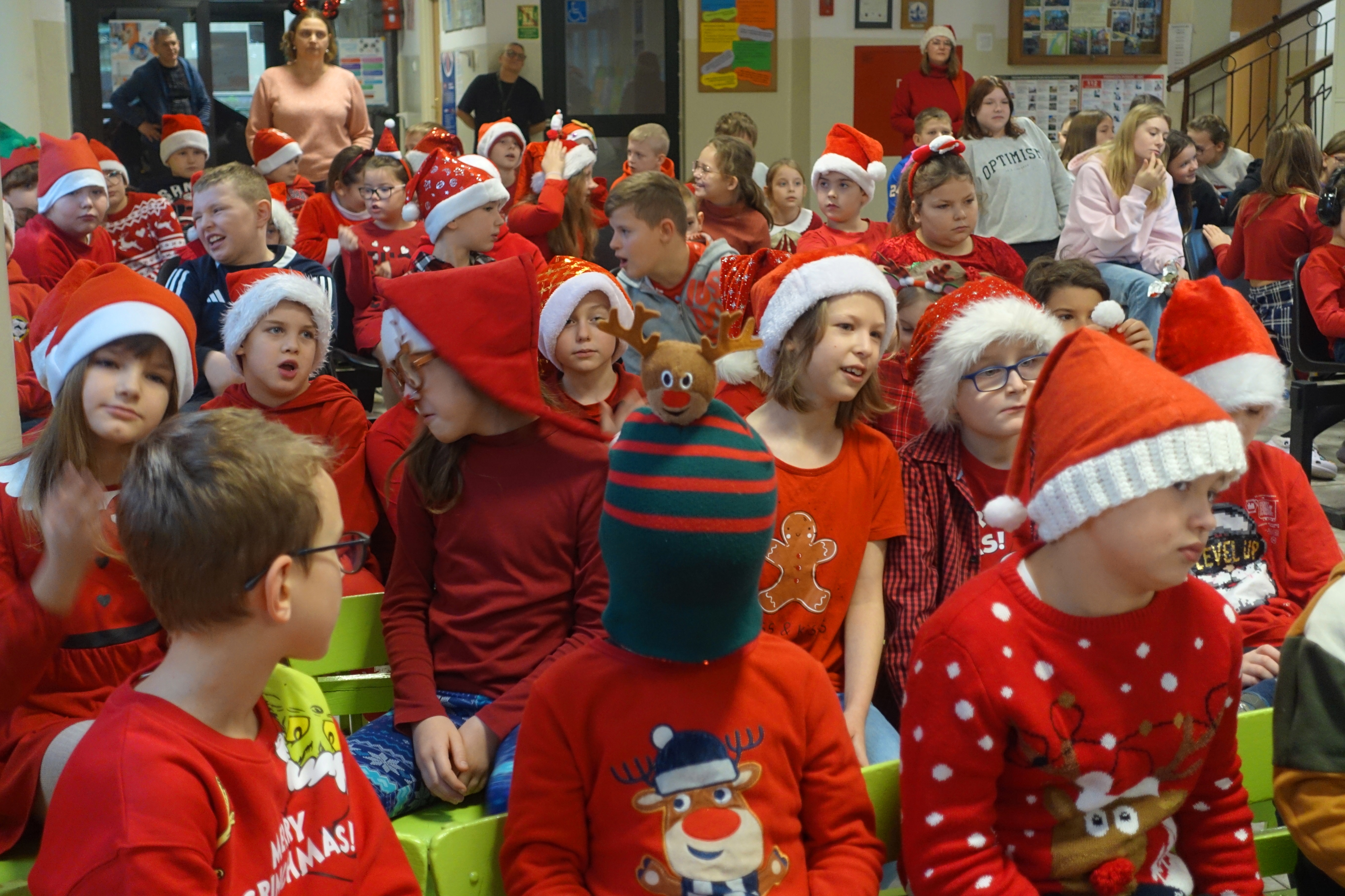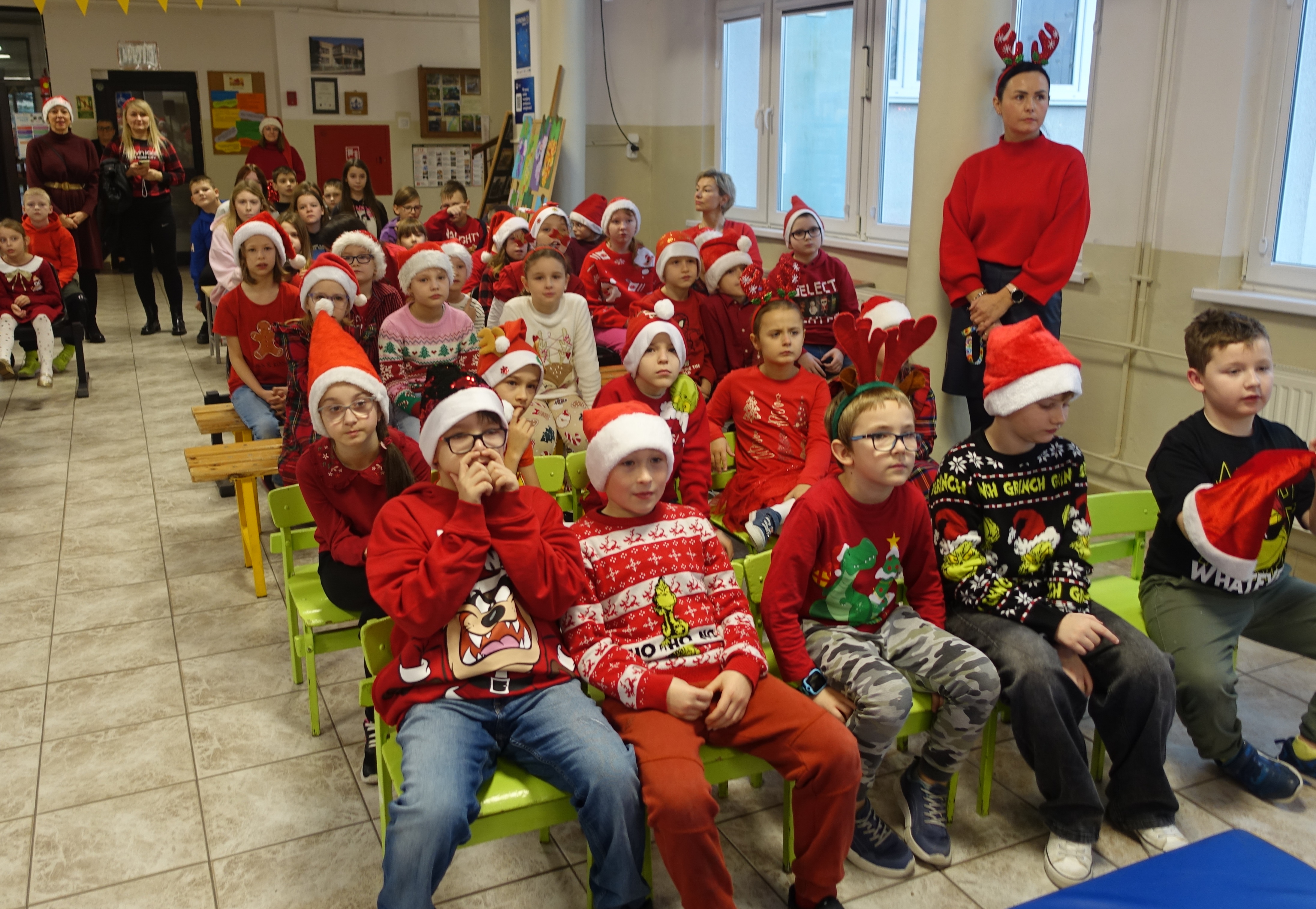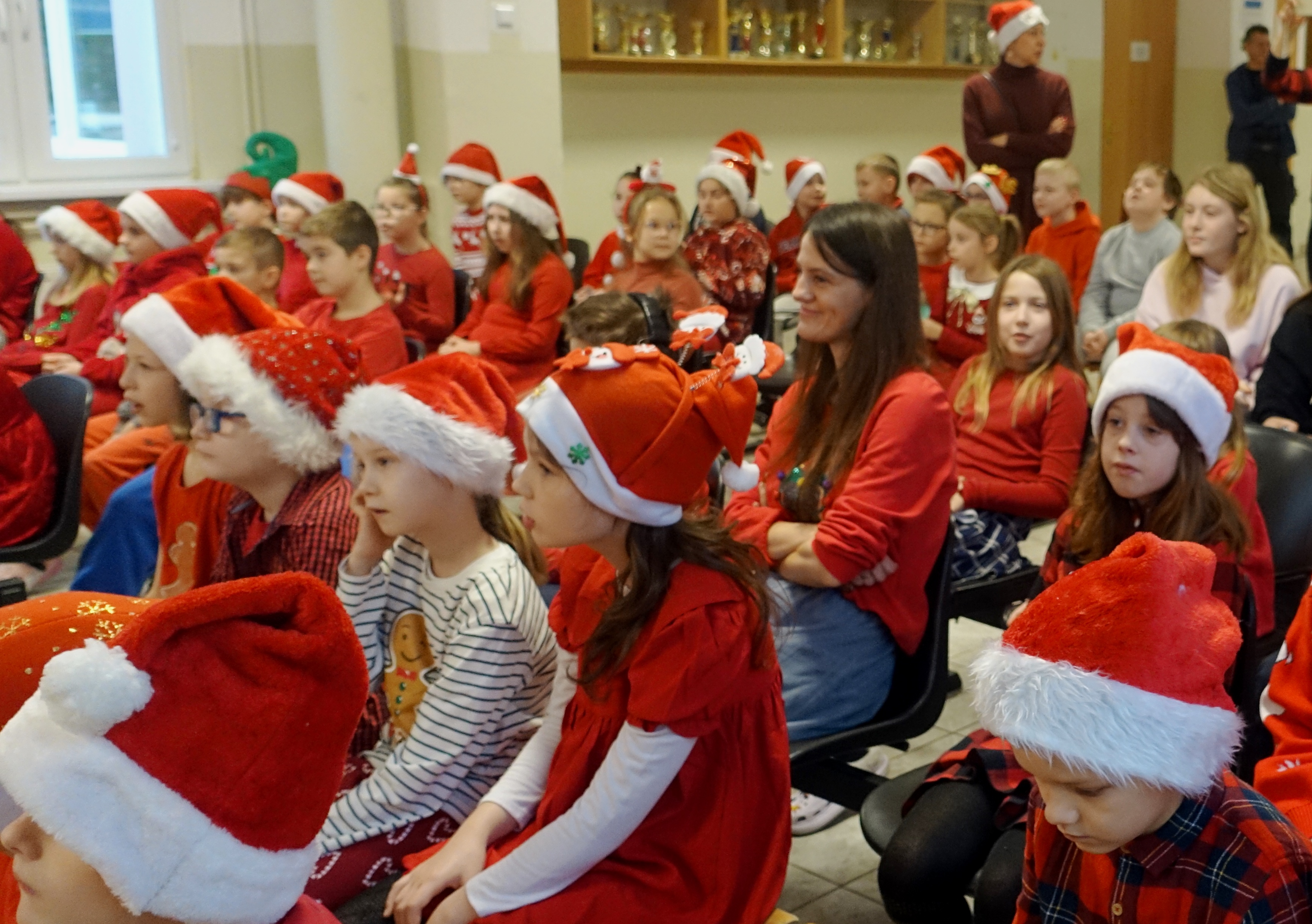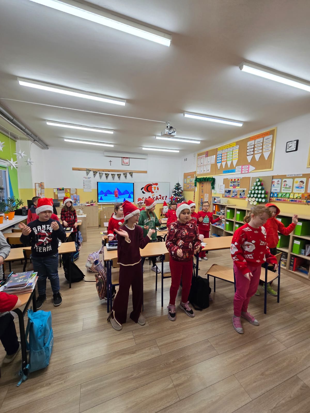 Dzisiaj dla wielu uczniów – najmłodszych dzieci, ,,Mikołajki’’ stanowią jeden z najwspanialszych dni w roku szkolnym. Uczniowie z klas 0-III z niecierpliwością oczekiwali tego dnia. Nauczyli się śpiewać piosenki dla Mikołaja, udekorowali klasy, a także ubrali się w czerwone kolory i mikołajowe czapki. Wszystkim dopisywały świetne humory gdy zobaczyli na holu szkolnym Mikołaja z prezentami. Ho, ho , ho!!!