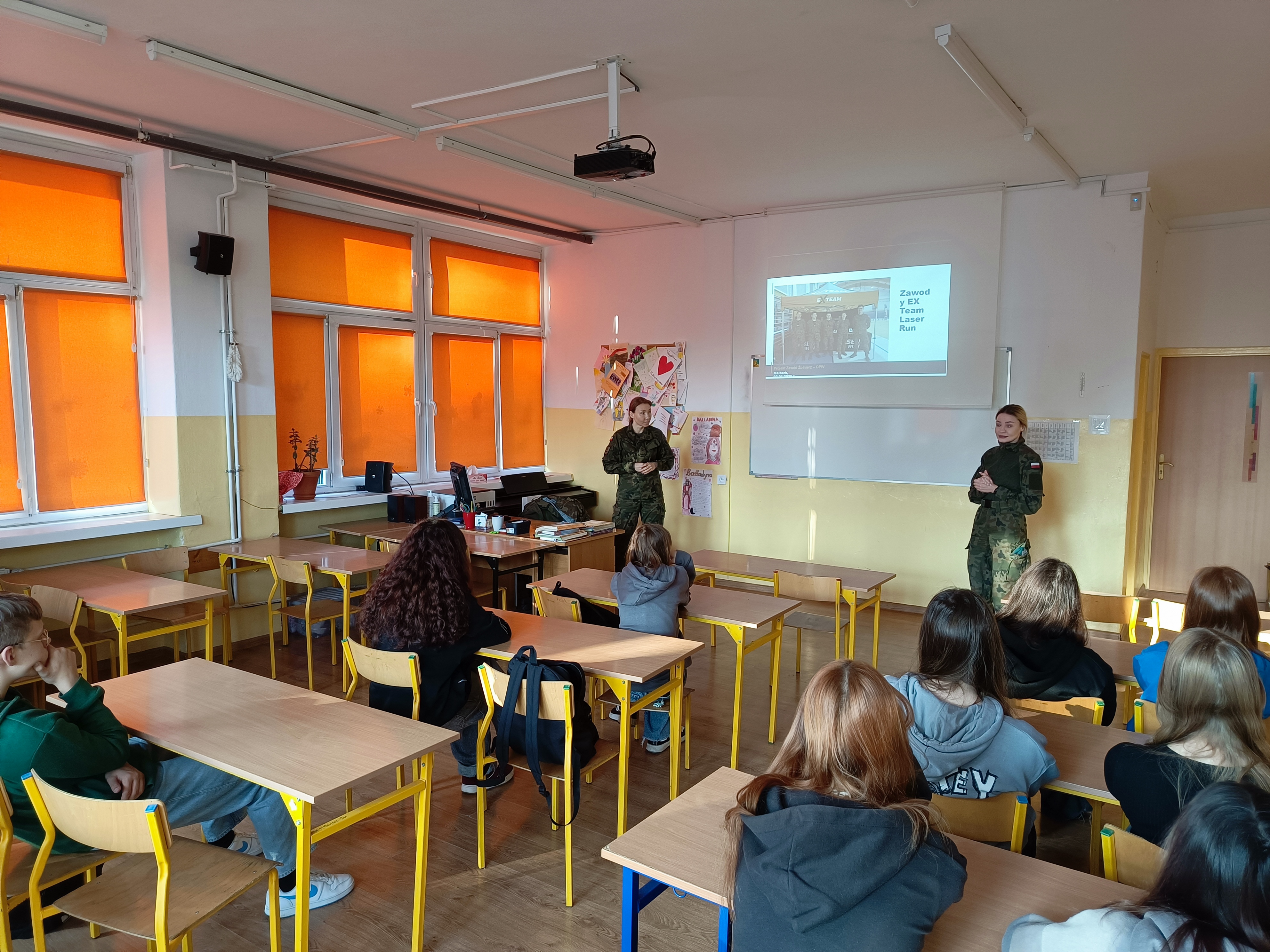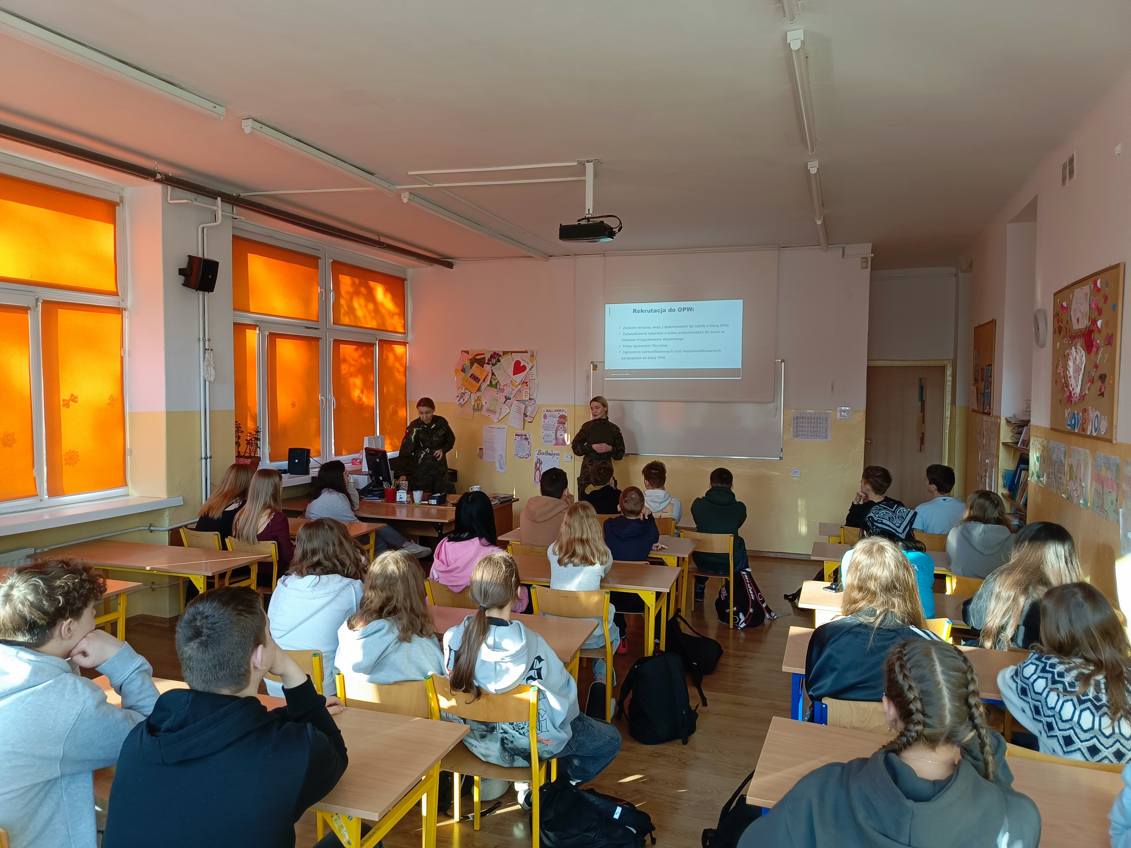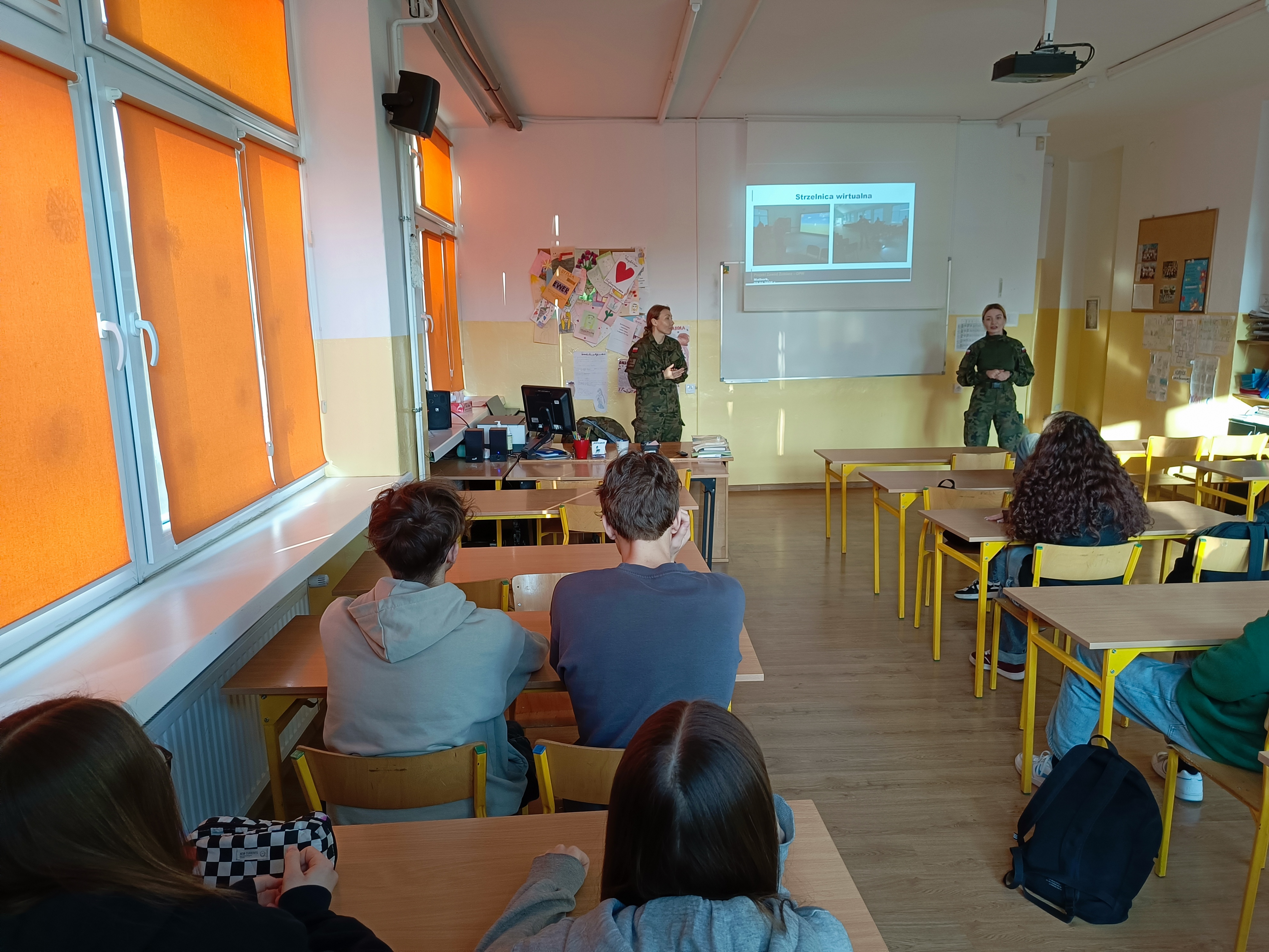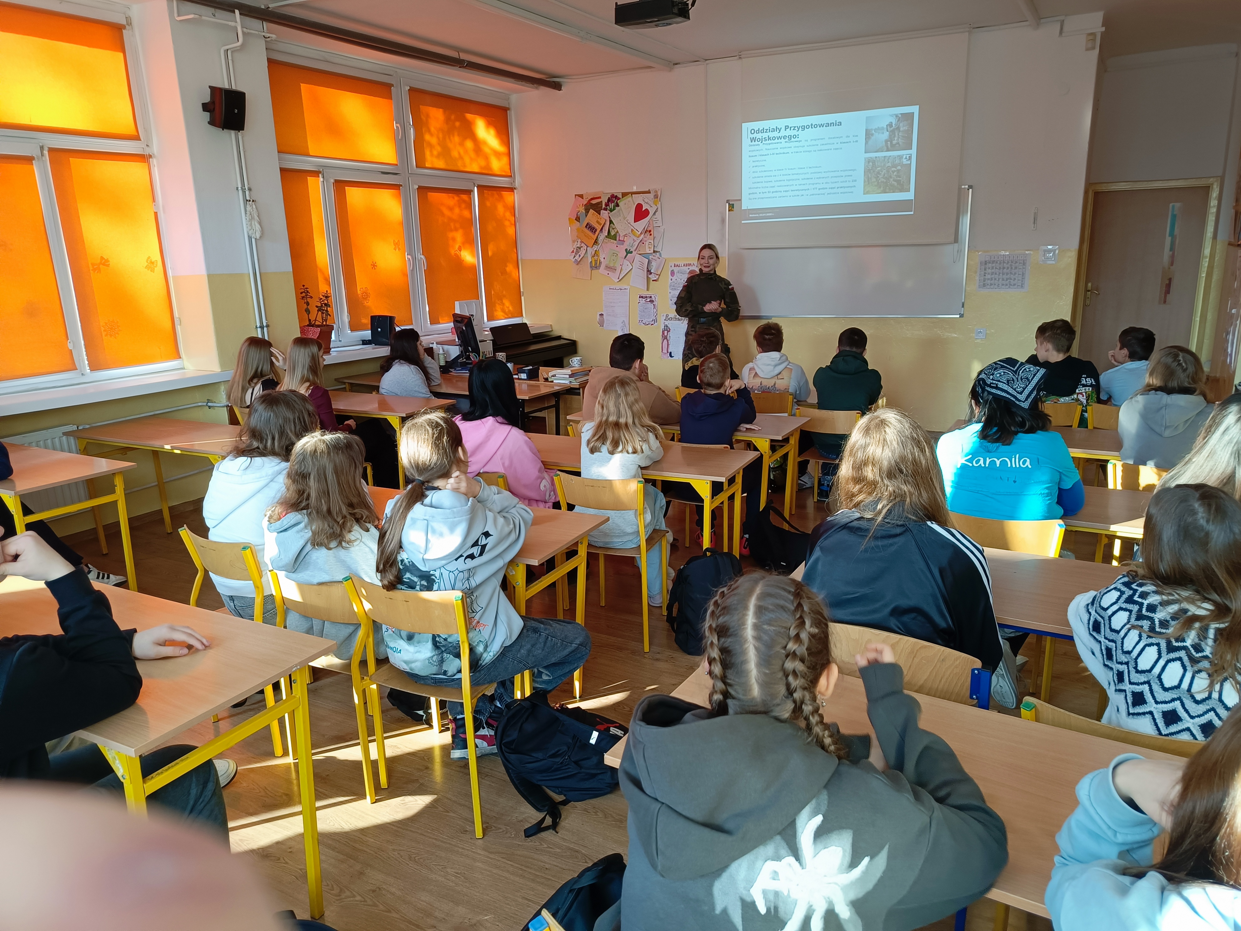 W dniu dzisiejszym (10.02.25) gościliśmy w murach naszej szkoły przedstawicieli Wojskowego Centrum Rekrutacji w Malborku. Uczniowie klas ósmych mogli zapoznać się z ofertą oddziałów przygotowania wojskowego, wymaganiami rekrutacyjnymi oraz poznać specyfikę szkół wojskowych. Każdy uczeń mógł uzyskać odpowiedź na zadane pytanie. Prezentacja odbyła się na przedmiocie Edukacja dla Bezpieczeństwa, pod okiem p. Łukasza Rosiak.