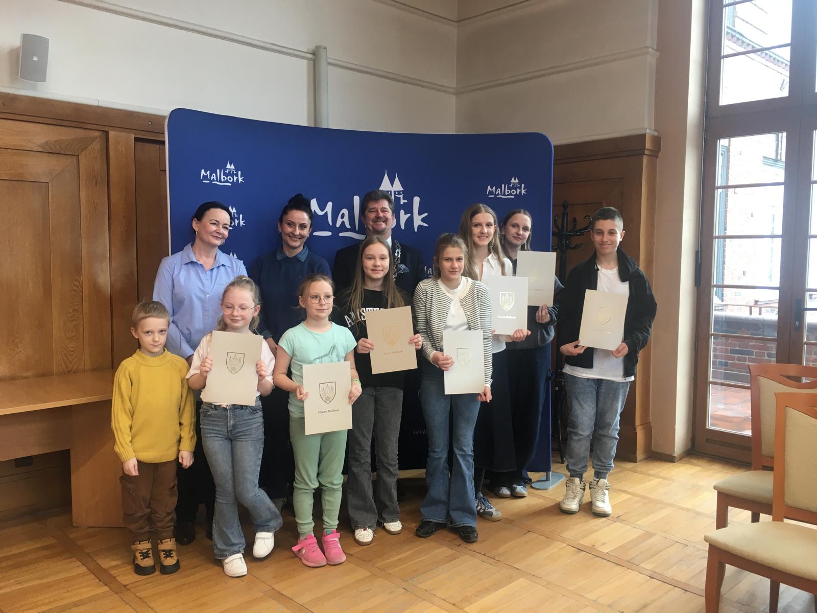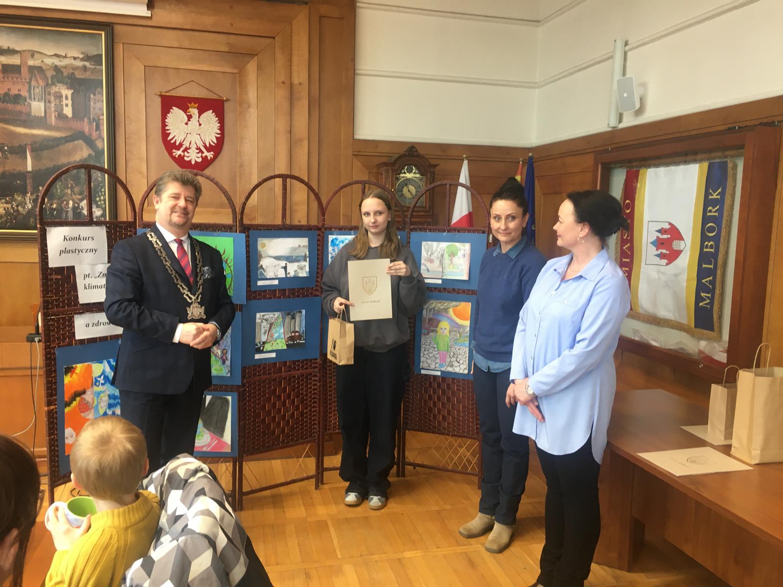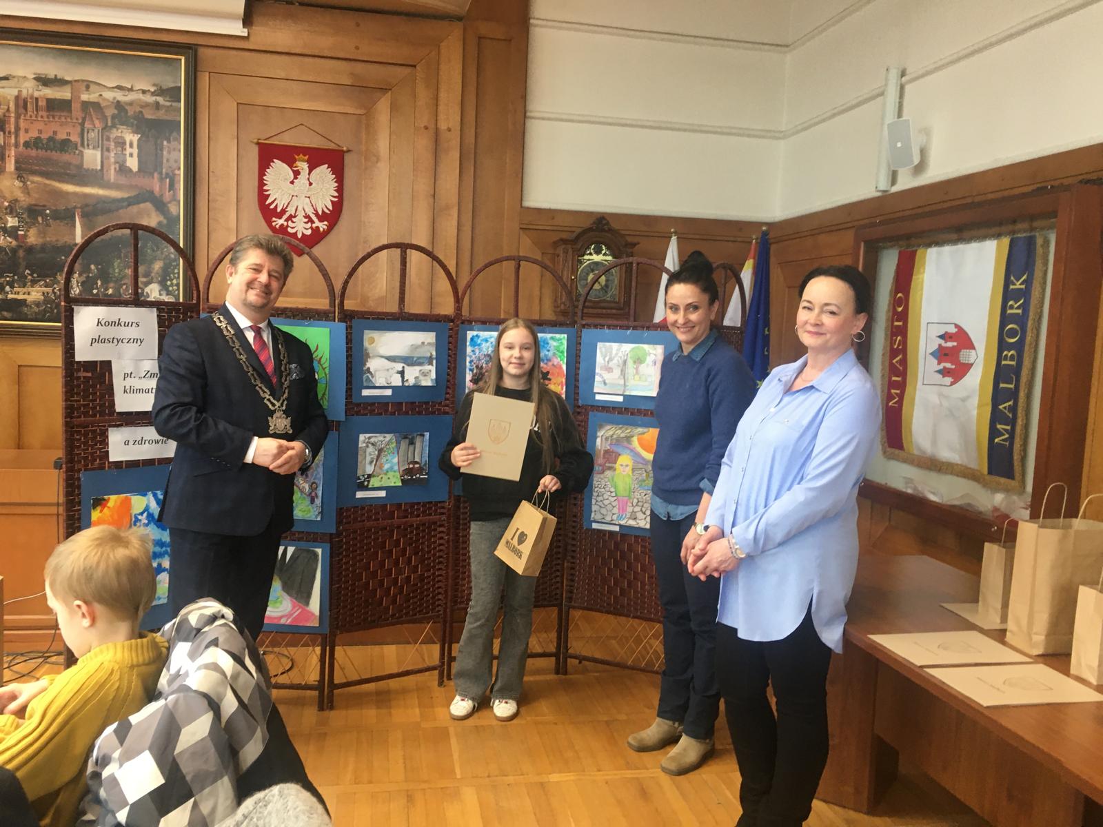 W dniu 7 kwietnia 2025 r., w ramach obchodów Światowego Dnia Zdrowia, w Sali Posiedzeń Urzędu Miasta Malborka odbyło się uroczyste wręczenie nagród w konkursie plastycznym „Zmiany klimatyczne a zdrowie”. Konkurs, skierowany był do uczniów klas I–IV oraz V–VIII szkół podstawowych z terenu miasta, miał on na celu zwiększenie świadomości dzieci i młodzieży na temat wpływu zmian klimatycznych na zdrowie człowieka. W konkursie wielkie sukcesy osiągneli nasi podopieczni, [ na konurs wpłyneło 89 prac], którzy zajęli wszystkie trzy miejsca w kategorii klas klas V–VIII. Wielkie brawa dla: Igi Kratewicz ,Oliwii Barwinek i Julii Borzechowskiej!