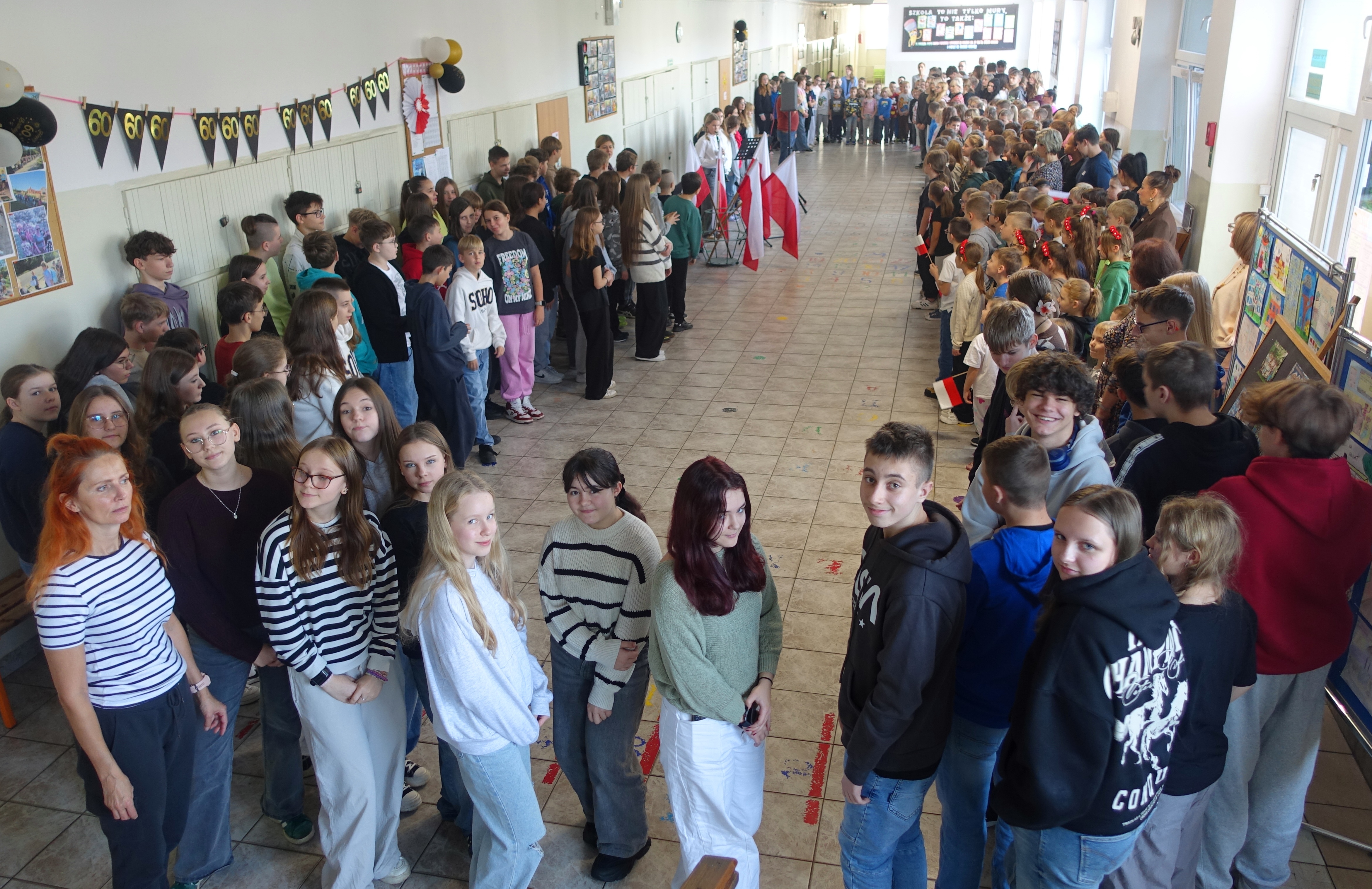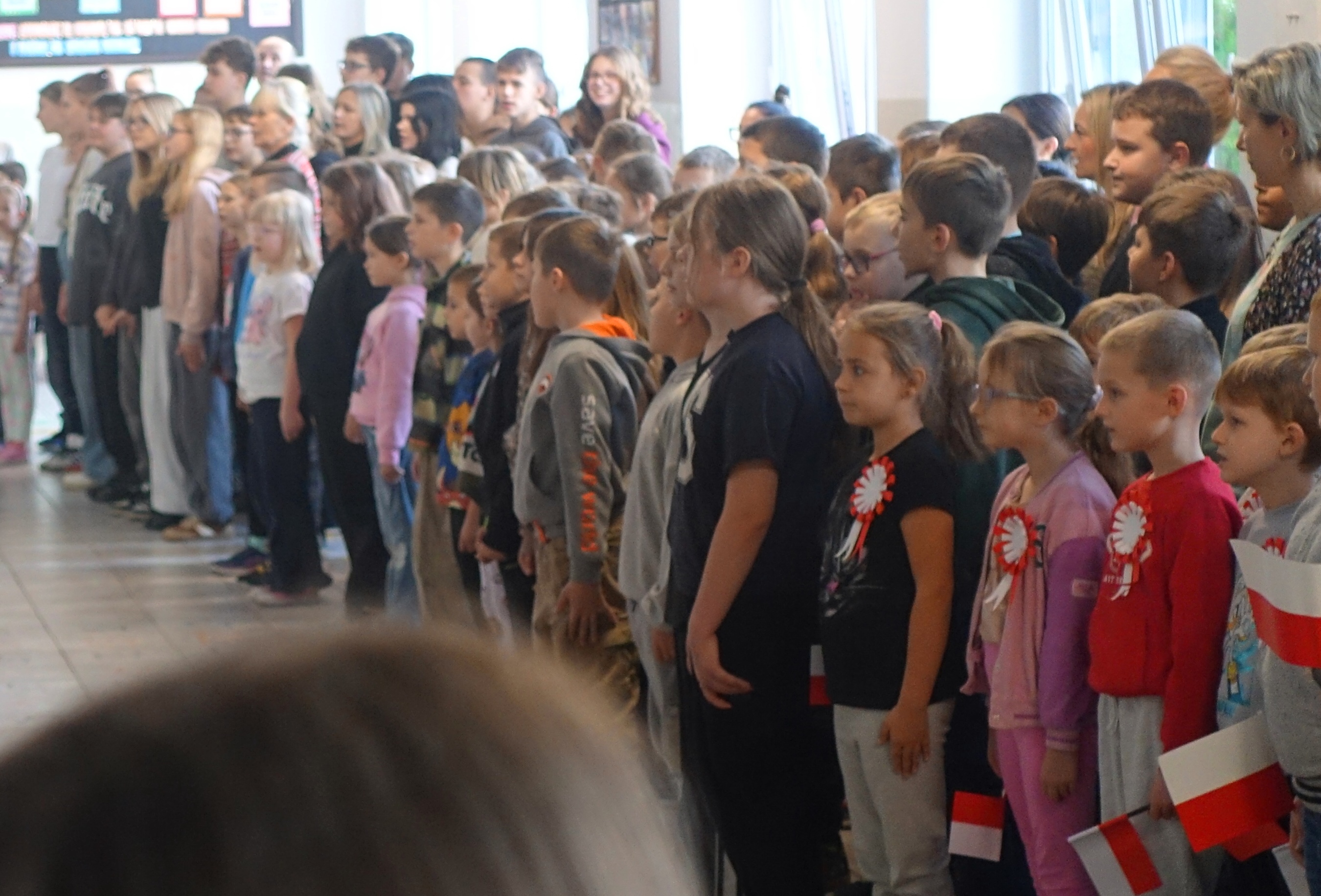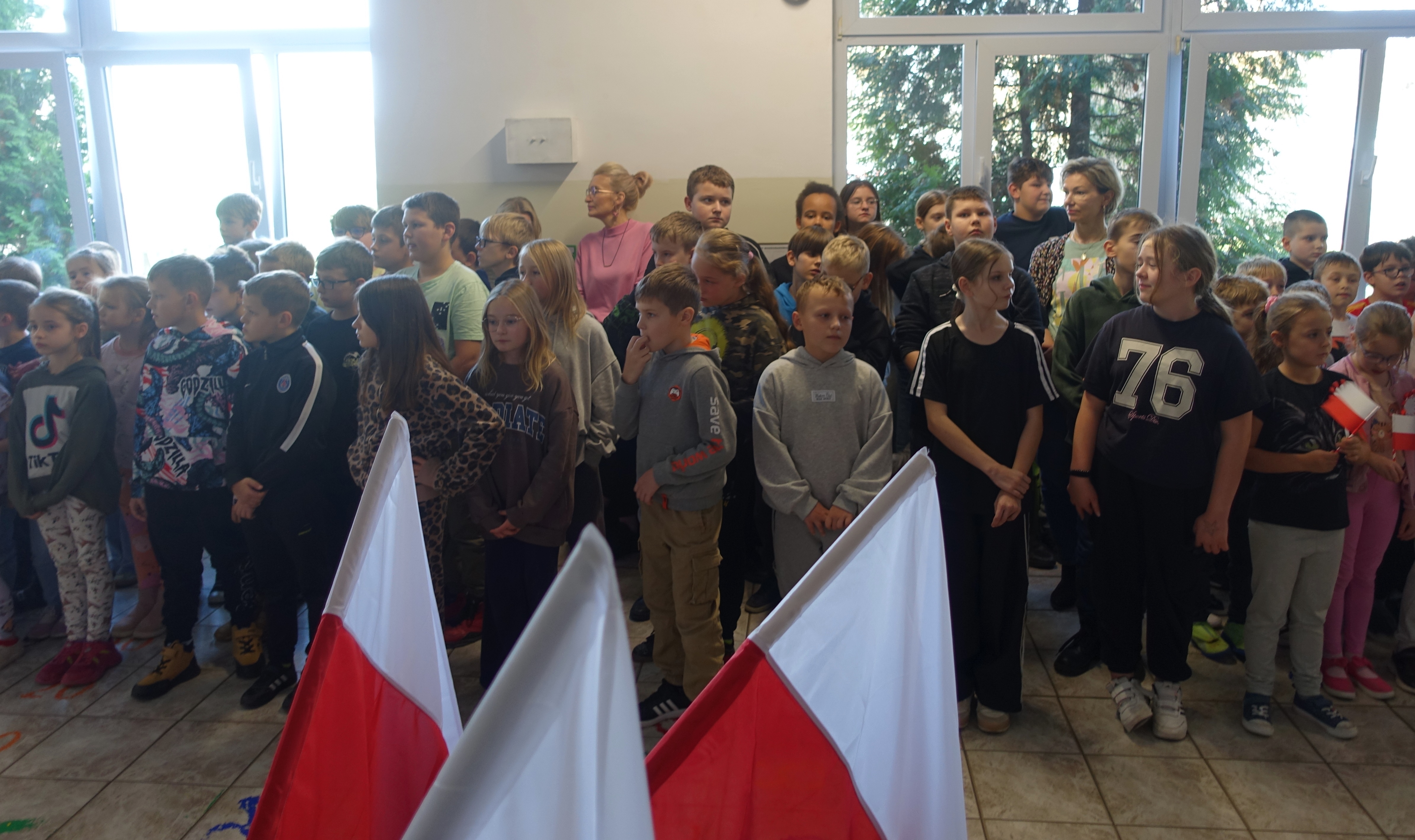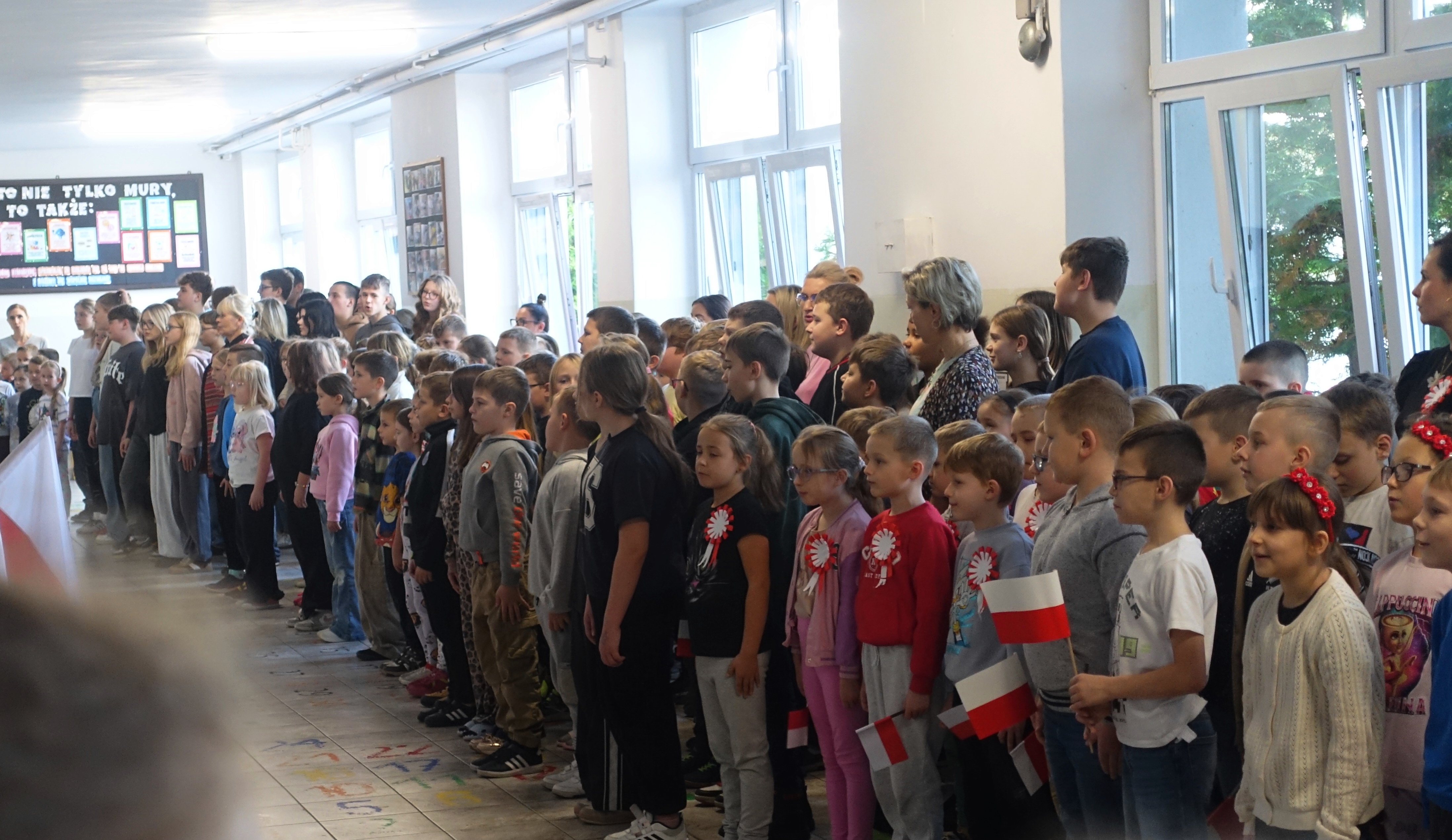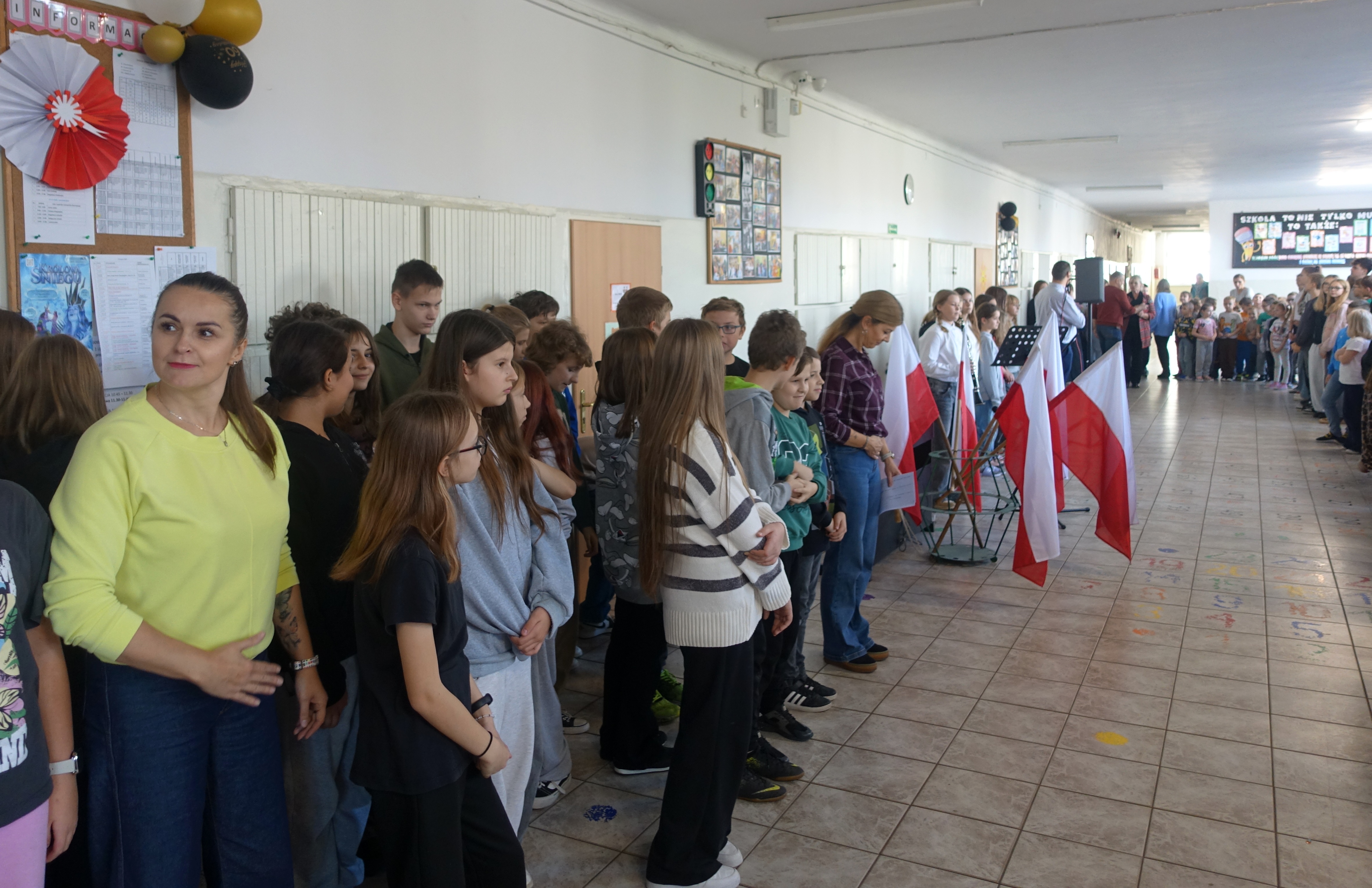 Dzisiaj nasza szkoła wzięła udział w akcji „Szkoła do hymnu” zainicjowanej przez Ministerstwo Edukacji Narodowej, zgodnie z tradycją obchodów Narodowego Święta Niepodległości. W ramach tej inicjatywy, w piątek 7 listopada 2025 roku, o symbolicznej godzinie 11:11, wszyscy uczniowie klas IV-VIII wraz z nauczycielami na korytarzu dolnym ,,dziewiątki’’ wspólnie odśpiewali hymn narodowy „Mazurek Dąbrowskiego”, aby uczcić 107 rocznicę odzyskania niepodległości przez Polskę. Akcję koordynował p. Łukasz Rosiak, akompaniujący na pianinie, w towarzystwie uczennicy grającej na klarnecie. Śpiewowowi wszystkich uczestników wydarzenia towarzyszył zespół ,,Canto''.