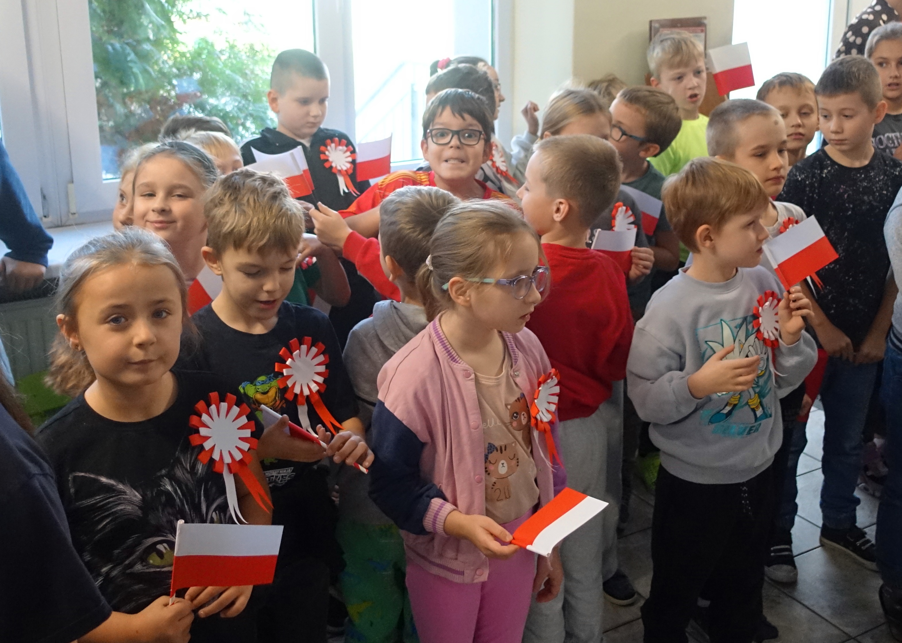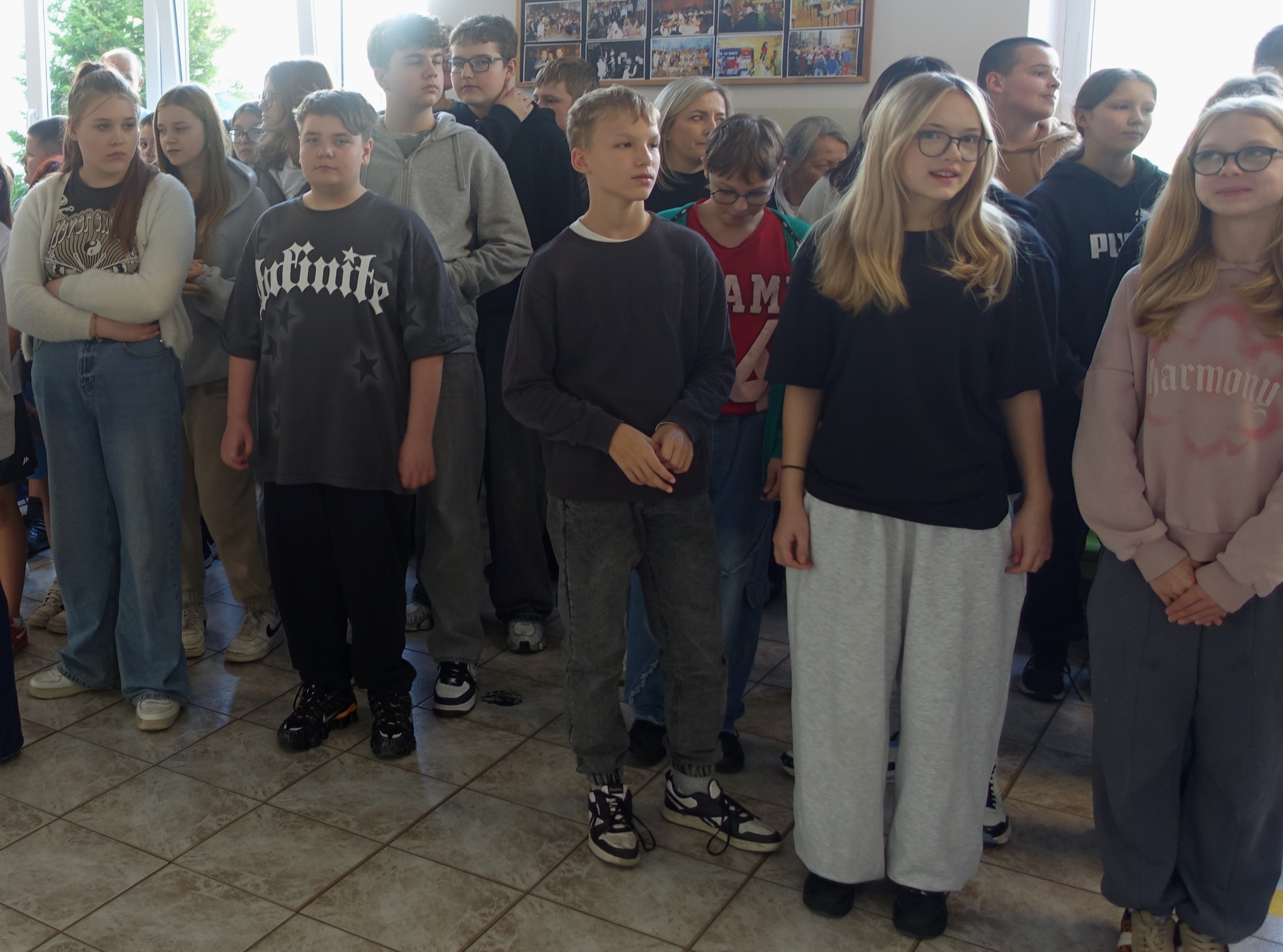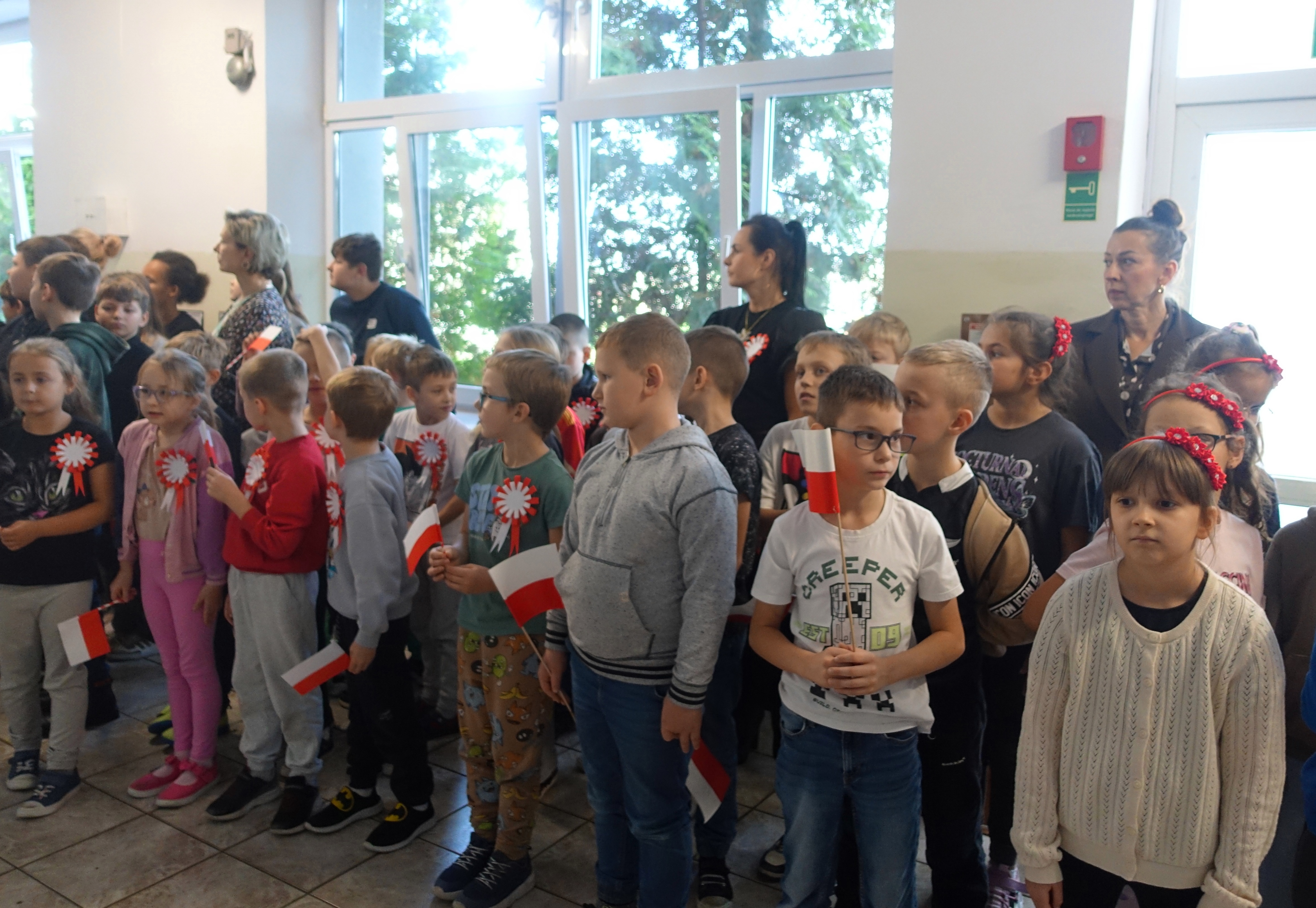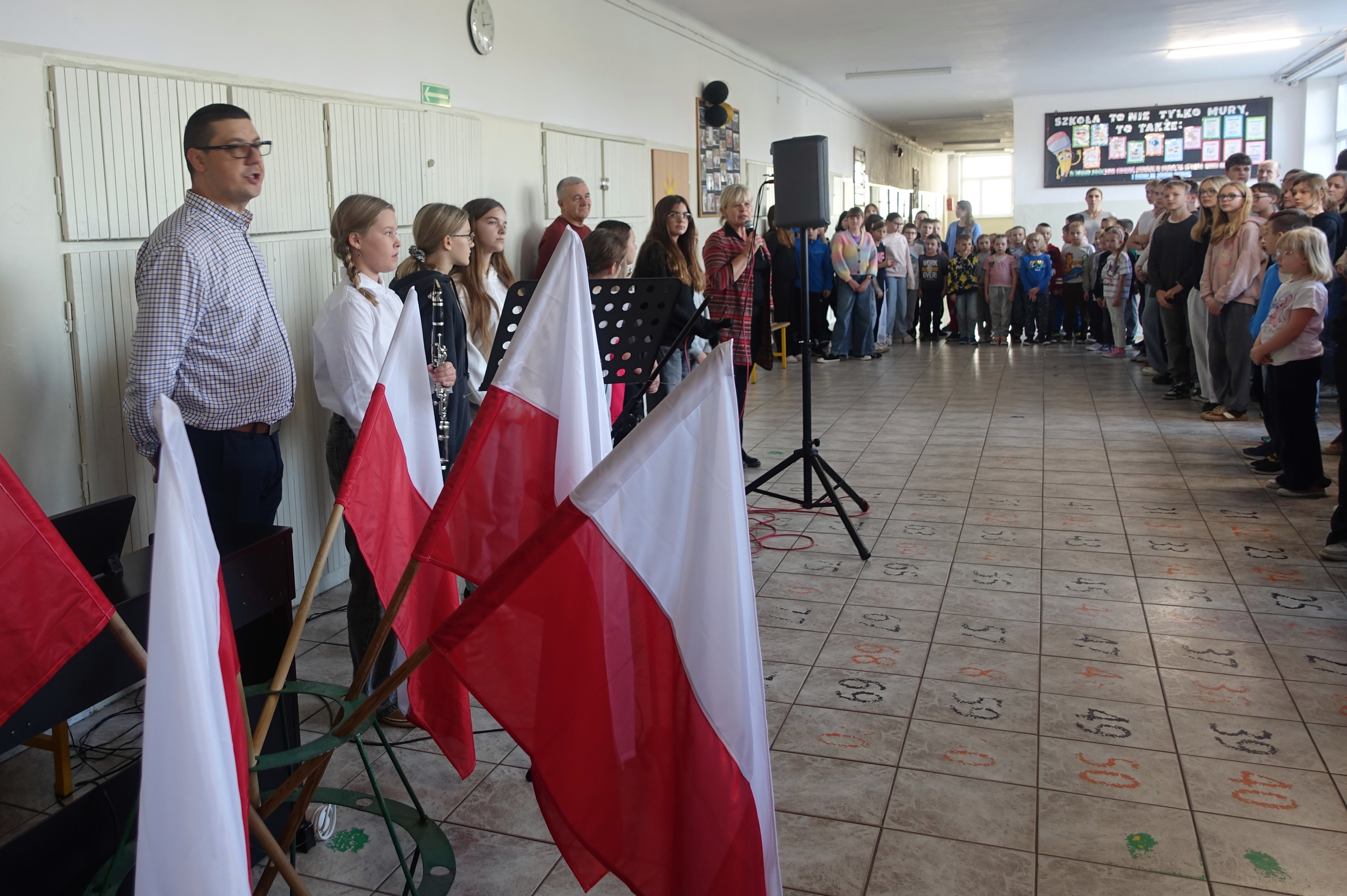 Dzisiaj nasza szkoła wzięła udział w akcji „Szkoła do hymnu” zainicjowanej przez Ministerstwo Edukacji Narodowej, zgodnie z tradycją obchodów Narodowego Święta Niepodległości. W ramach tej inicjatywy, w piątek 7 listopada 2025 roku, o symbolicznej godzinie 11:11, wszyscy uczniowie klas IV-VIII wraz z nauczycielami na korytarzu dolnym ,,dziewiątki’’ wspólnie odśpiewali hymn narodowy „Mazurek Dąbrowskiego”, aby uczcić 107 rocznicę odzyskania niepodległości przez Polskę. Akcję koordynował p. Łukasz Rosiak, akompaniujący na pianinie, w towarzystwie uczennicy grającej na klarnecie. Śpiewowowi wszystkich uczestników wydarzenia towarzyszył zespół ,,Canto''.