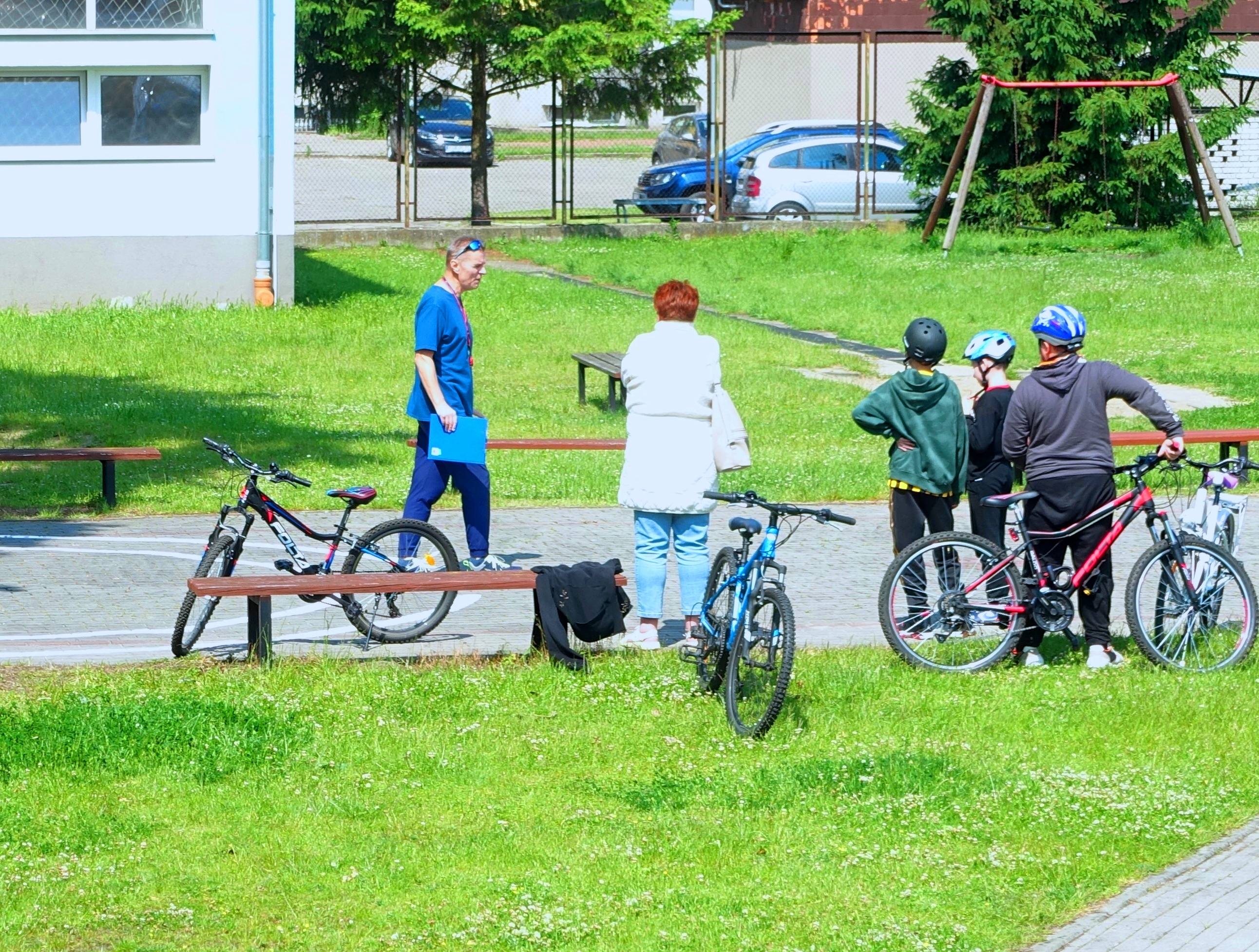 12 czerwca b.r kilkunastu uczniów z naszej szkoły przystąpiło do egzaminu na kartę rowerową. Uczniowie w pierwszej kolejności rozwiązywali wcześniej test dotyczący znajomości kodeksu ruchu drogowego i bezpiecznego poruszania się po drogach. Kto zaliczył tę część teoretyczną mógł podejść do części praktycznej egzaminu – czyli jazdy po przygotowanym torze, oczywiście w kasku. Uczniowie musieli zaprezentować między innymi - umiejętność utrzymania się w swoim pasie ruchu i torze jazdy, czy zasygnalizowanie wykonania danego manewru. Pogoda w czwartek dopisała, było wreszcie bez deszczu. Uczniów egzaminował p. Mirosław Cieślik.