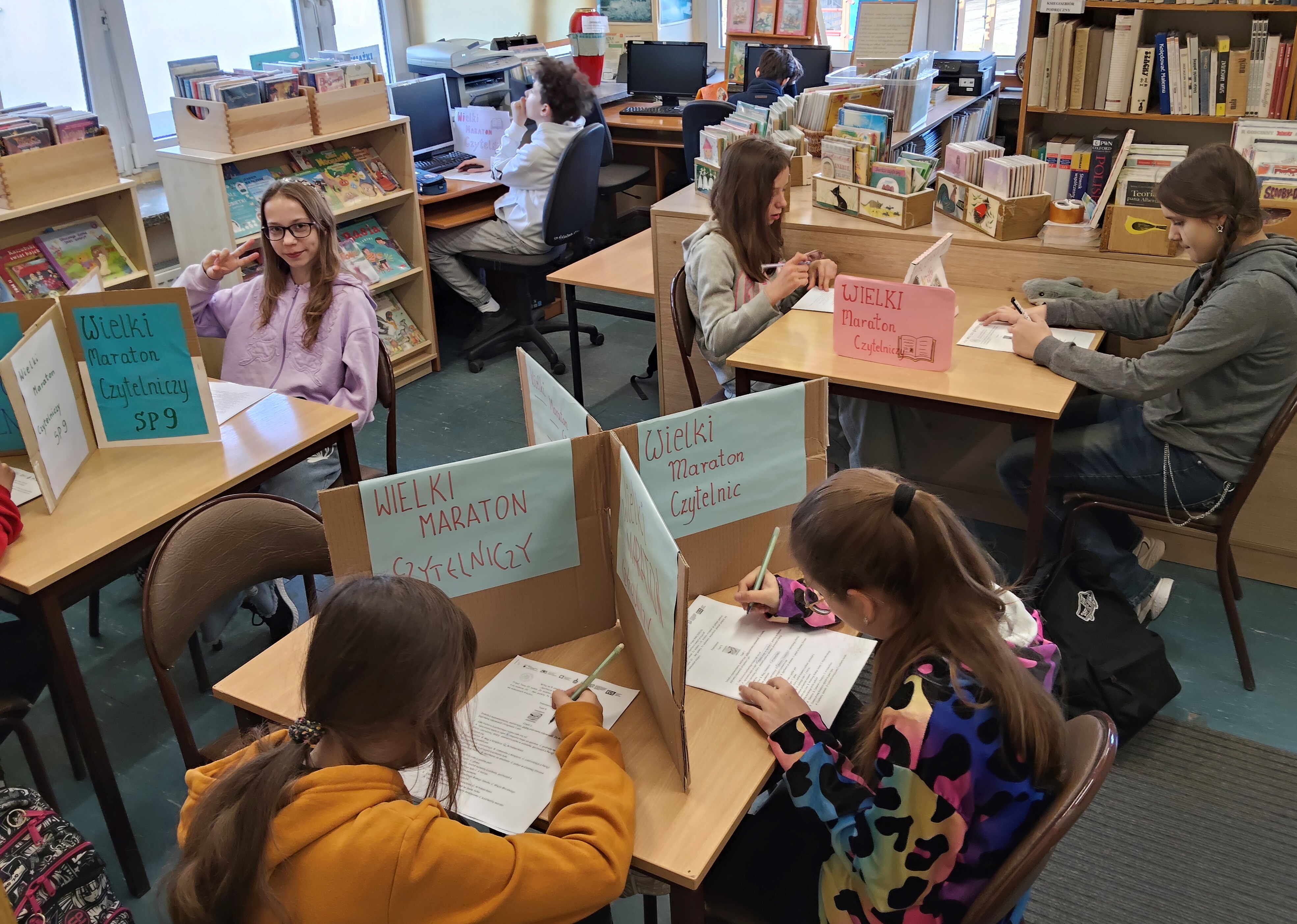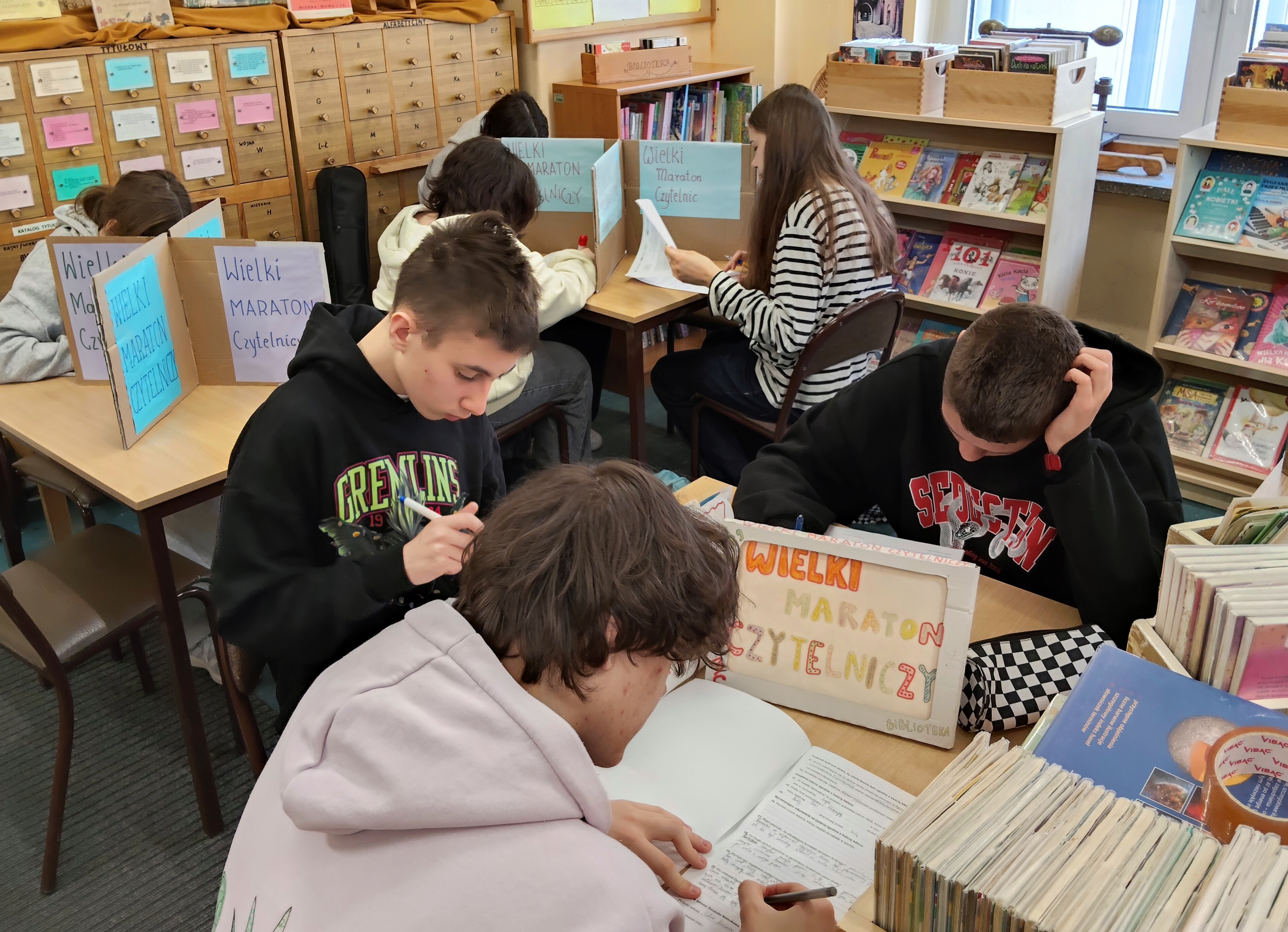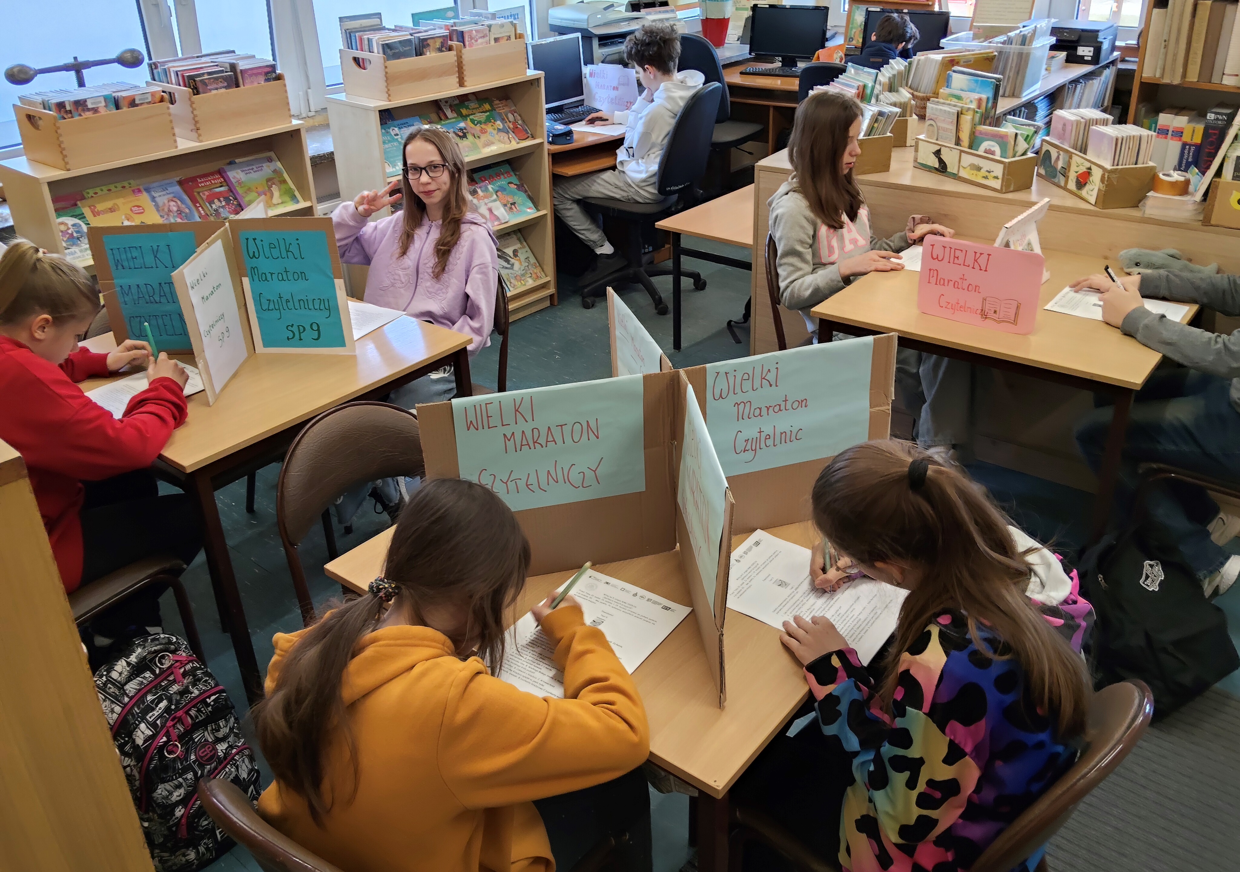 W bibliotece SP9 działo się! Za nami V etap ogólnopolskiego Wielkiego Maratonu Czytelniczego, w którym wzięli udział chętni uczniowie klas 2–8. Nie ma co ukrywać – pytania konkursowe, których było 20 - postawiły poprzeczkę naprawdę wysoko. Nasi ,,maratończycy’’ musieli wykazać się świetną pamięcią i dbałością o detale z zadanej lektury. Mimo niełatwych pytań w bibliotece panowała świetna atmosfera. Skupienie mieszało się z pozytywną energią, a nasi czytelnicy po raz kolejny udowodnili, że żadna lektura im niestraszna. Opiekę nad uczestnikami sprawowali p. Janina Łańko i p. Adam Liszewski. Ostatni etap już za miesiąc [18-19 maj].