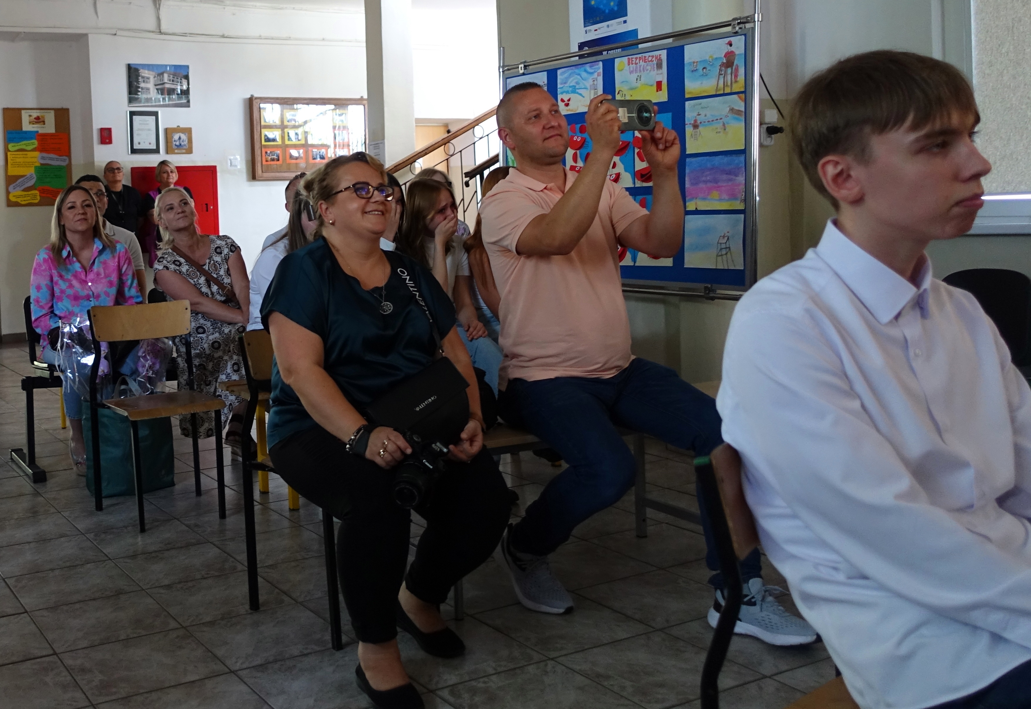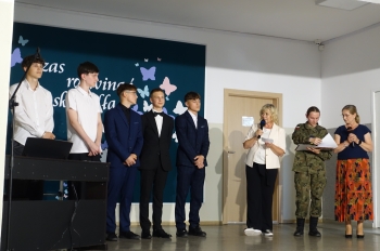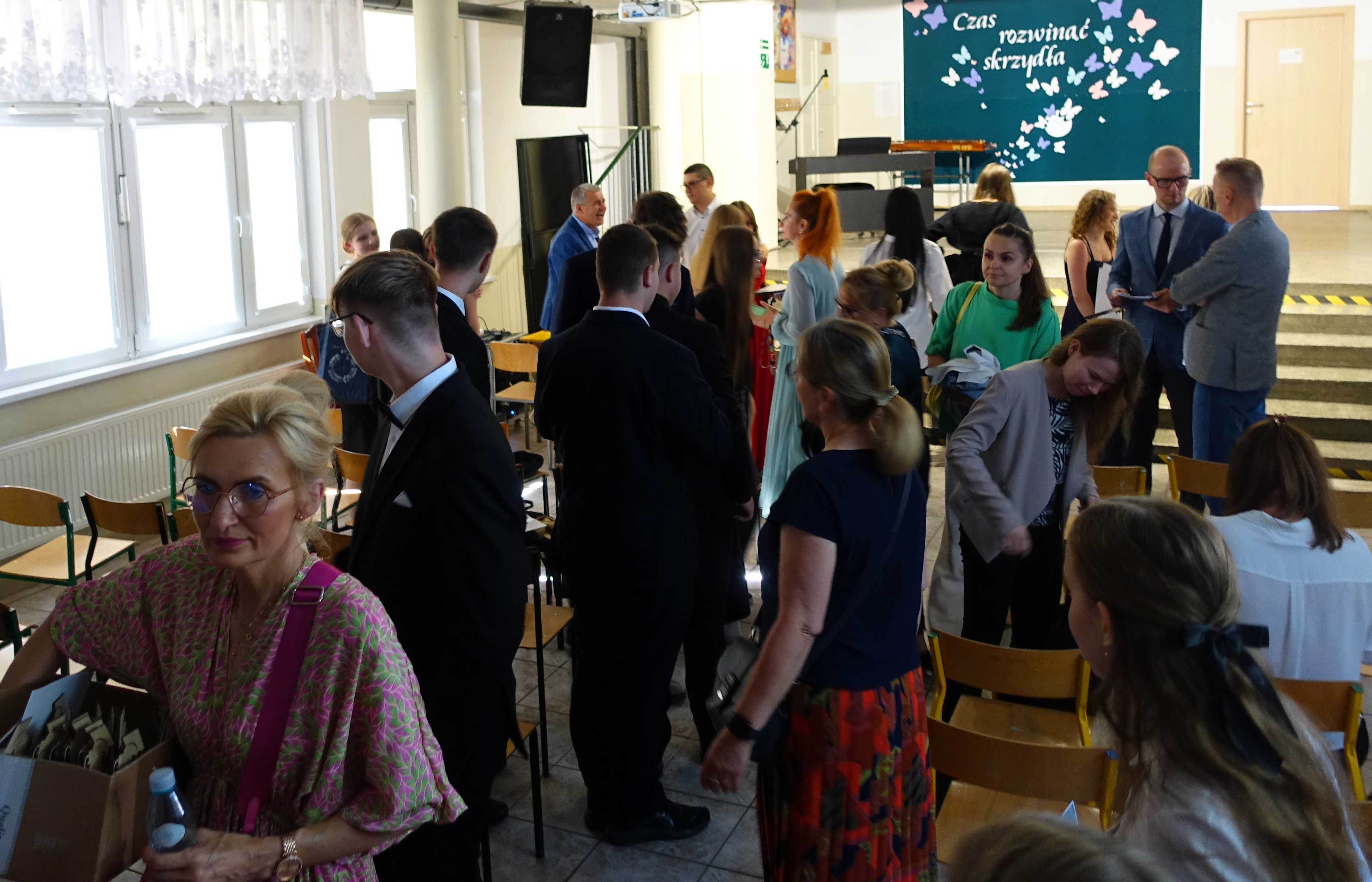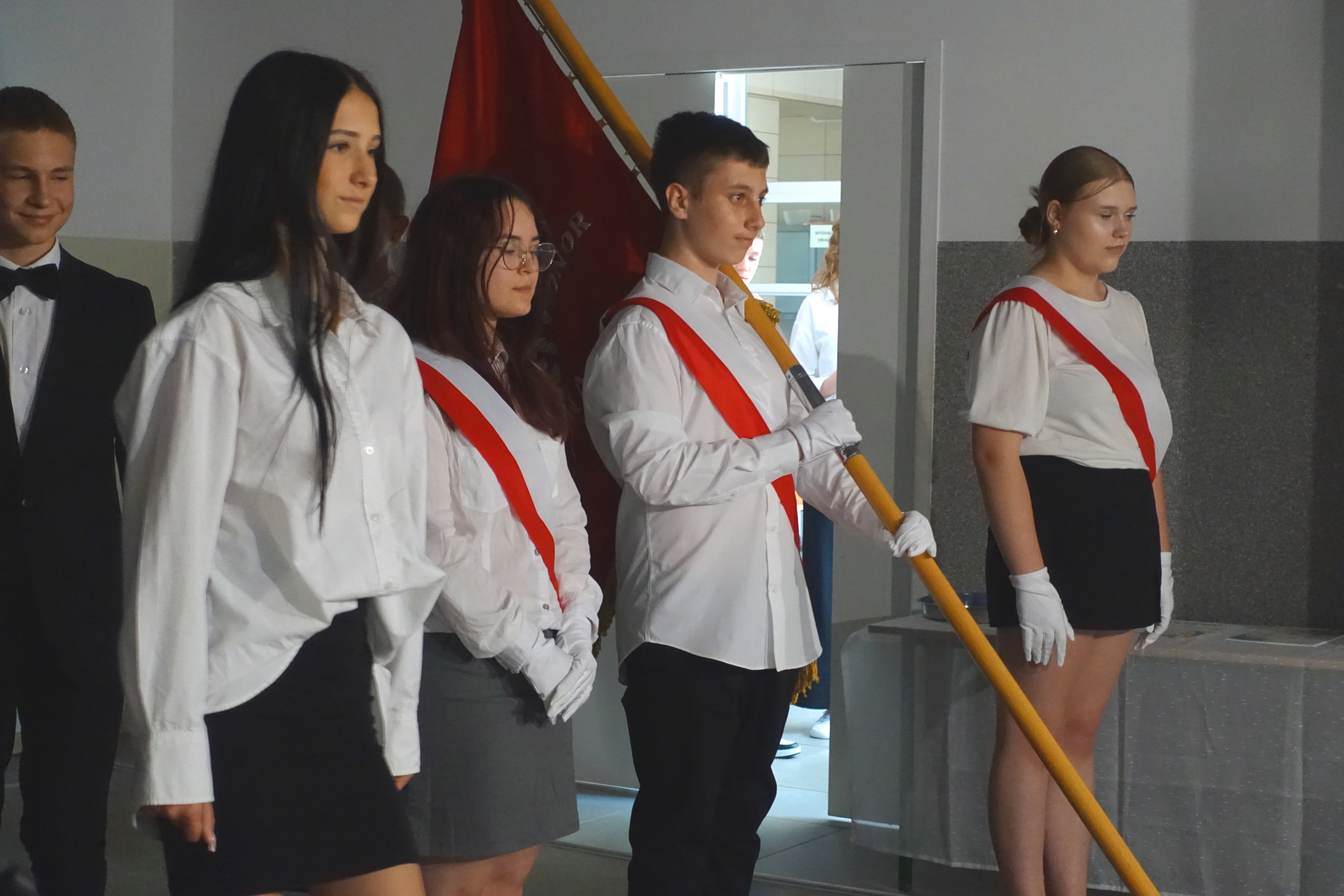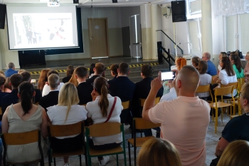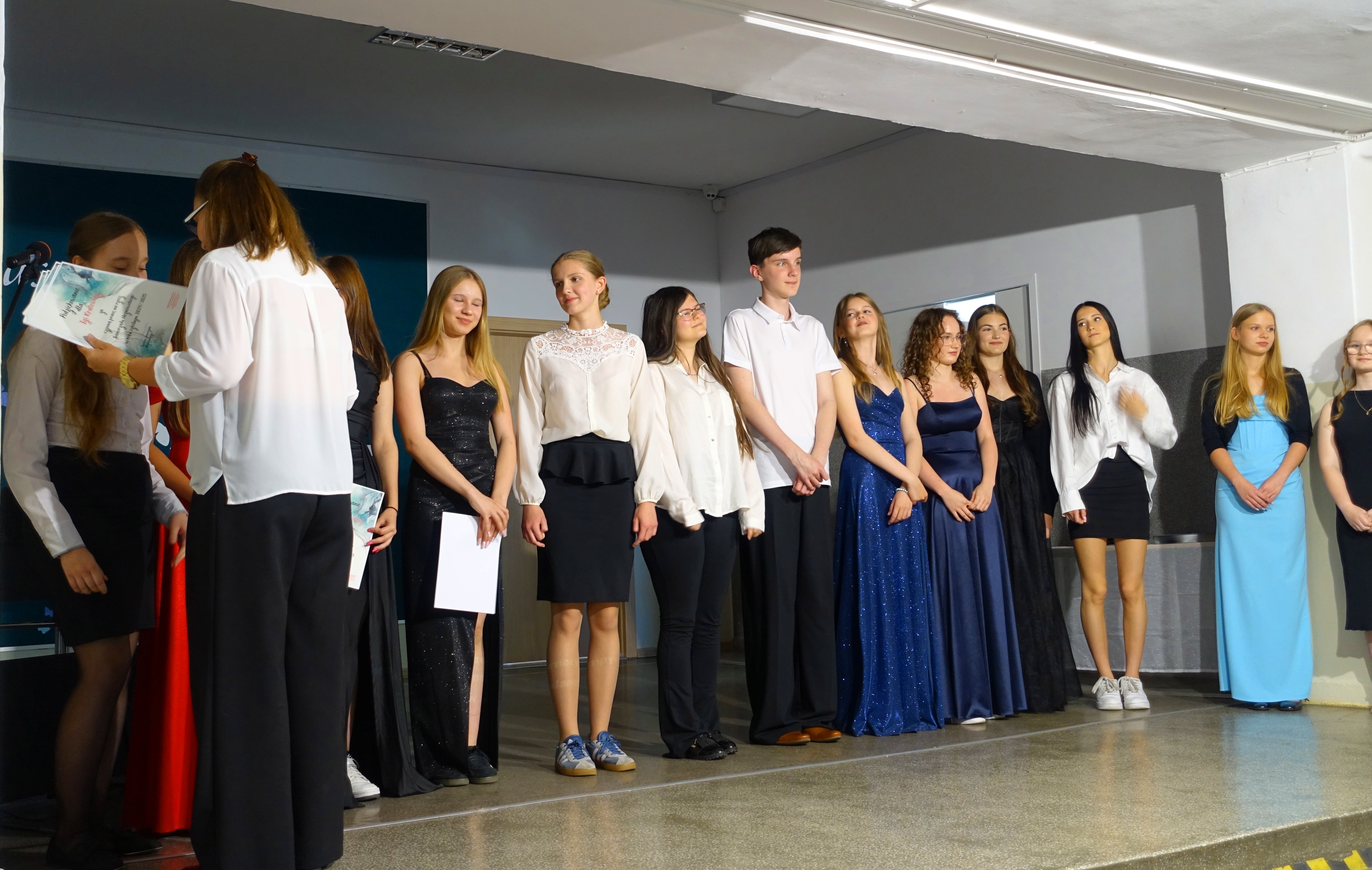 W czwartek 26 czerwca 2025r. odbyło się uroczyste pożegnanie uczniów klas VIII na holu głównym szkoły. Szkolna akademia rozpoczęła się przekazaniem pocztu sztandarowego reprezentacji klas VII i odśpiewaniem Mazurka Dąbrowskiego pod okiem p. Andrzeja Pokory i p. Łukasza Rosiak. Po chwili na scenie szkolnej wystąpił Franciszek Mattern, który na ksylofonie zagrał klasycznego ,,Poloneza’’. Następnie odbyła się już właściwa część artystyczna przygotowana przez p. Janinę Łańko i p. Katarzynę Gizę z uczniami - konferansjerami: Franciszkiem, Zuzią i Jakubem. W trakcie akademii dziękowano dość wesoło nauczycielom i pracownikom ,,dziewiątki’. Nasza najlepsza uczennica szkoły Iga Kratewicz z kl. VIII a, podziękowała w imieniu szkolnego SU radzie pedagogicznej i obsłudze szkoły za pracę i trud włożony w wychowanie ósmoklasistów. Nie zabrakło głosu przedstawicieli Rady Rodziców. Tradycyjnie już wręczono uczniom wyróżniającym się w nauce i sporcie nagrody. W tym roku szkolnym prym wiodła nietuzinkowa Iga Kratewicz. Nagrody uczniom wręczali p. Paweł Guzow- dyrektor, p. Bożena Wereszczyńska- wicedyrektor, p. Mirosłąw Cieślik, p. Marzena Kratewicz, p. Ewa Lemańczyk, p. Oliwia Duszyńska oraz specjalny gość szkoły – absolwentka Patrycja Pyrzyńska. Rzecz jasna były i nasze ,,Kaziki’, które przyznano uczniom za ,,specjalne’’ zdolności i osobowości, były to: papużki nierozłączki, sportowcy, chłopaki z klasą, artystyczne dusze, intelektualiści etc. Nie zabrakło zdjęć retrospekcyjnych i całej masy śmiechu. Na sam koniec pan dyrektor Paweł Guzow pogratulował ósmoklasistom ukończenia nauki, życząc sukcesów już w placówkach ponadpodstawowych. I jeszcze tylko rano w dniu 27 czerwca nasi absolwenci odbiorą swoje szkolne świadectwa, żegnając się ostatecznie z SP 9.