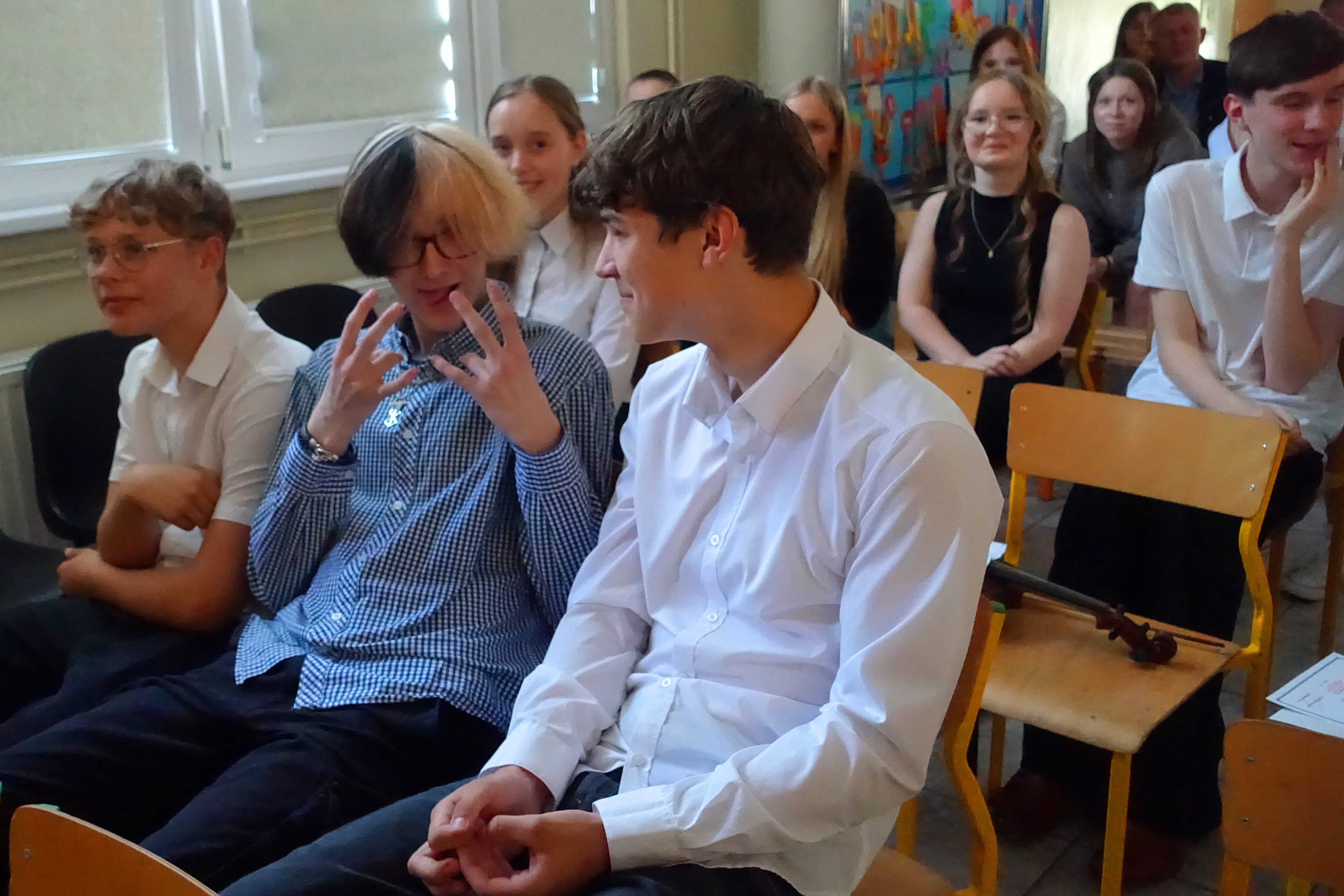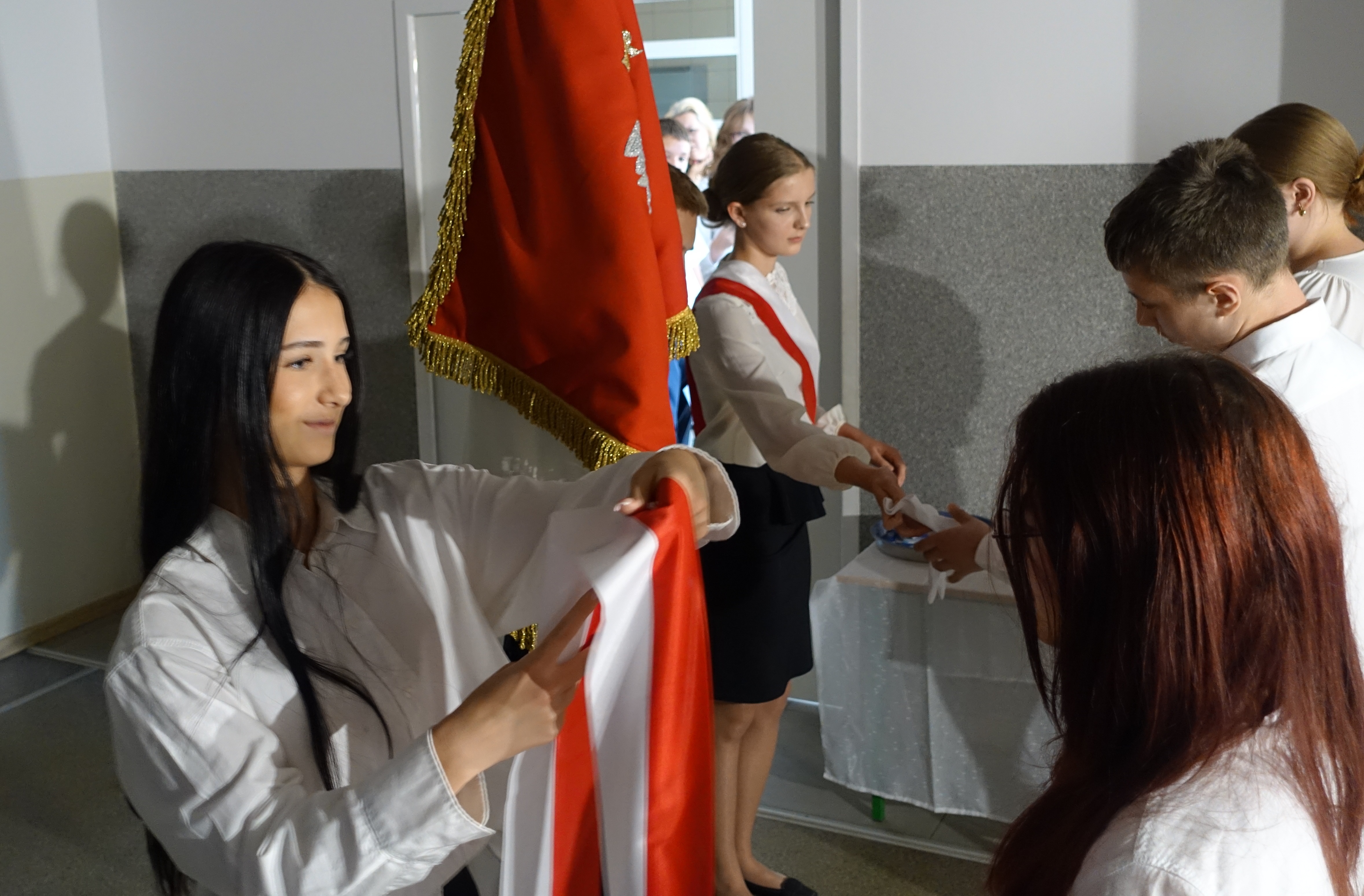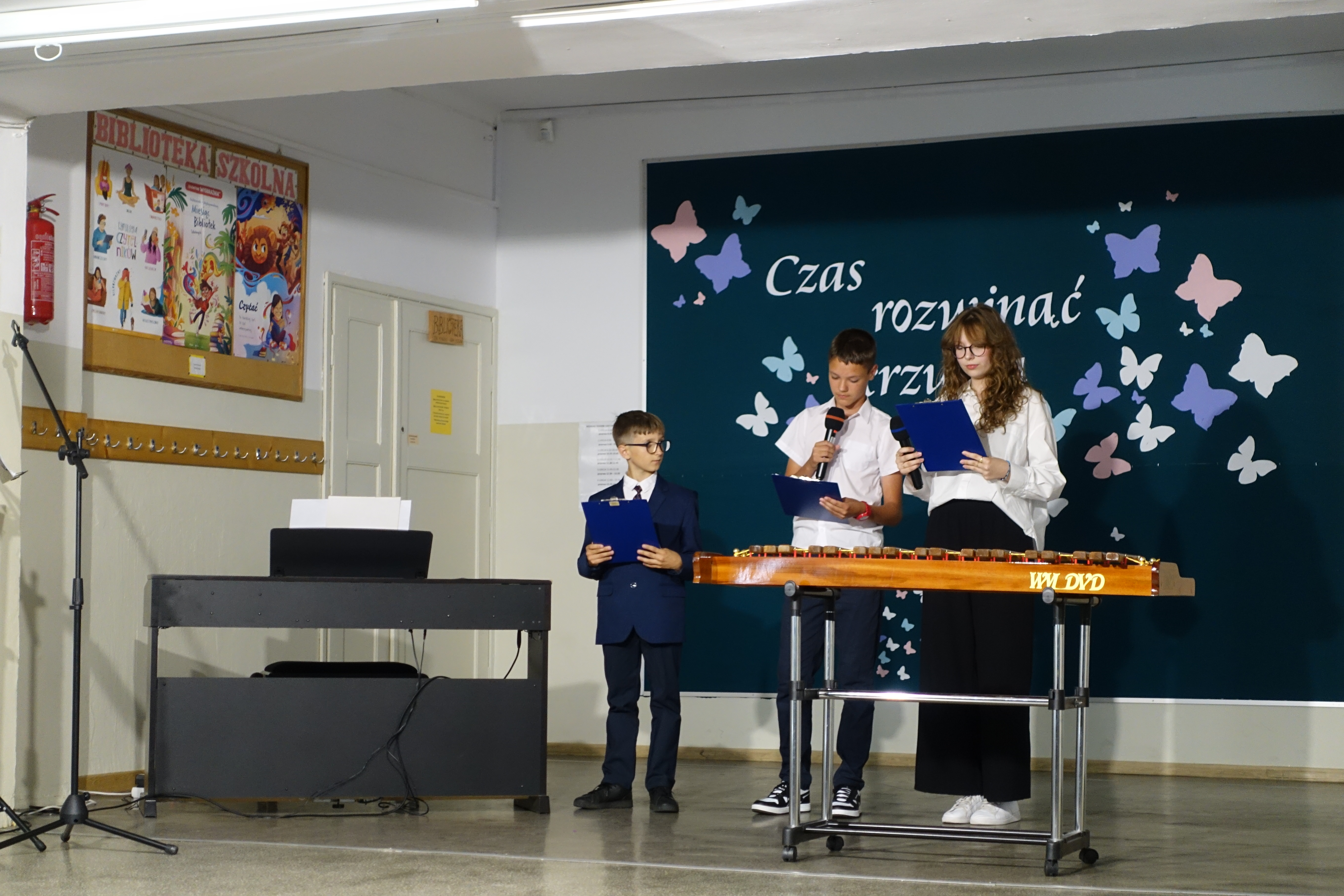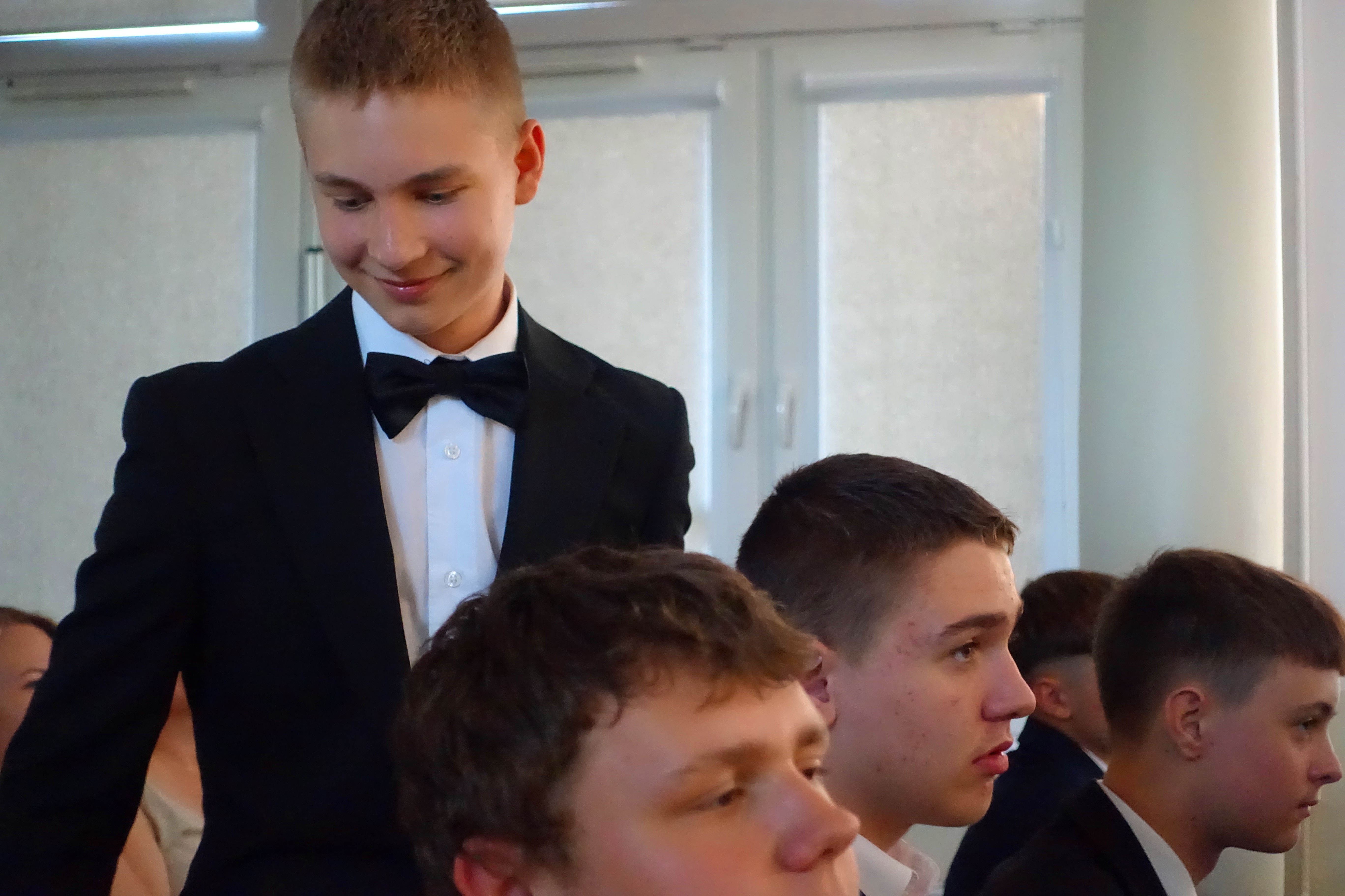 W czwartek 26 czerwca 2025r. odbyło się uroczyste pożegnanie uczniów klas VIII na holu głównym szkoły. Szkolna akademia rozpoczęła się przekazaniem pocztu sztandarowego reprezentacji klas VII i odśpiewaniem Mazurka Dąbrowskiego pod okiem p. Andrzeja Pokory i p. Łukasza Rosiak. Po chwili na scenie szkolnej wystąpił Franciszek Mattern, który na ksylofonie zagrał klasycznego ,,Poloneza’’. Następnie odbyła się już właściwa część artystyczna przygotowana przez p. Janinę Łańko i p. Katarzynę Gizę z uczniami - konferansjerami: Franciszkiem, Zuzią i Jakubem. W trakcie akademii dziękowano dość wesoło nauczycielom i pracownikom ,,dziewiątki’. Nasza najlepsza uczennica szkoły Iga Kratewicz z kl. VIII a, podziękowała w imieniu szkolnego SU radzie pedagogicznej i obsłudze szkoły za pracę i trud włożony w wychowanie ósmoklasistów. Nie zabrakło głosu przedstawicieli Rady Rodziców. Tradycyjnie już wręczono uczniom wyróżniającym się w nauce i sporcie nagrody. W tym roku szkolnym prym wiodła nietuzinkowa Iga Kratewicz. Nagrody uczniom wręczali p. Paweł Guzow- dyrektor, p. Bożena Wereszczyńska- wicedyrektor, p. Mirosłąw Cieślik, p. Marzena Kratewicz, p. Ewa Lemańczyk, p. Oliwia Duszyńska oraz specjalny gość szkoły – absolwentka Patrycja Pyrzyńska. Rzecz jasna były i nasze ,,Kaziki’, które przyznano uczniom za ,,specjalne’’ zdolności i osobowości, były to: papużki nierozłączki, sportowcy, chłopaki z klasą, artystyczne dusze, intelektualiści etc. Nie zabrakło zdjęć retrospekcyjnych i całej masy śmiechu. Na sam koniec pan dyrektor Paweł Guzow pogratulował ósmoklasistom ukończenia nauki, życząc sukcesów już w placówkach ponadpodstawowych. I jeszcze tylko rano w dniu 27 czerwca nasi absolwenci odbiorą swoje szkolne świadectwa, żegnając się ostatecznie z SP 9.