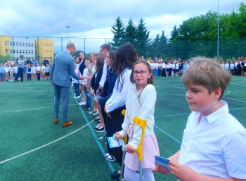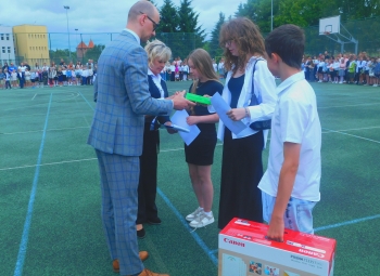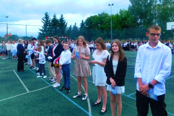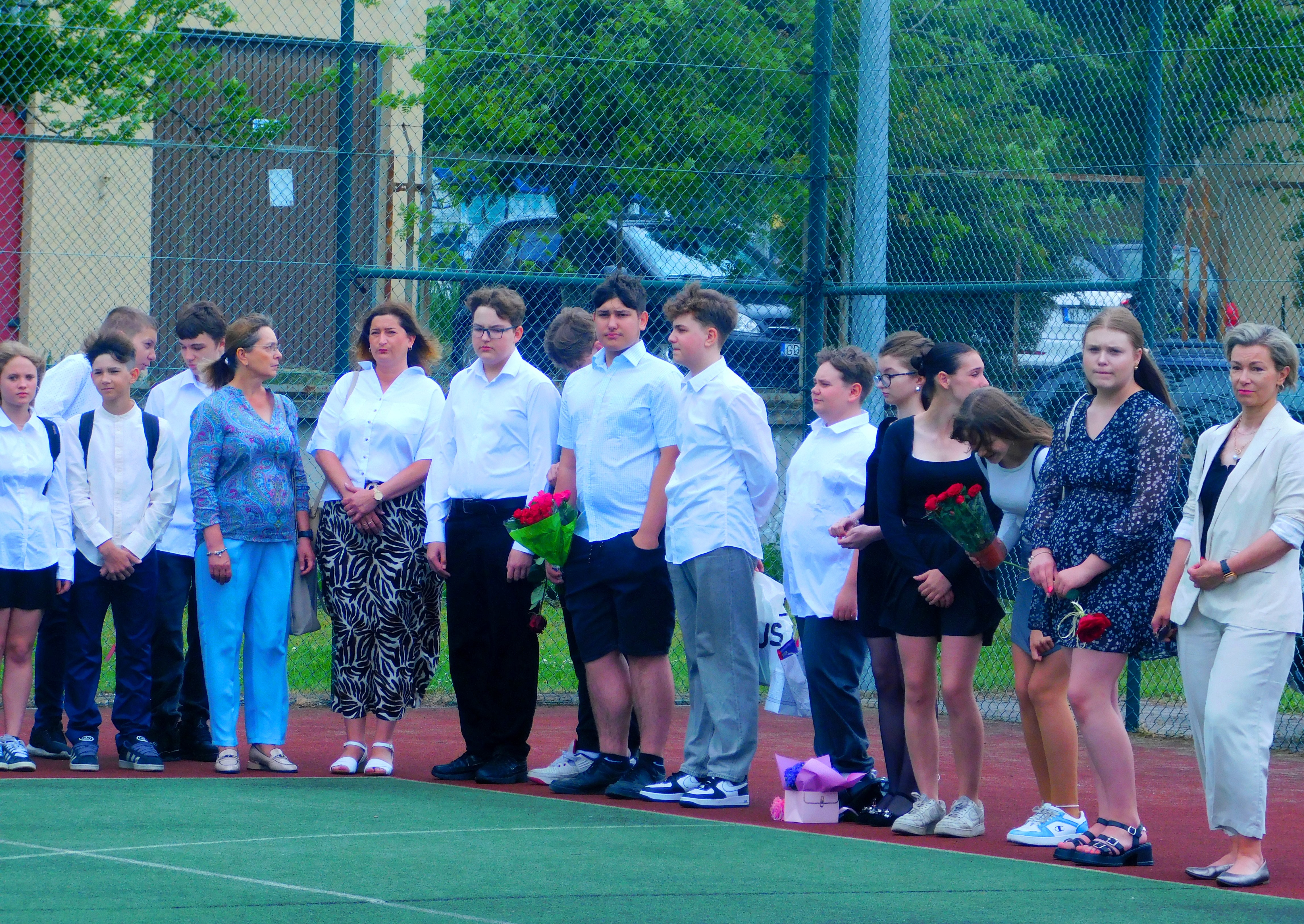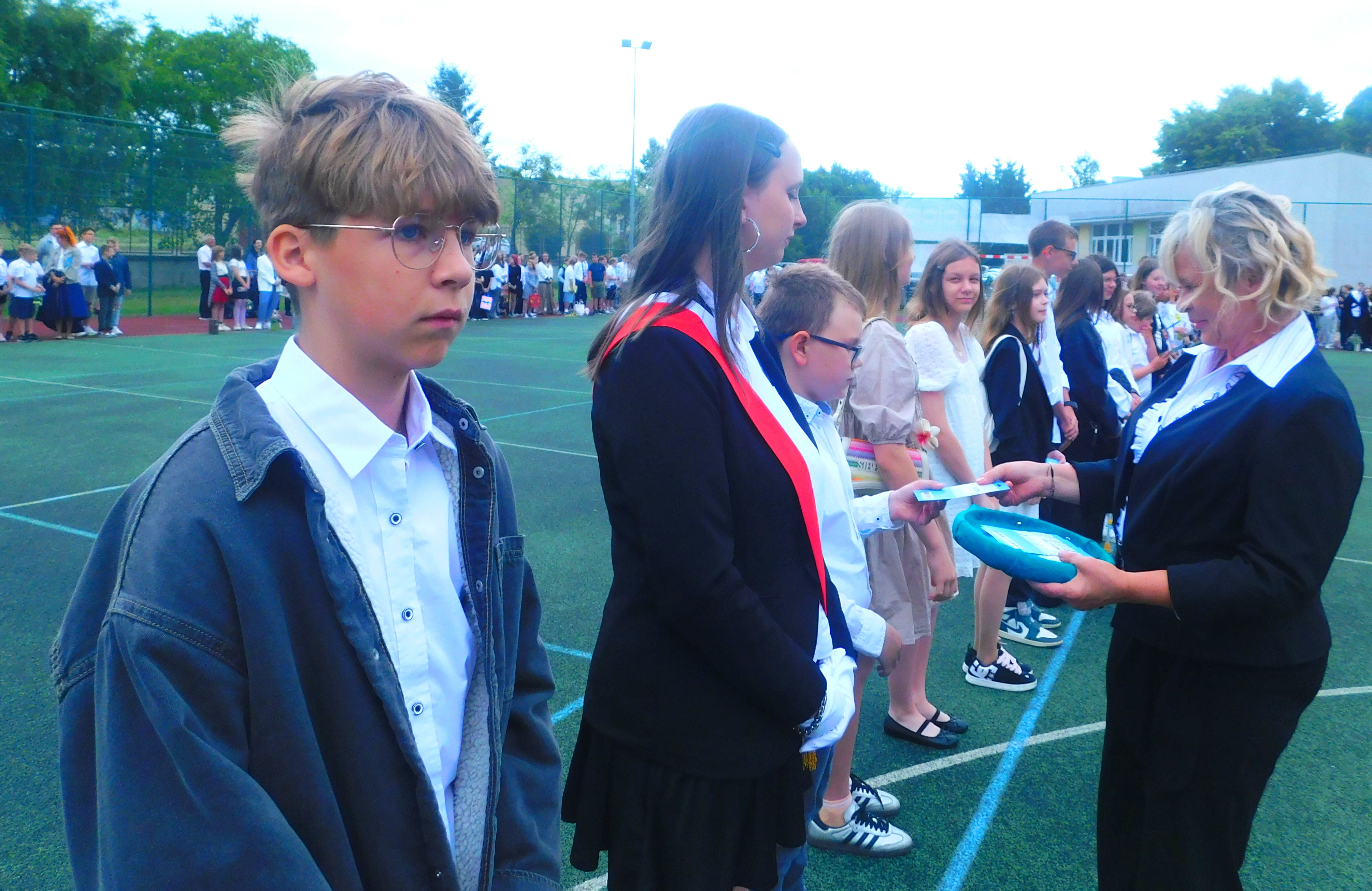 W piątek, punktualnie o godzinie 9:00 nadszedł upragniony moment dla wszystkich uczniów. Odbyło się uroczyste zakończenie roku szkolnego 2024/2025 na wielofunkcyjnym boisku szkolnym. Po wysłuchaniu przemowy dyrektora szkoły pana Pawła Guzow, wszyscy uczniowie ,,dziewiątki’’ odebrali świadectwa, zostały także wręczone nagrody za bardzo dobre wyniki w nauce, osiągnięcia w konkursach np. Igrzyska Wiedzy Szkolnej. Wszyscy uczestnicy szkolnego wydarzenia opuścili szkołę w radosnych nastrojach udając się na zasłużony letni wypoczynek. Niech będzie on bezpieczny i pełny słońca, a nie zachmurzenia, tak jak dzisiaj.