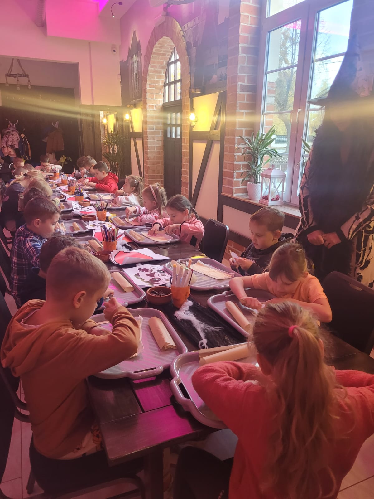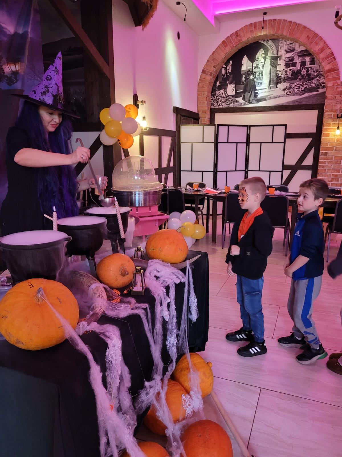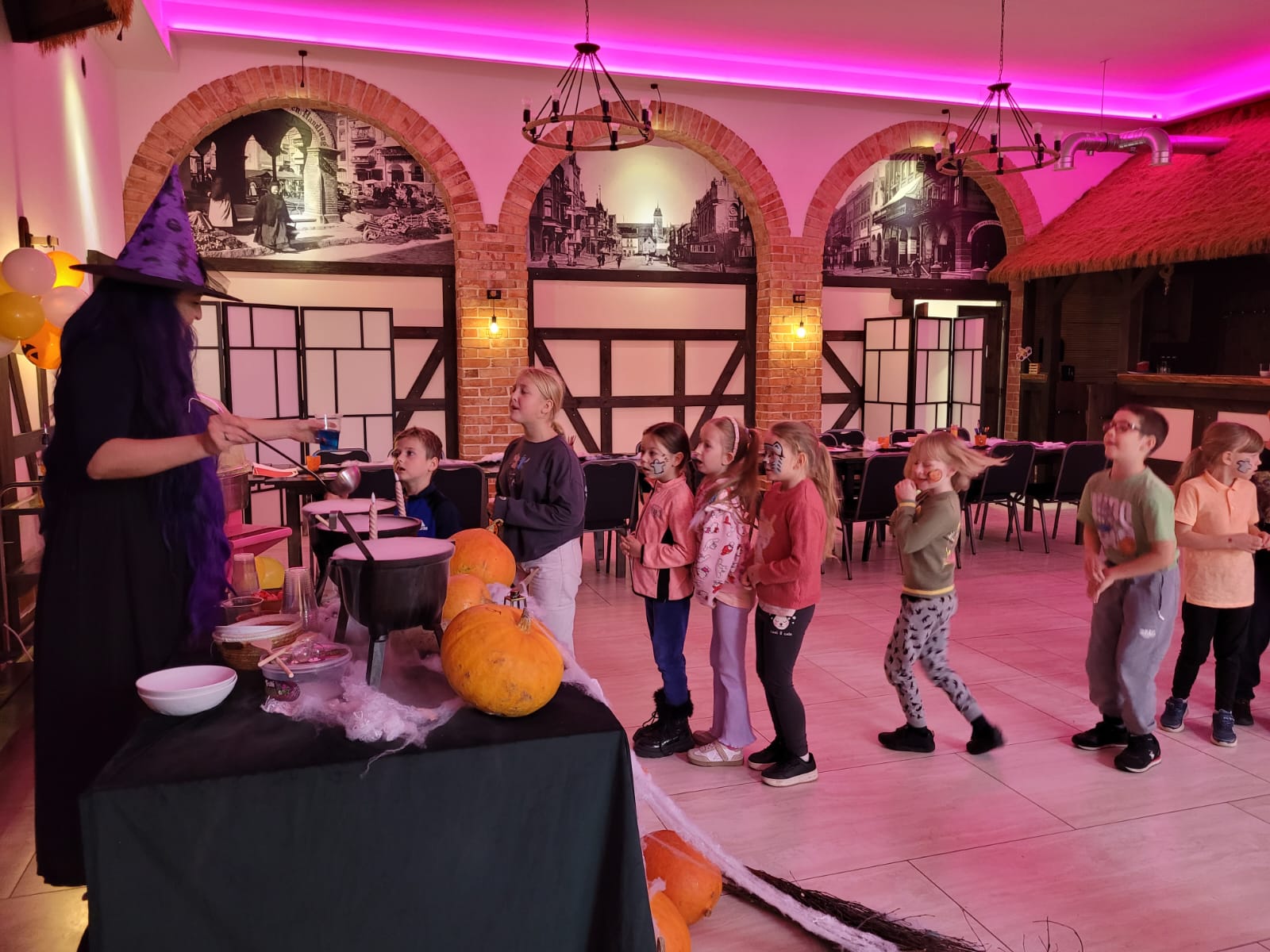 W dniu 30.10.2025 dzieci z klasy 1a były na warsztatach zorganizowanych przez Restauracje Sami Swoi z okazji Dnia Dyni. Uczniowie wykonali własne dyniowe przypinki do koszulek oraz przygotowali ciastka w kształcie dyni. Były też tańce i malowanie buziek. Dużą radość przyniosła dzieciom własnoręcznie ukręcona kolorowa wata cukrowa i pokaz magicznego eliksiru z efektem dymu.