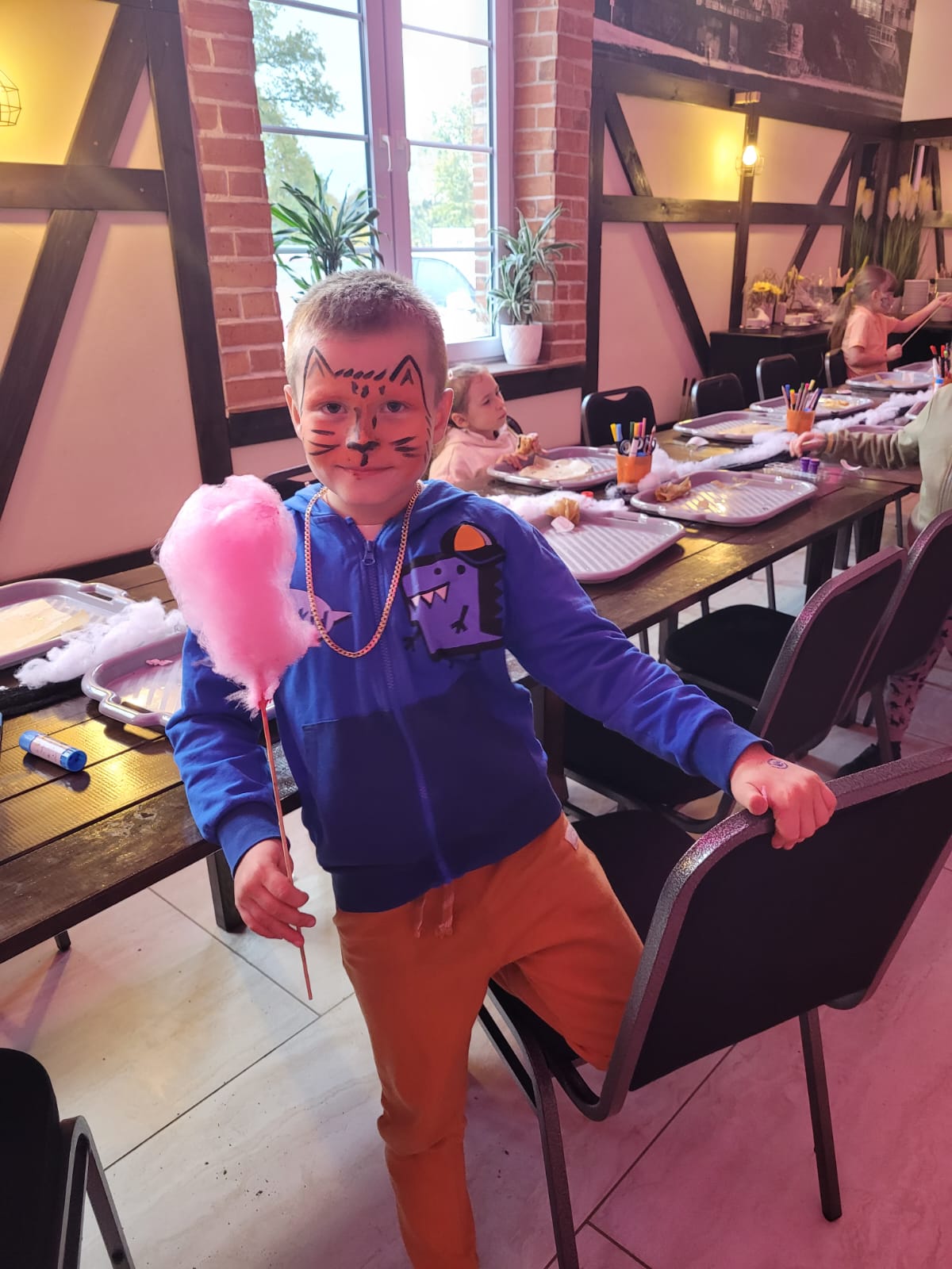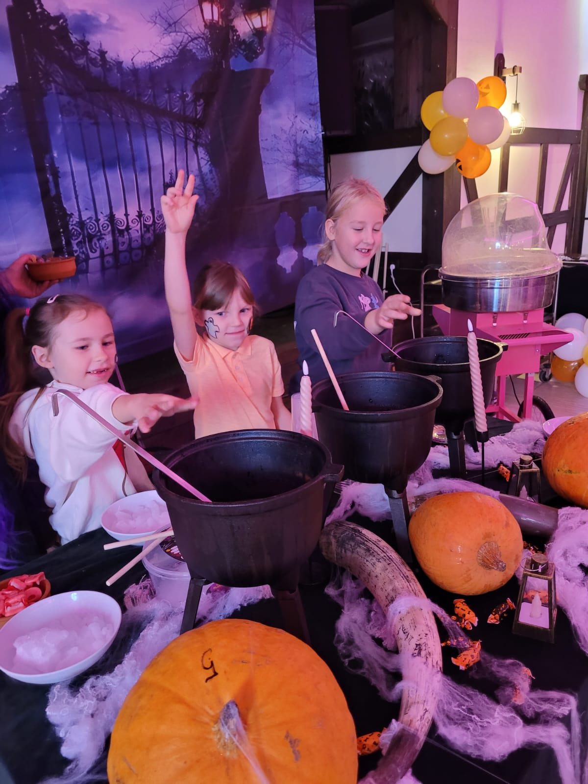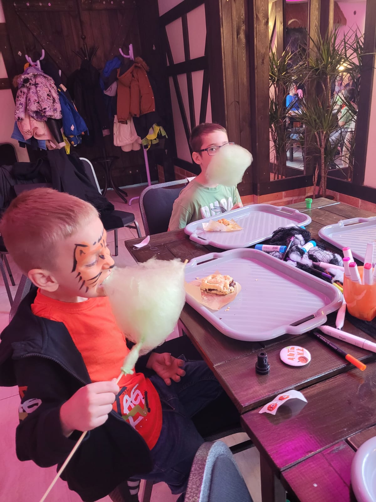 W dniu 30.10.2025 dzieci z klasy 1a były na warsztatach zorganizowanych przez Restauracje Sami Swoi z okazji Dnia Dyni. Uczniowie wykonali własne dyniowe przypinki do koszulek oraz przygotowali ciastka w kształcie dyni. Były też tańce i malowanie buziek. Dużą radość przyniosła dzieciom własnoręcznie ukręcona kolorowa wata cukrowa i pokaz magicznego eliksiru z efektem dymu.