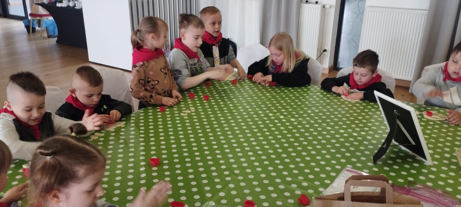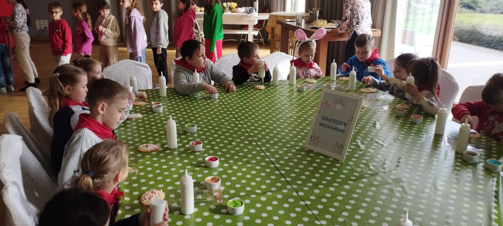 Warsztaty wielkanocne "Zerówki" We wtorkowy poranek dzieci z zerówki z wychowawczynią p. Jolą Okrucińską, wybrały się na warsztaty wielkanocne do Gościńca nad Wisłą. Przedszkolaki uczestniczyły w wielu zajęciach plastycznych. Wykonaly figurki z masy solnej, dekorowały ciasteczka, ozdabiały drewniane pisanki, siały rzeżuchę. Mogły również poskakać na dmuchańcu. Na koniec czekał je smakowity obiad- naleśniki z różnymi dodatkami. Dzieci spędziły czas w miłej atmosferze i wspaniale się bawiły, a jazda autokarem z Panem Andrzejem była przyjemną podróżą.