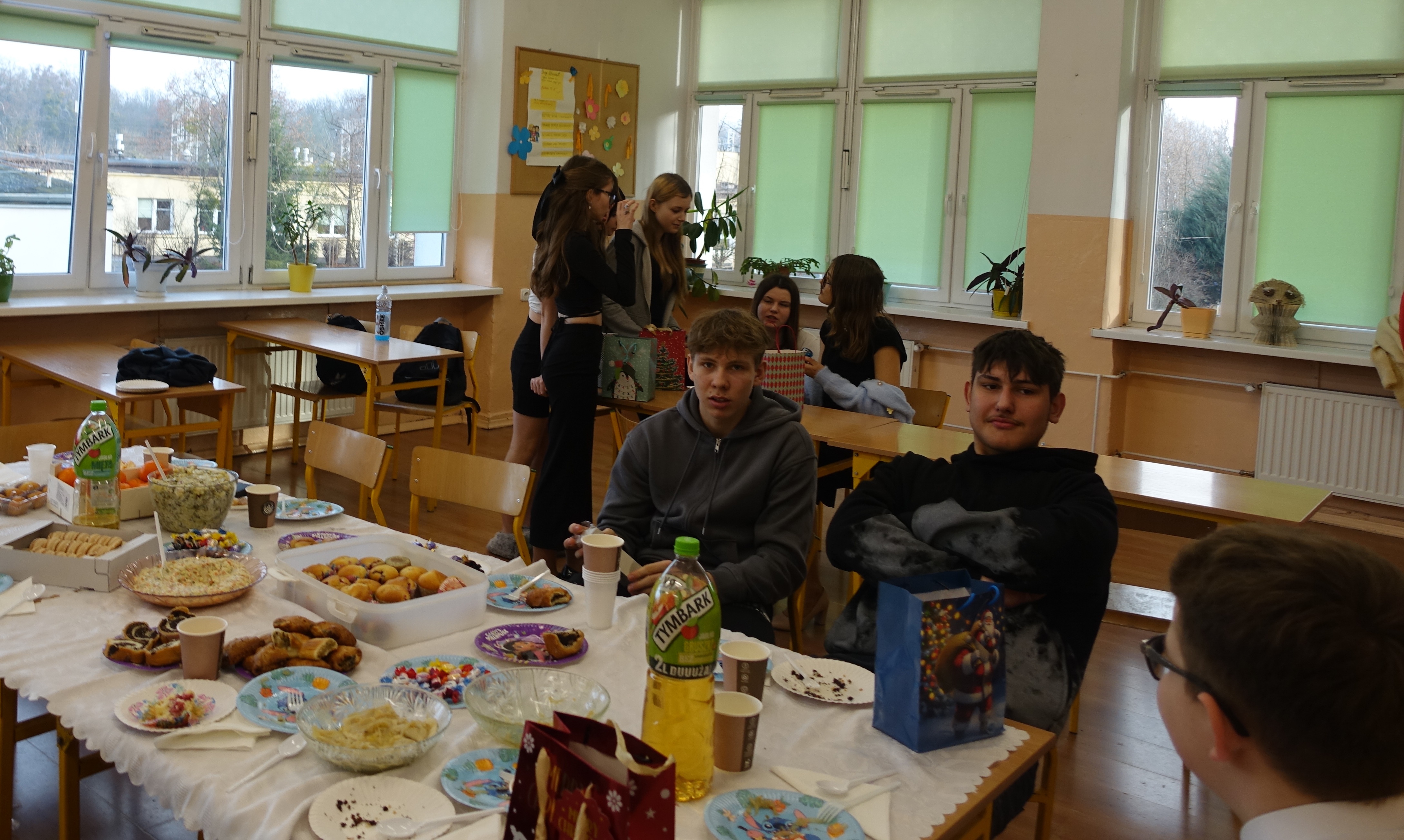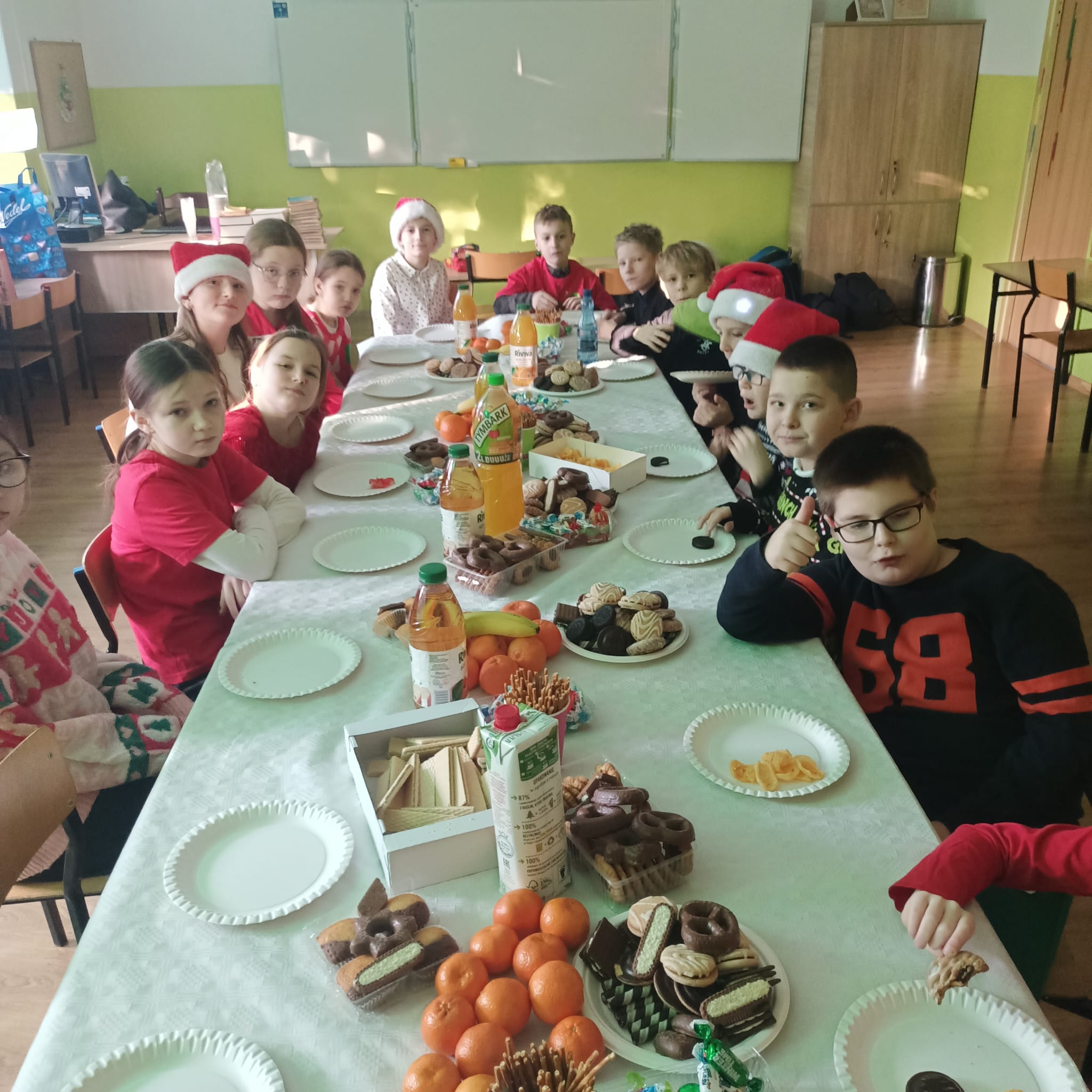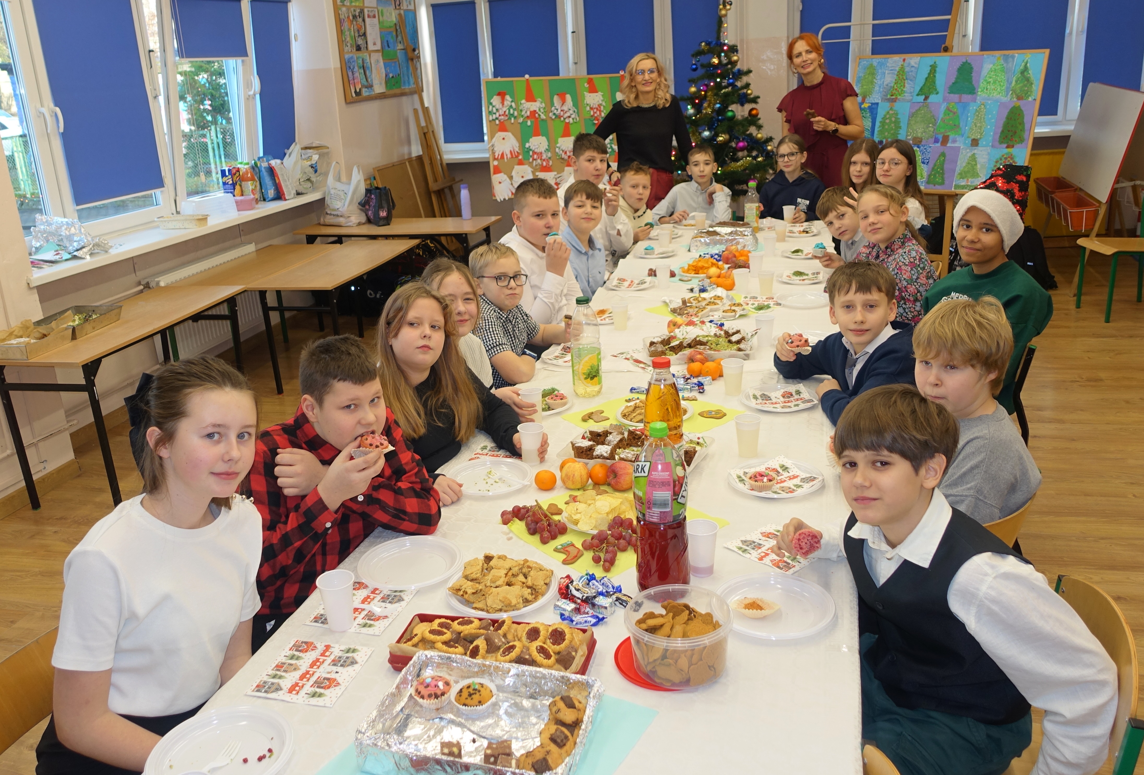 Tradycją naszej szkoły są klasowe spotkania wigilijne. Tak też było w tym roku. Uczniowie z każdej klasy przygotowali w swojej klasie pięknie nakryte stoły z siankiem pod obrusem. Nie brakło opłatka i świątecznych życzeń. Podniosłości tej chwili towarzyszyło wspólne śpiewanie kolęd. A na koniec były upragnione drobne prezenty.