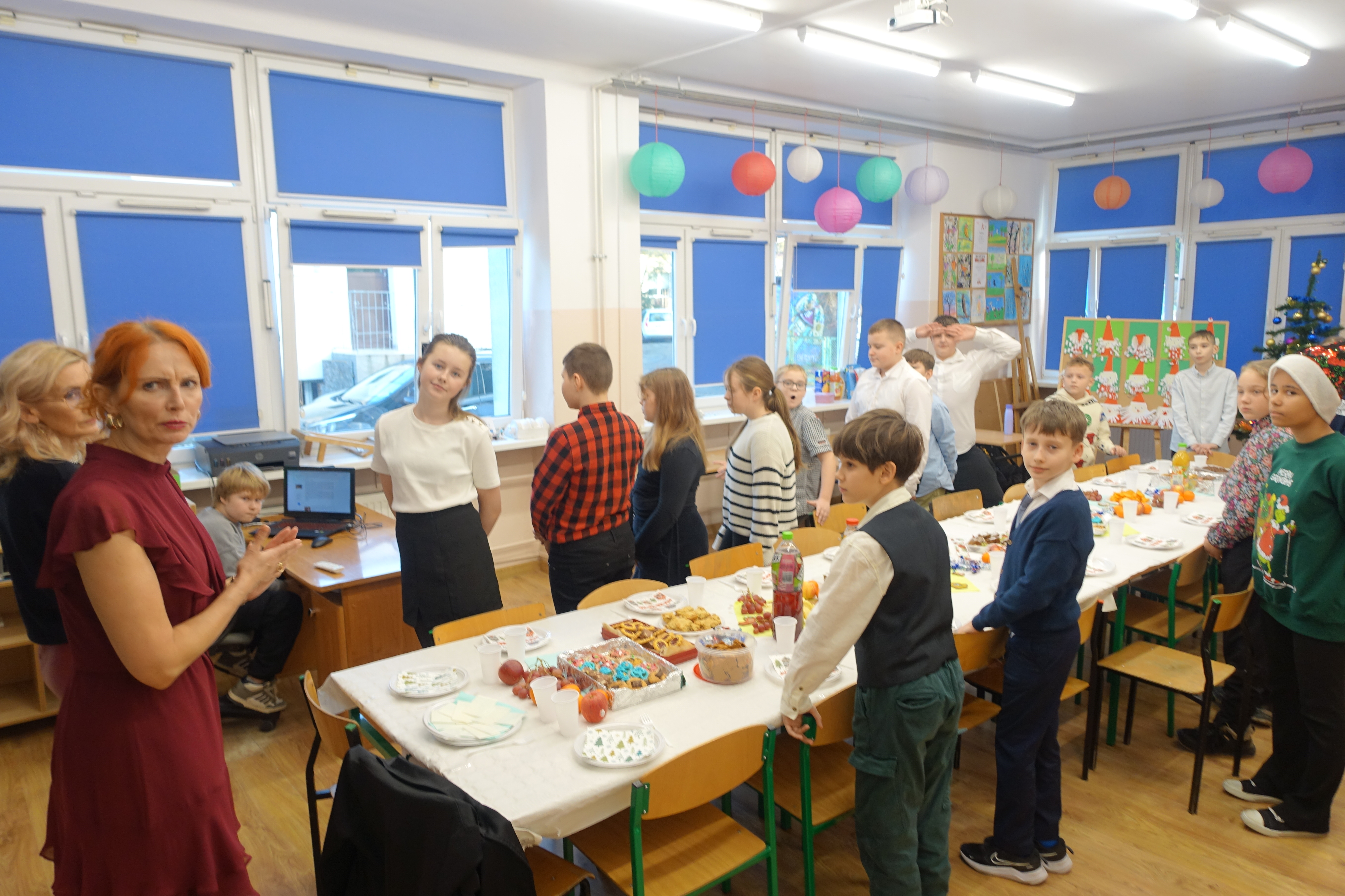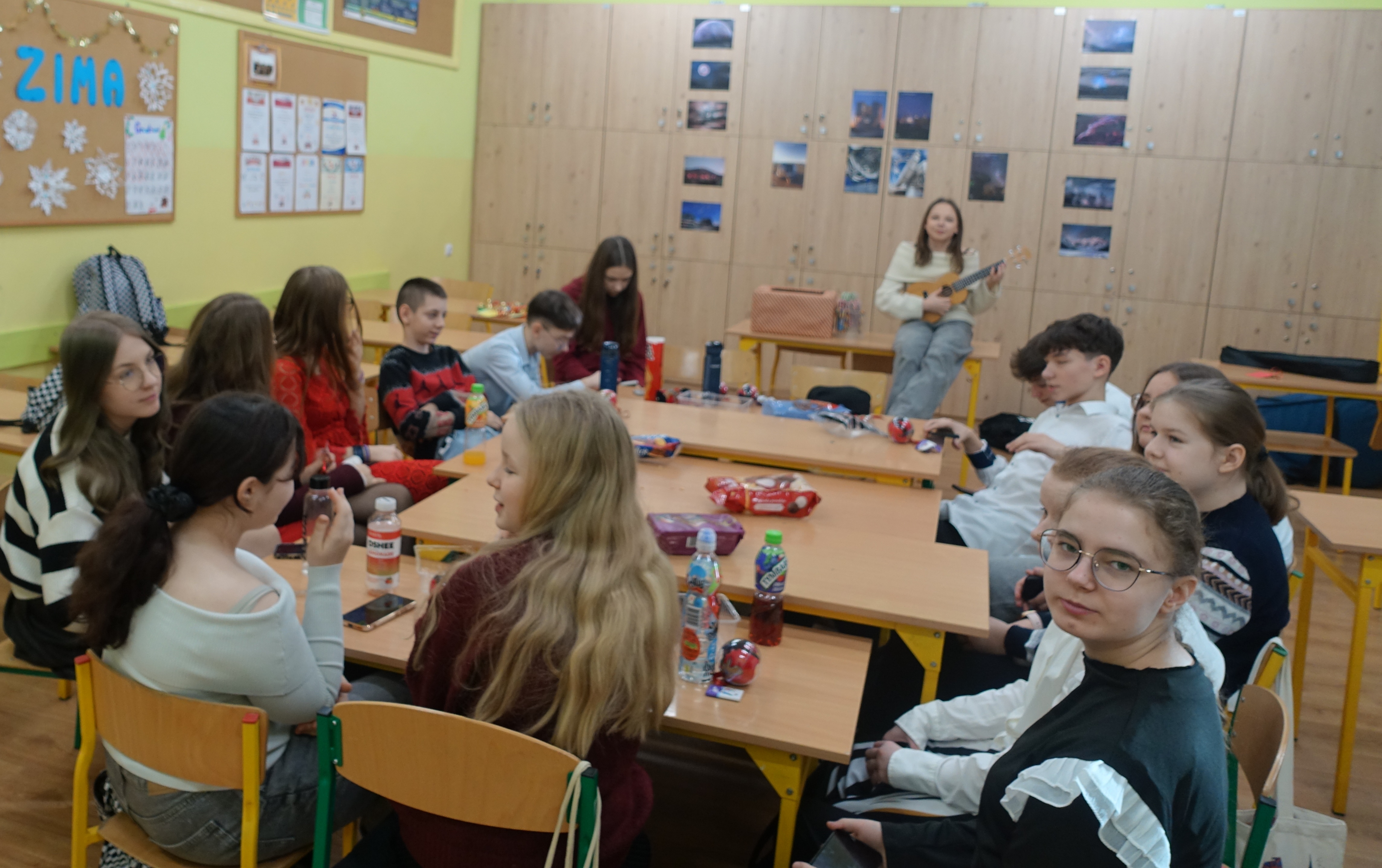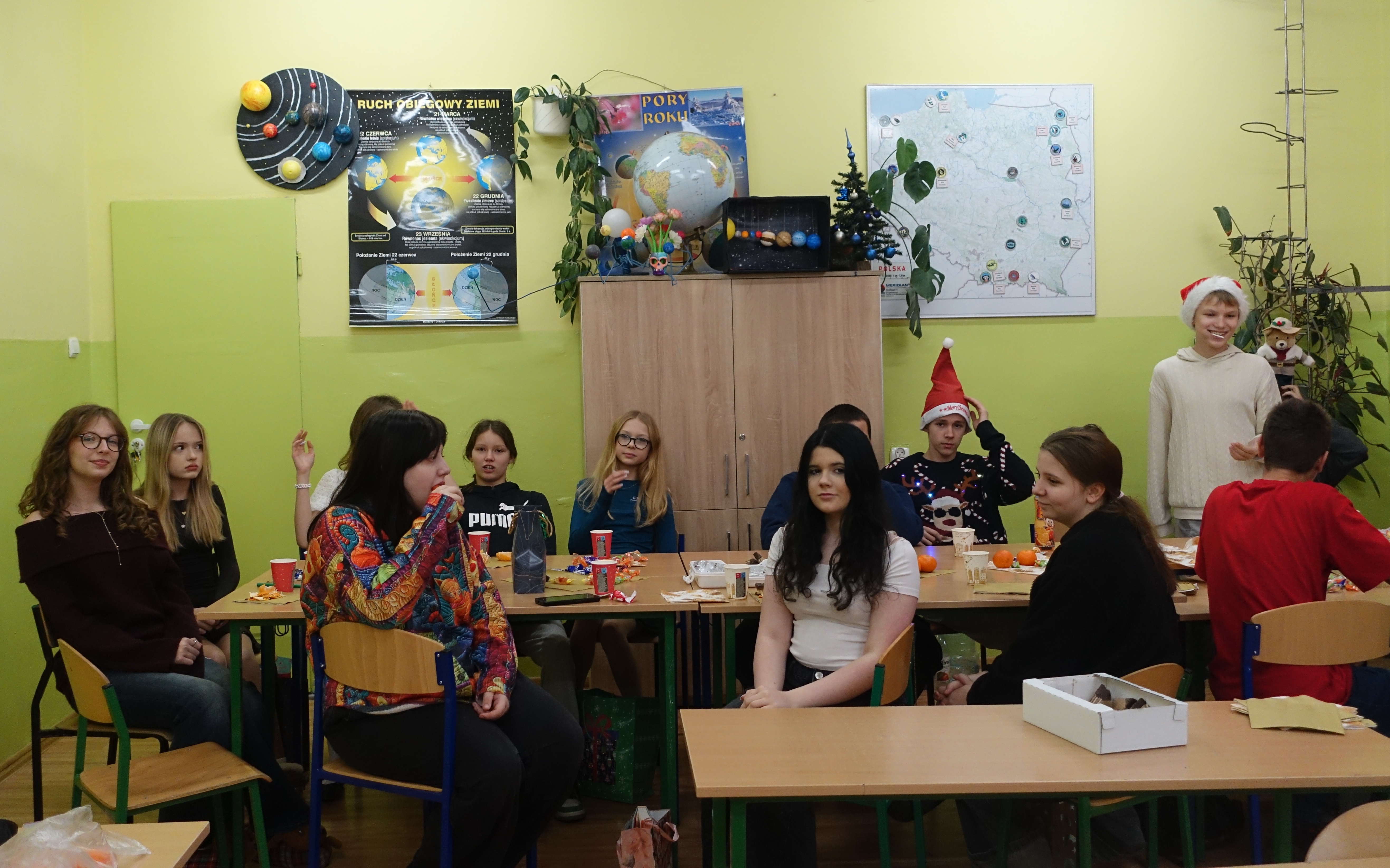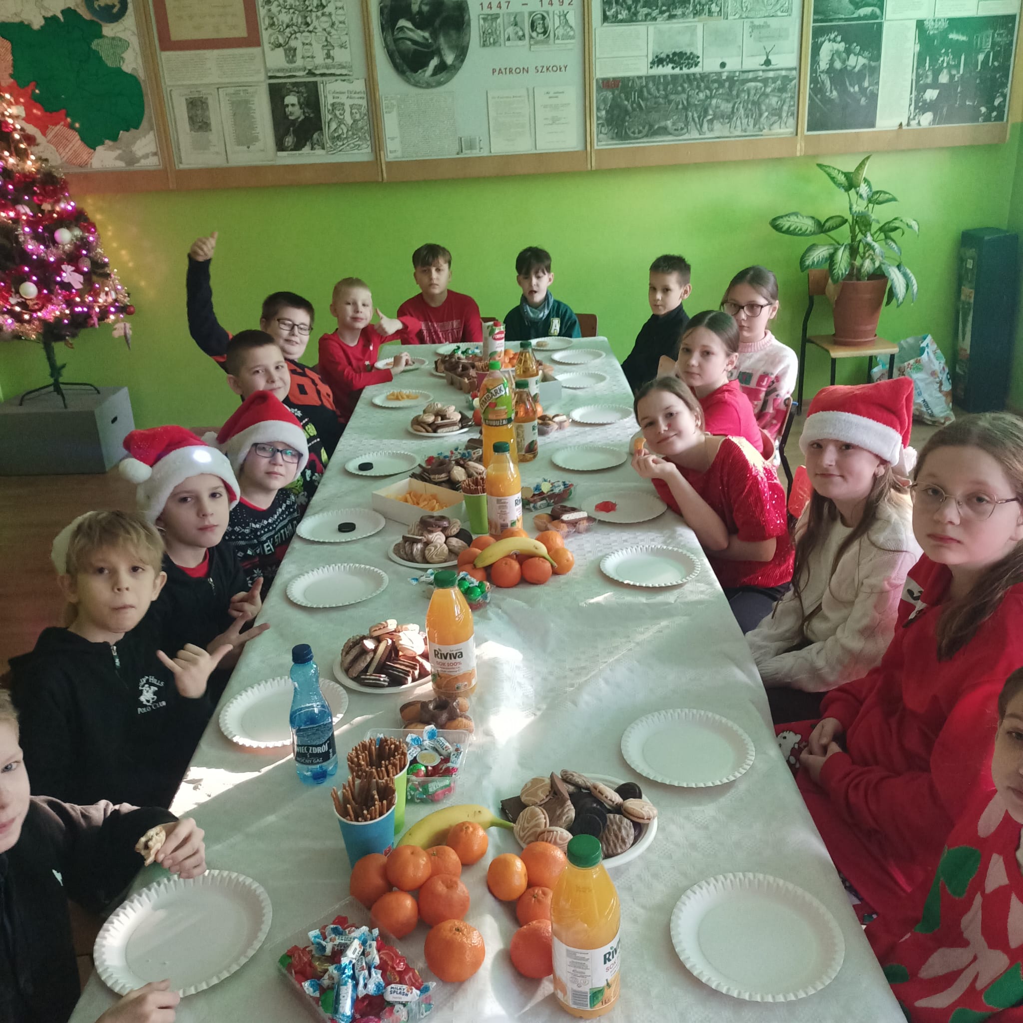Tradycją naszej szkoły są klasowe spotkania wigilijne. Tak też było w tym roku. Uczniowie z każdej klasy przygotowali w swojej klasie pięknie nakryte stoły z siankiem pod obrusem. Nie brakło opłatka i świątecznych życzeń. Podniosłości tej chwili towarzyszyło wspólne śpiewanie kolęd. A na koniec były upragnione drobne prezenty.