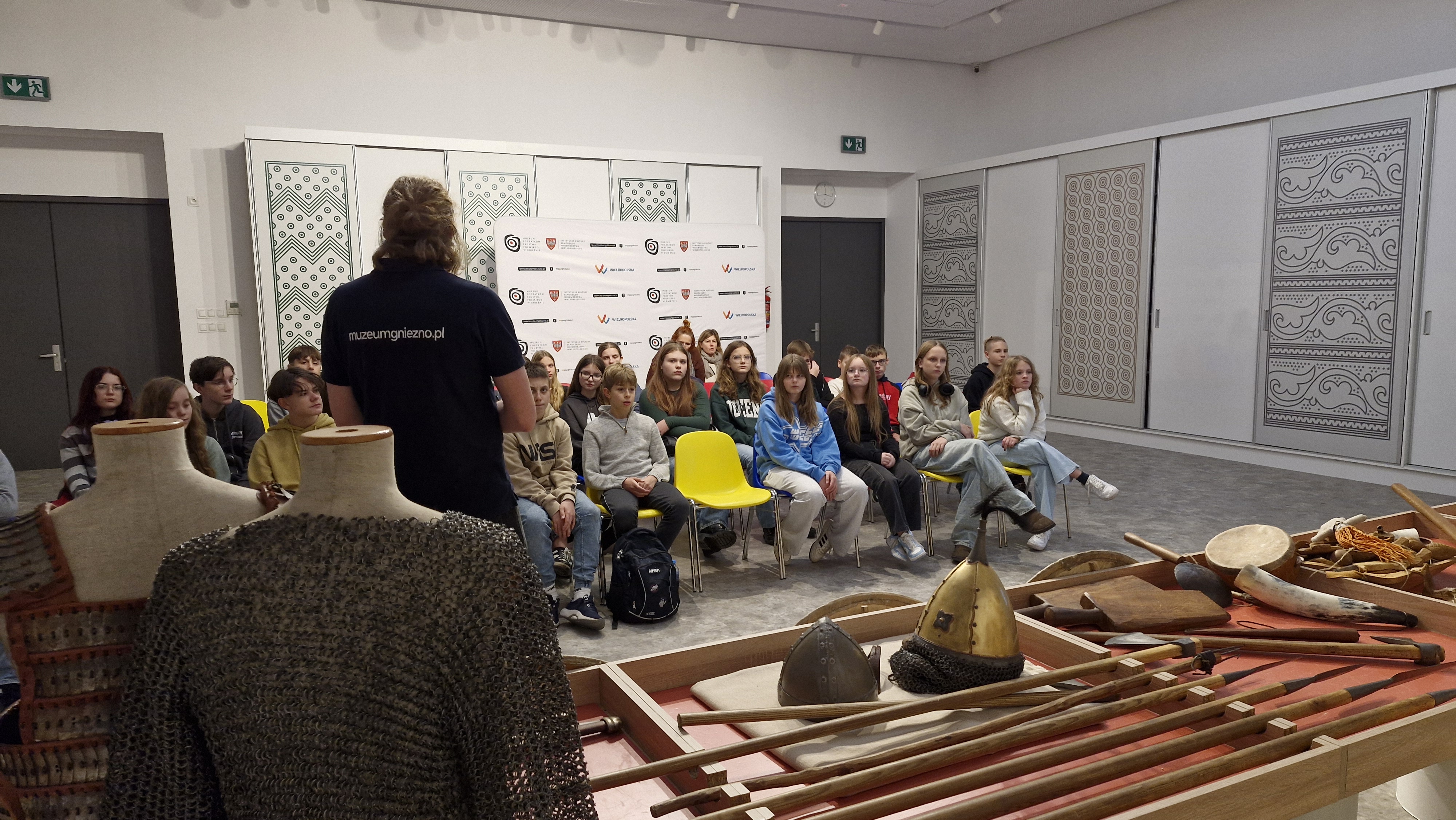 Trzeci dzień spędziliśmy w Gnieźnie, gdzie uczniowie podziwiali Drzwi Gnieźnieńskie, jeden z najważniejszych zabytków związanych z początkami Państwa Polskiego, przedstawiający sceny z życia pierwszych Piastów. Następnie wzięliśmy udział w lekcji muzealnej pt. „Jak żyli ludzie 1000 lat temu?”, która przybliżyła uczniom życie codzienne w średniowieczu oraz rolę Gniezna w początkach państwa polskiego. Wizyta w Gnieźnie stanowiła doskonałe zakończenie naszej edukacyjnej podróży.