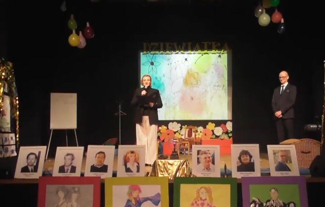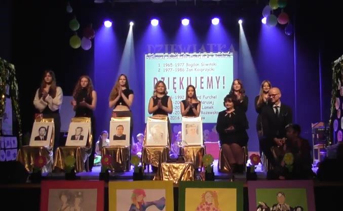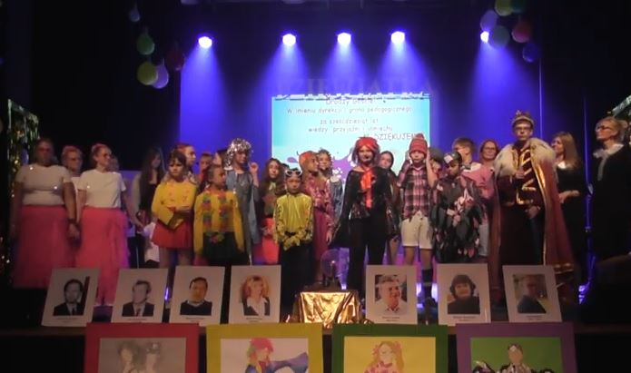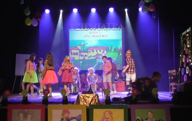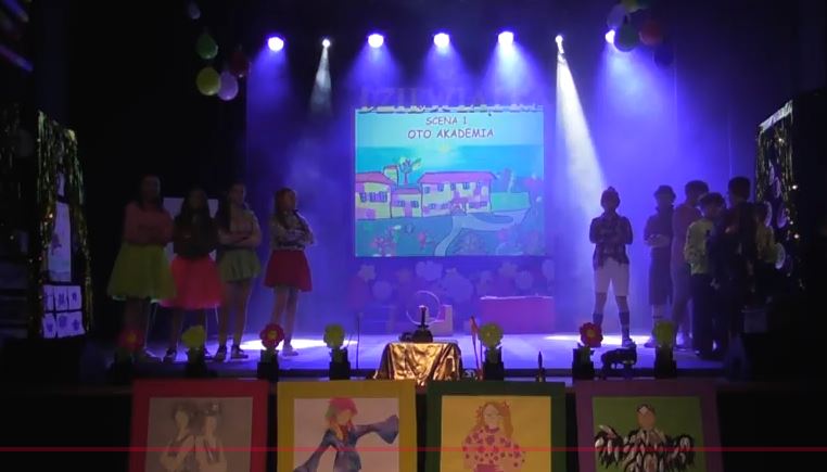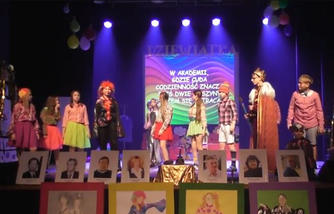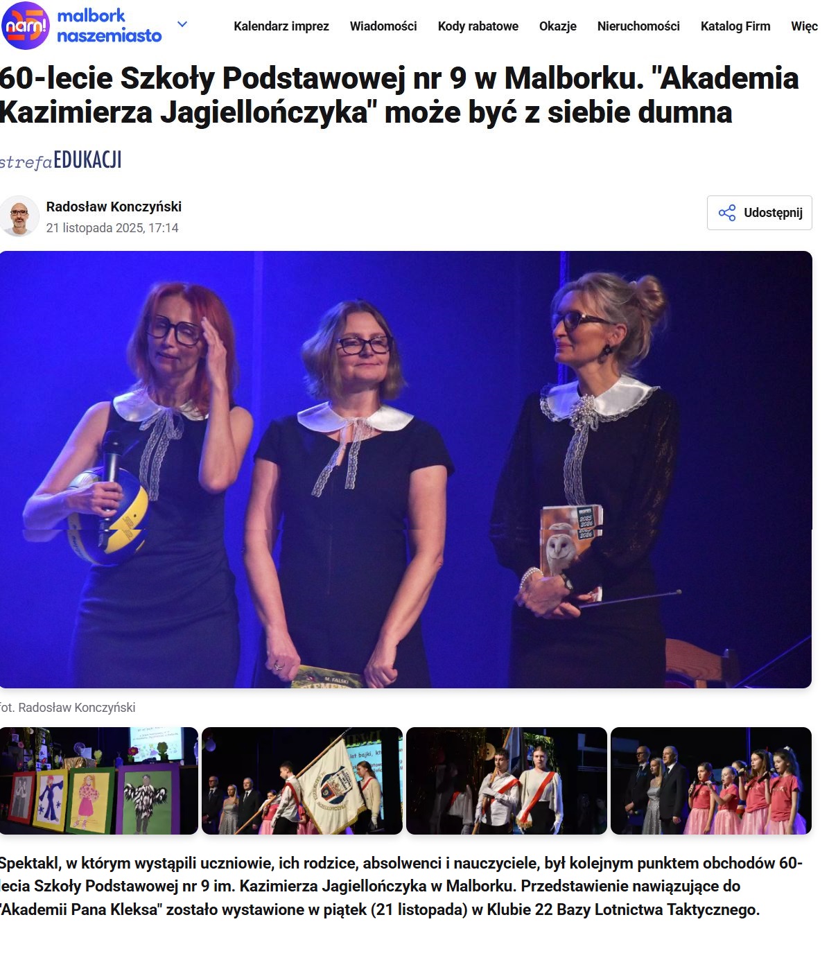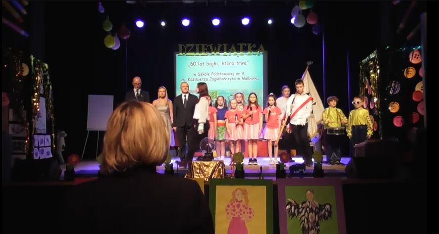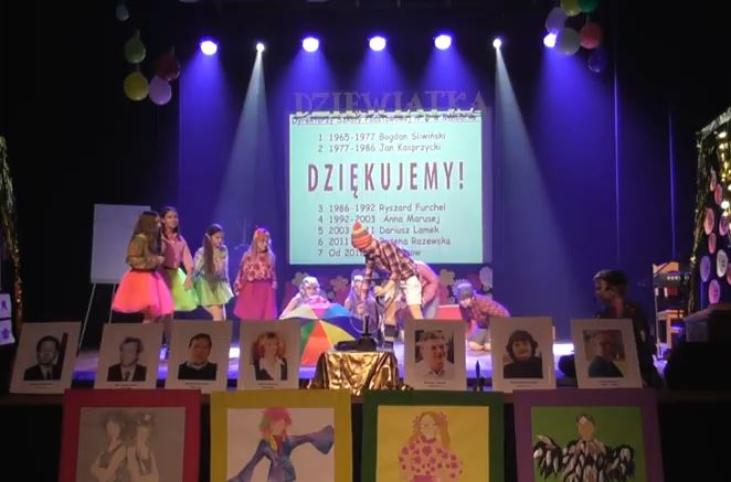 Dzisiejszy spektakl nauczycieli i uczniów z okazji jubileuszu SP9 na scenie klubu oficerskiego był przedstawieniem, które było połączone z pokazem multimedialnym i muzyczno-tanecznymi występami uczniów, nauczycieli, absolwentów i rodziców. Magiczne przedstawienie przenosiło widzów, w tym honorowych gości, przekrojowo do lat 60-70-80-90 tych XX/XXI w., i roku powstania naszej szkoły /1965 r./, z wykorzystaniem muzyki z filmu pt. ,,Akademia Pana Kleksa’’- oraz archiwalnych zdjęć, malunków i nagrań wideo. W sam spektakl i jego przygotowania bardzo mocno zaangażowani byli zarówno uczniowie, nauczyciele naszej ,,dziewiątki’’ z rodzicami naszych obecnych pociech. Te efektowne i zarazem unikalne w formie widowisko /reż. Monika Pozorska/ zostało bardzo ciepło odebrane przez publiczność i zachwyciło ją stworzoną atmosferą podróży w czasie.